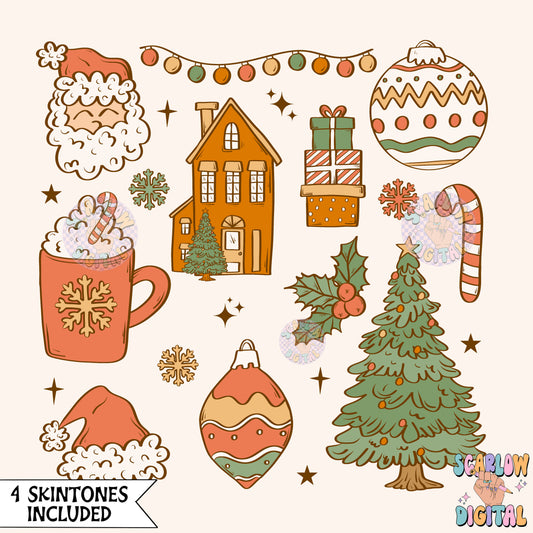Christmas Things PNG Digital Design Download, santa claus png, gingerbread house png, christmas tree png, candy cane png, hot cocoa png