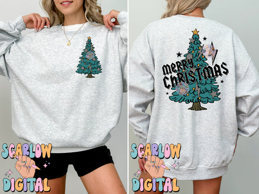 Merry Christmas Rocker Tree Front and Back PNG Digital Design Download, checkered christmas, rocker christmas, boy christmas designs
