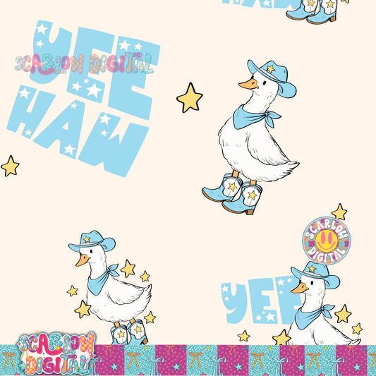 Yeehaw Goose in Blue Seamless Pattern Digital Design