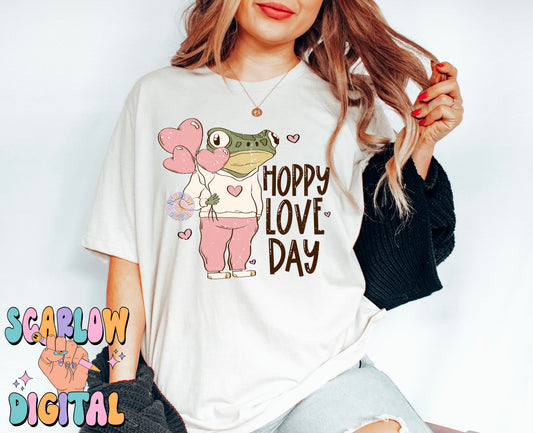 Hoppy Love Day PNG-Valentine's Day Sublimation Digital Design Download-hearts png, funny png, froggy png, funny valentine's day png design