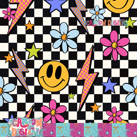 Spooky Neon Doodles Seamless Pattern Digital Design