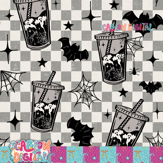 Spooky Coffee Halloween Seamless Pattern Digital Design