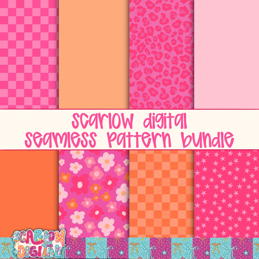 Orange and Black Spooky Halloween Seamless Pattern Bundle Digital Design