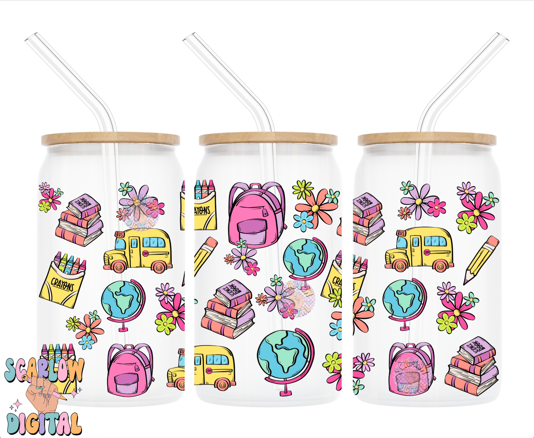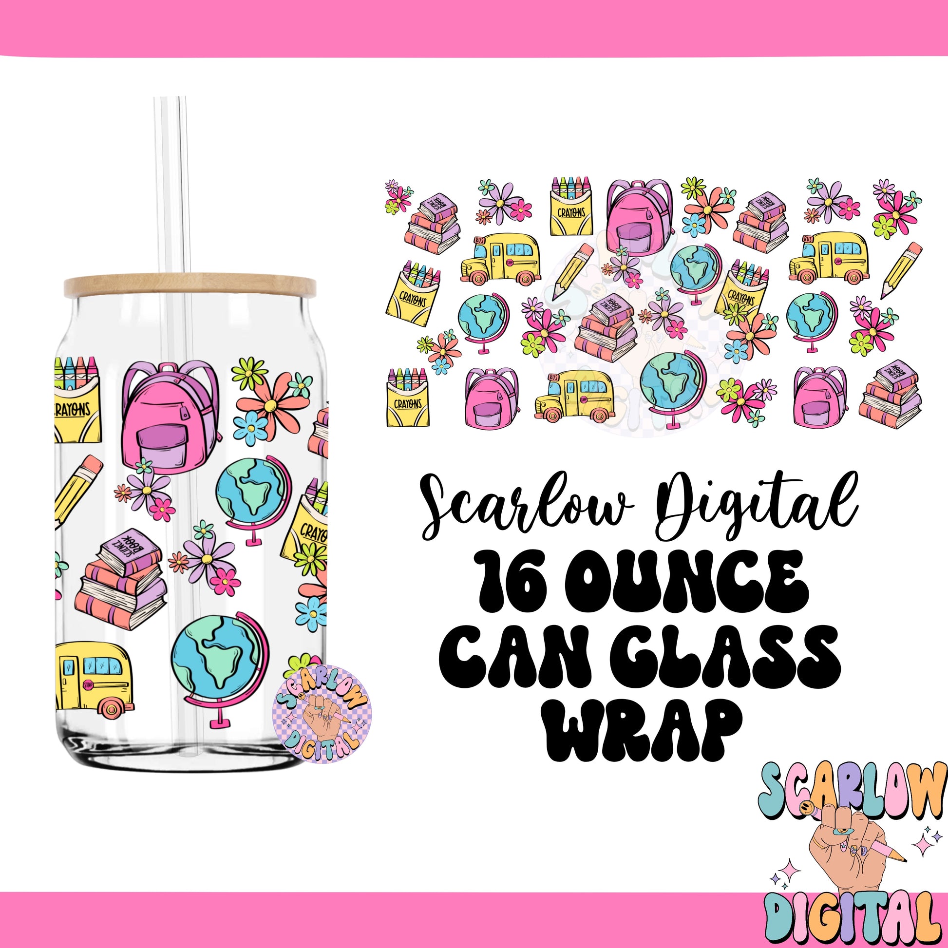 Back to School 16 Ounce Can Glass Wrap PNG Digital Design Download, crayons can glass wrap, flowers glass wrap, teacher can glass wraps png