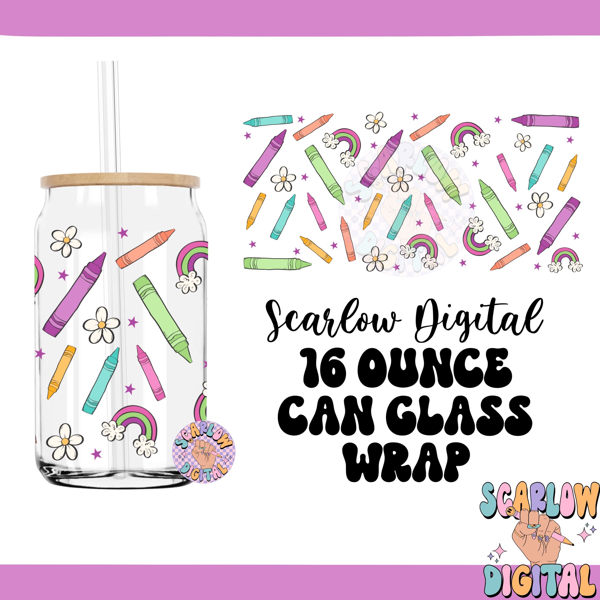 Back to School 16 Ounce Can Glass Wrap PNG Digital Design Download, crayons can glass wrap, rainbow glass wrap, teacher can glass wraps png