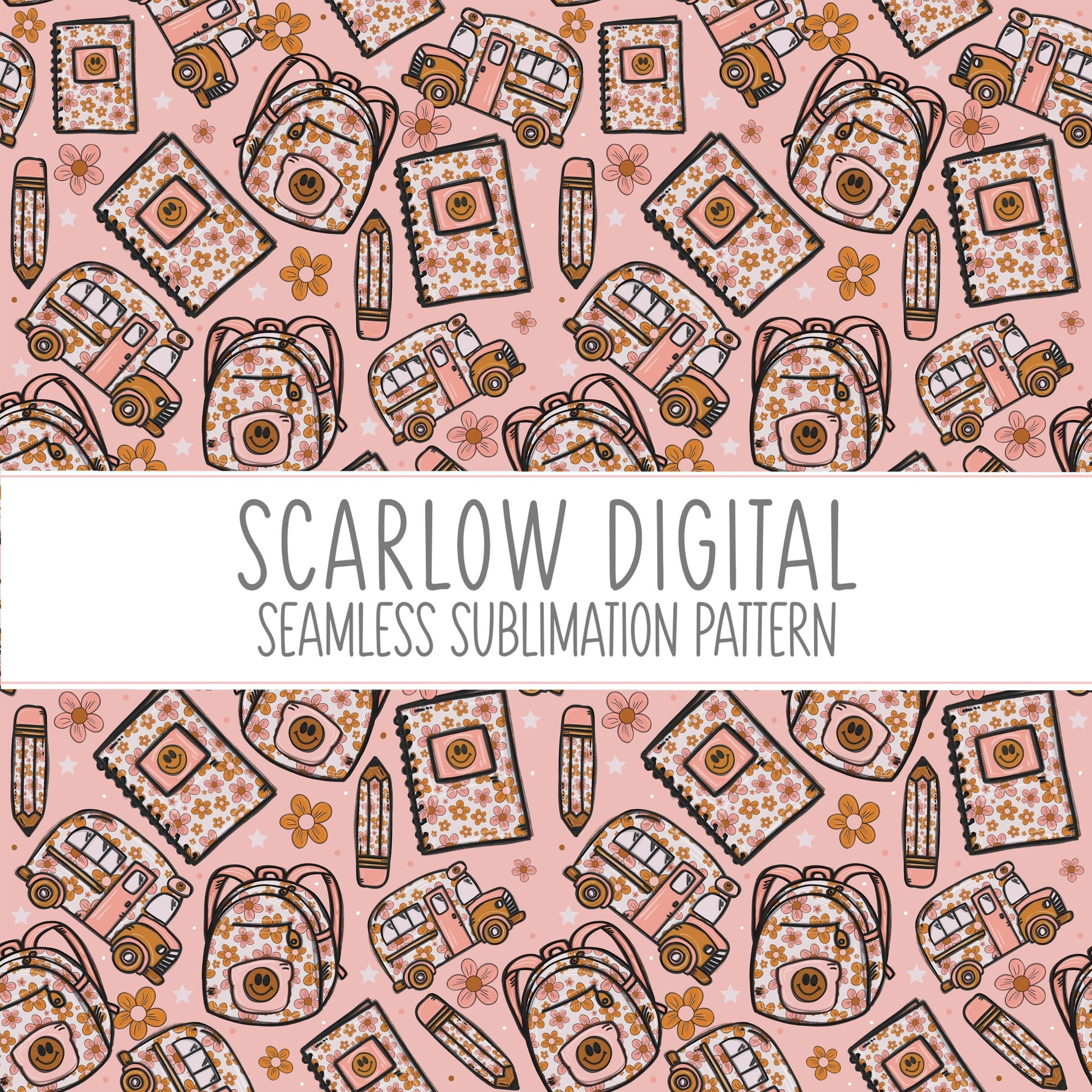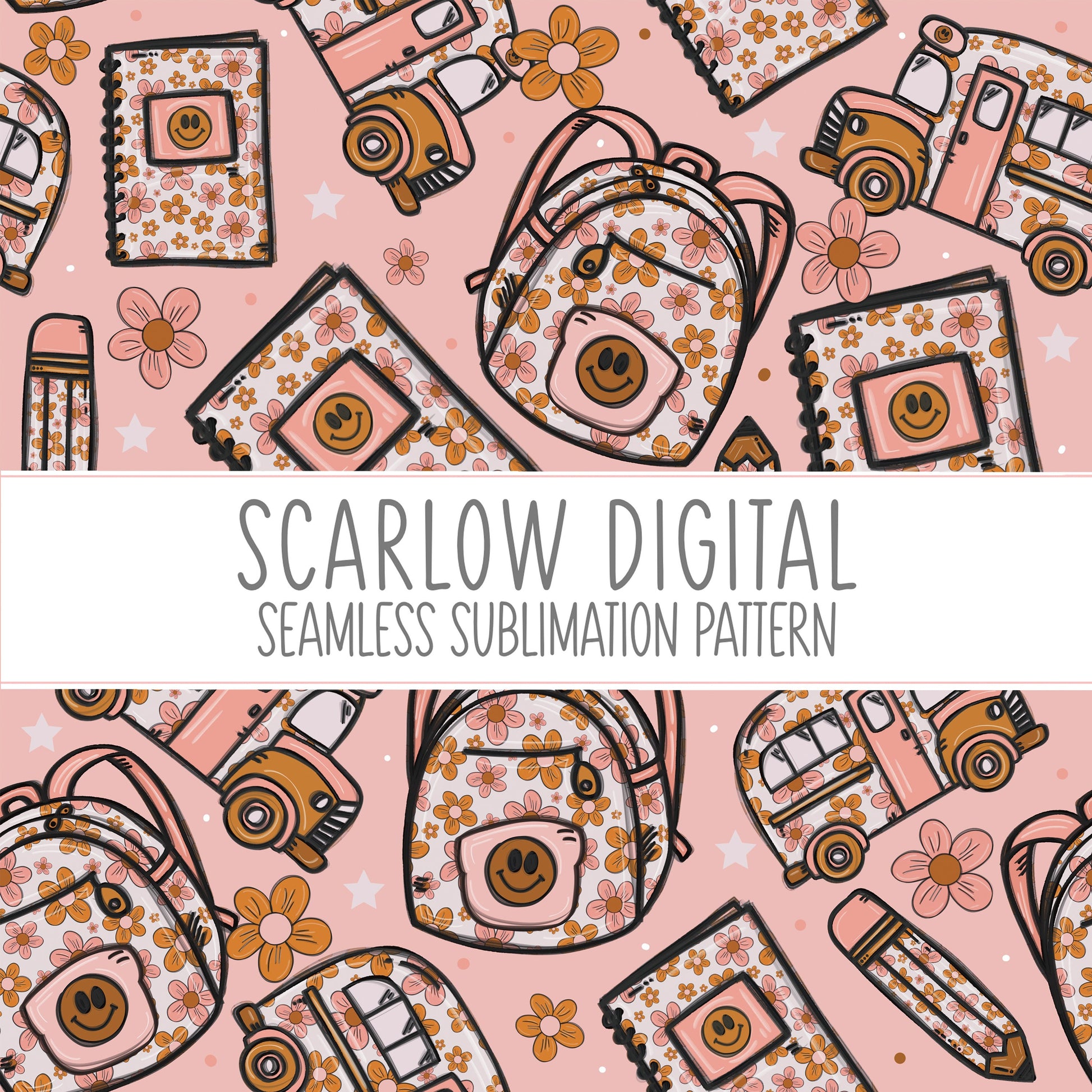 Back to School Seamless Pattern-Floral Girl Sublimation Digital Design Download-school girl seamless pattern, back to school sublimation