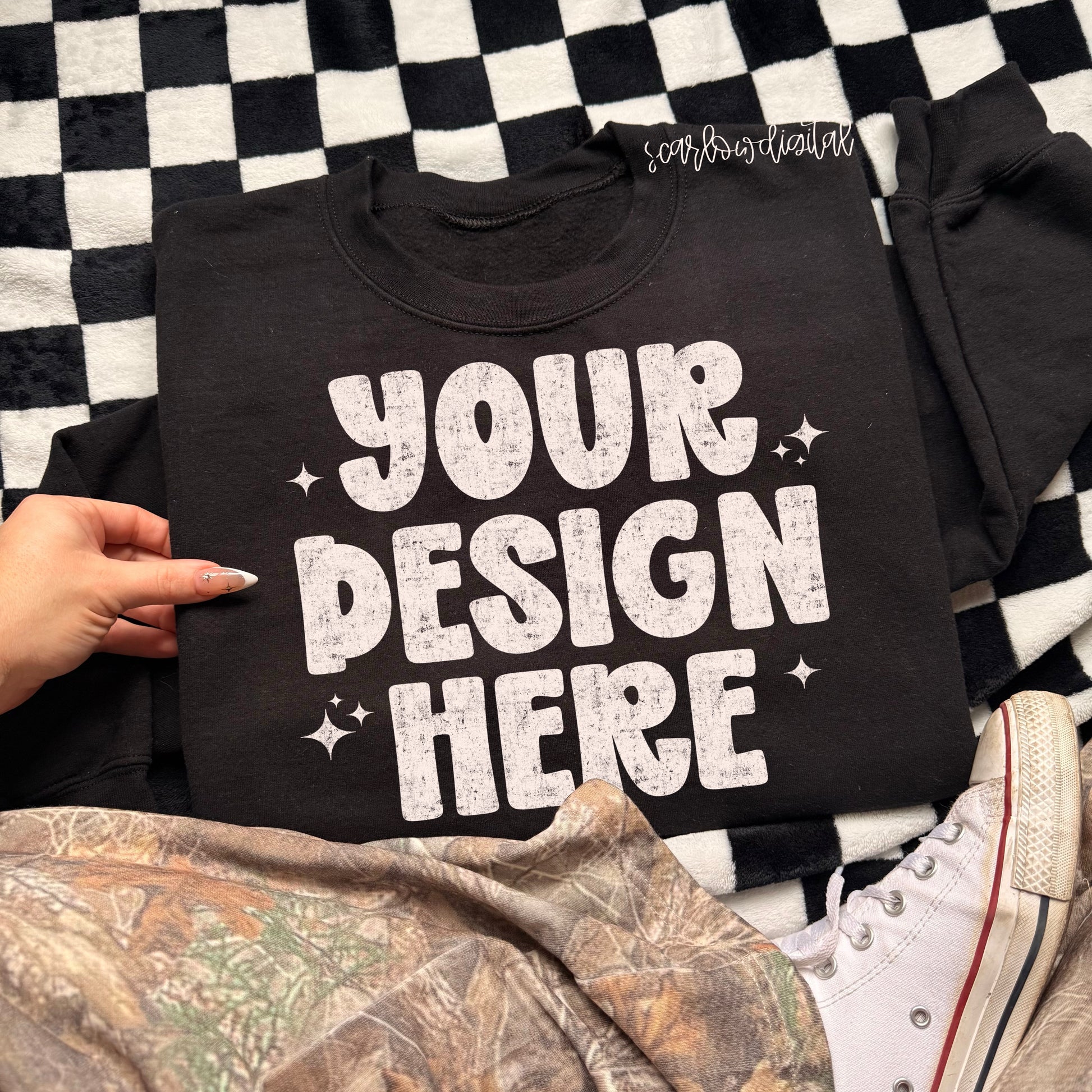 Black Gildan - Unisex Heavy Blend Crewneck Sweatshirt 18000 Mockup