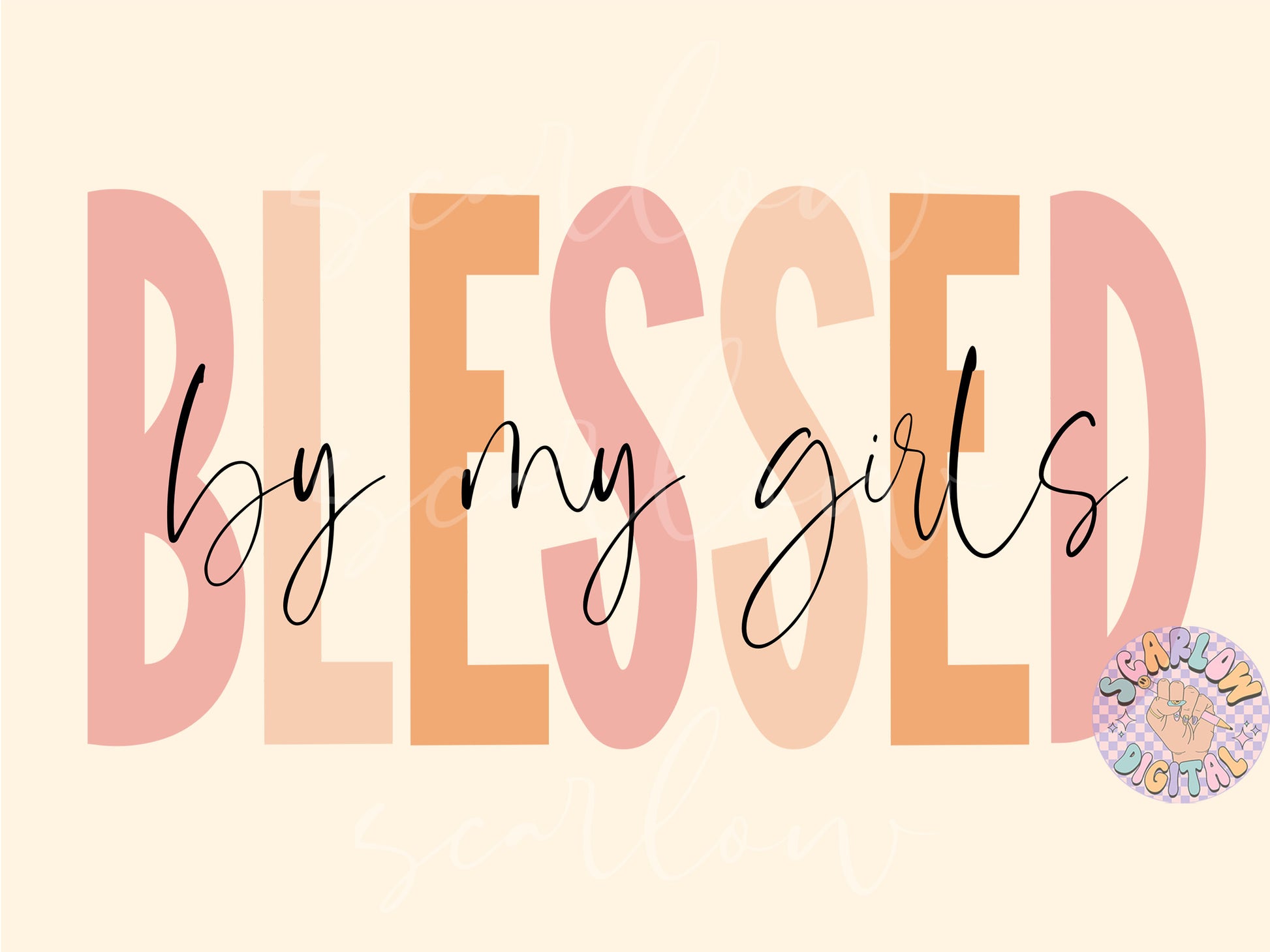 Blessed By My Girls PNG-Mama Sublimation Digital Design Download-mom of girls png, png for moms, boho mama png, simple mama png, mom designs