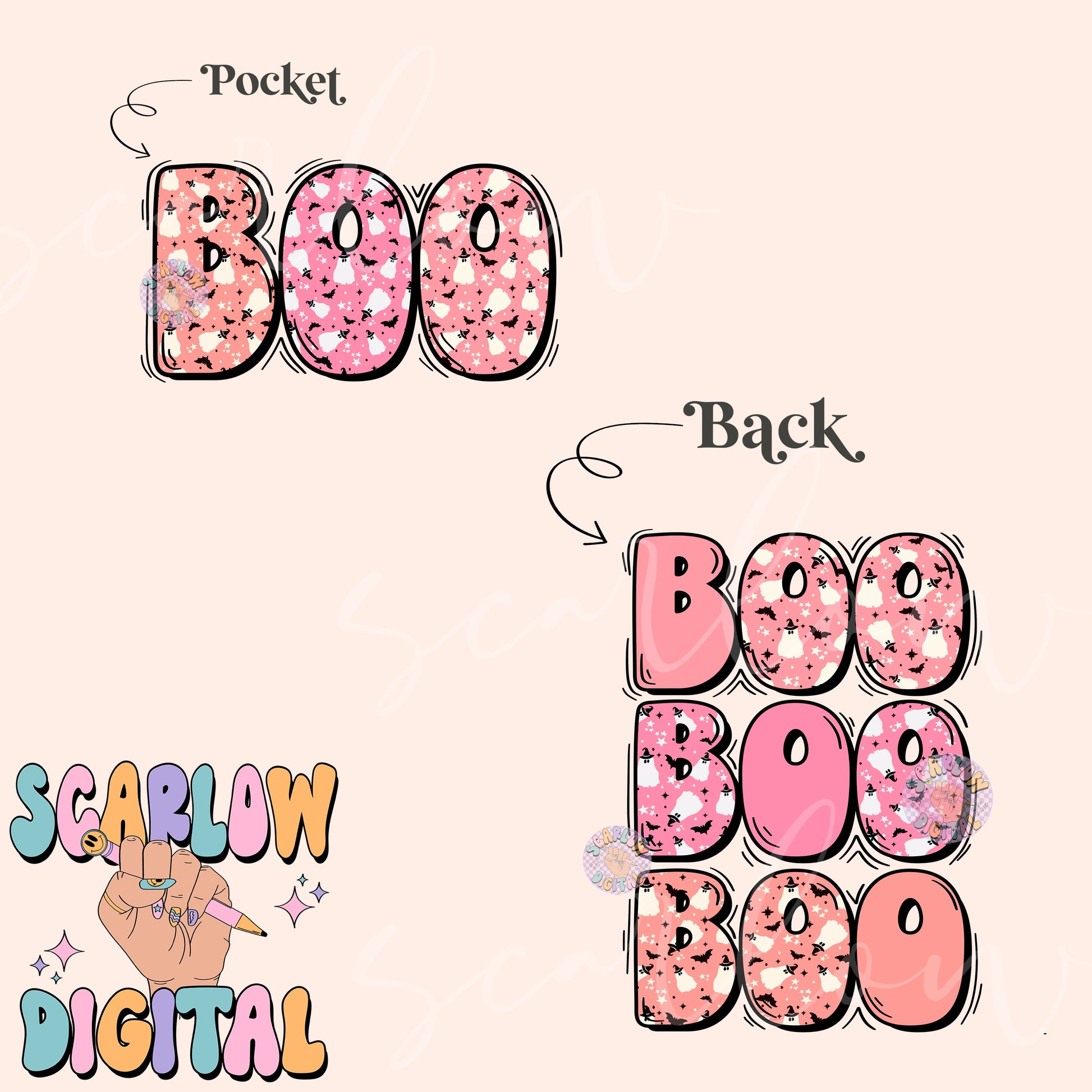 Boo Halloween Front and Back PNG Digital Design Download Bundle, spooky season png, ghosts png, kids halloween png, fall tshirt png designs