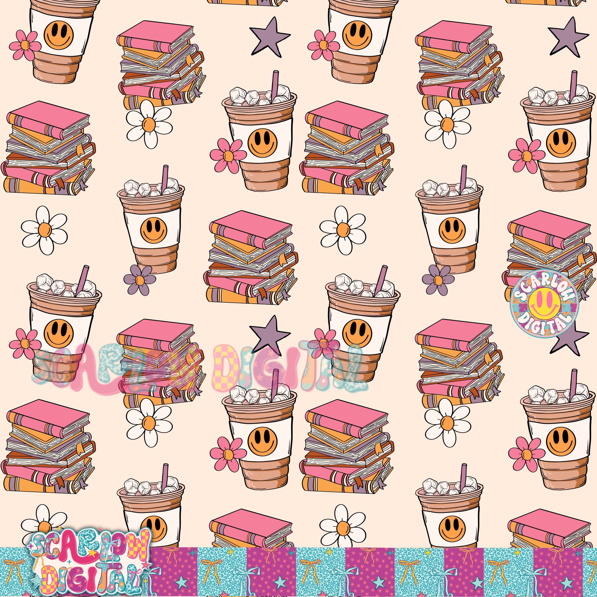 Books and Coffee Seamless Pattern Digital Design