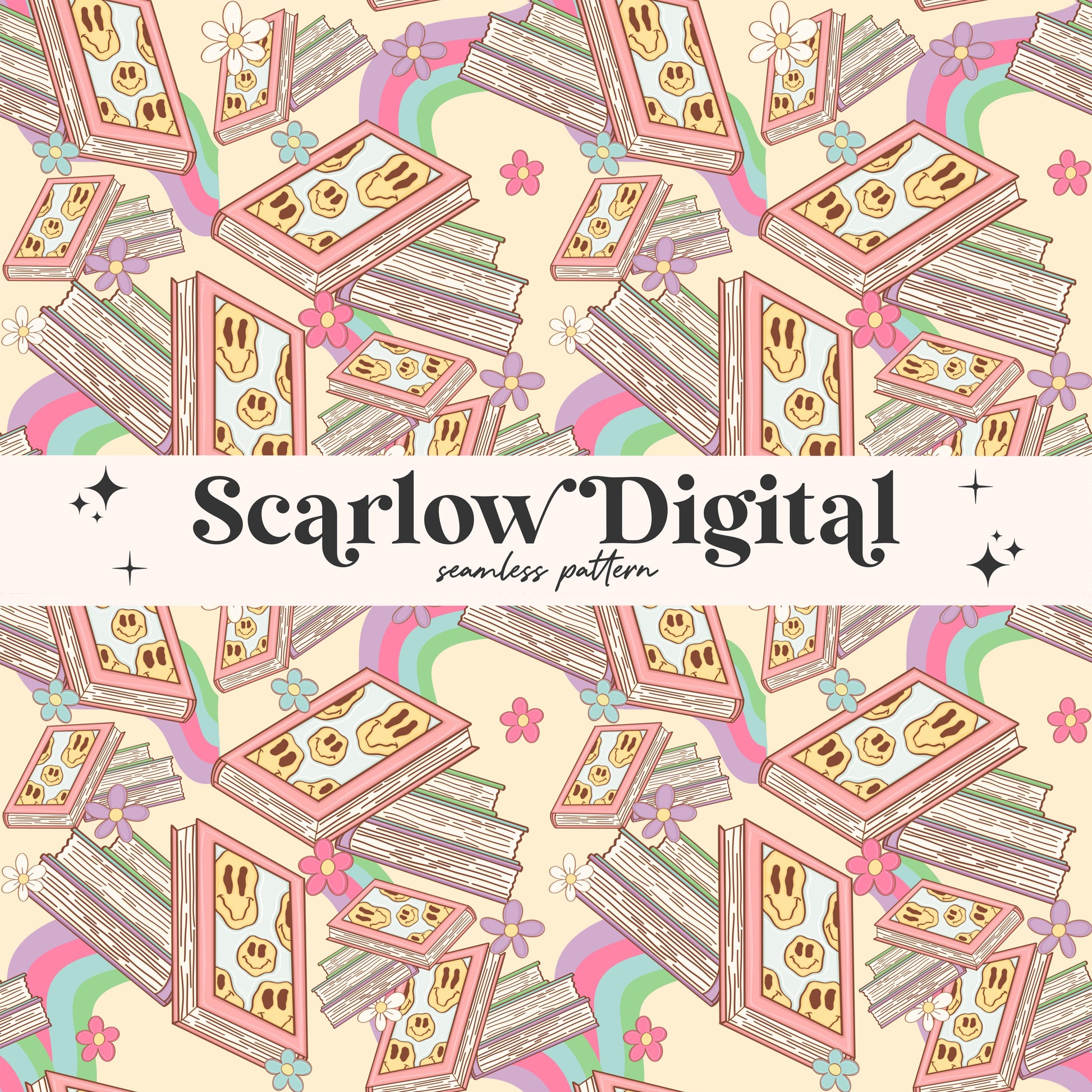Books Seamless Pattern-Reading Sublimation Digital Design Download-preppy seamless file, flower seamless, book lover seamless, girl seamless