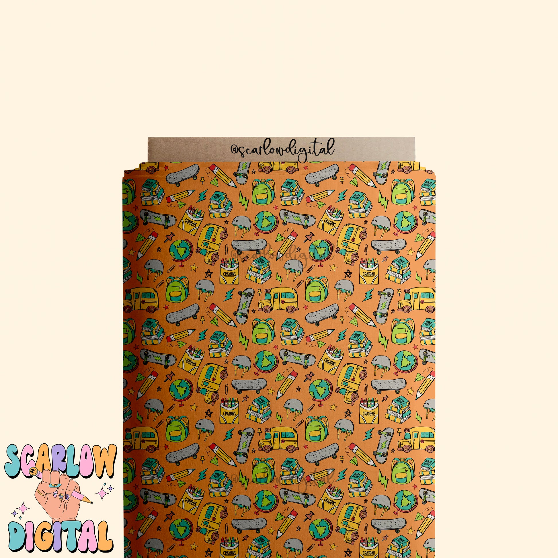 Boy Back to School Seamless Pattern Digital Design Download, trendy school patterns, school bus digital paper, book seamless, skater design