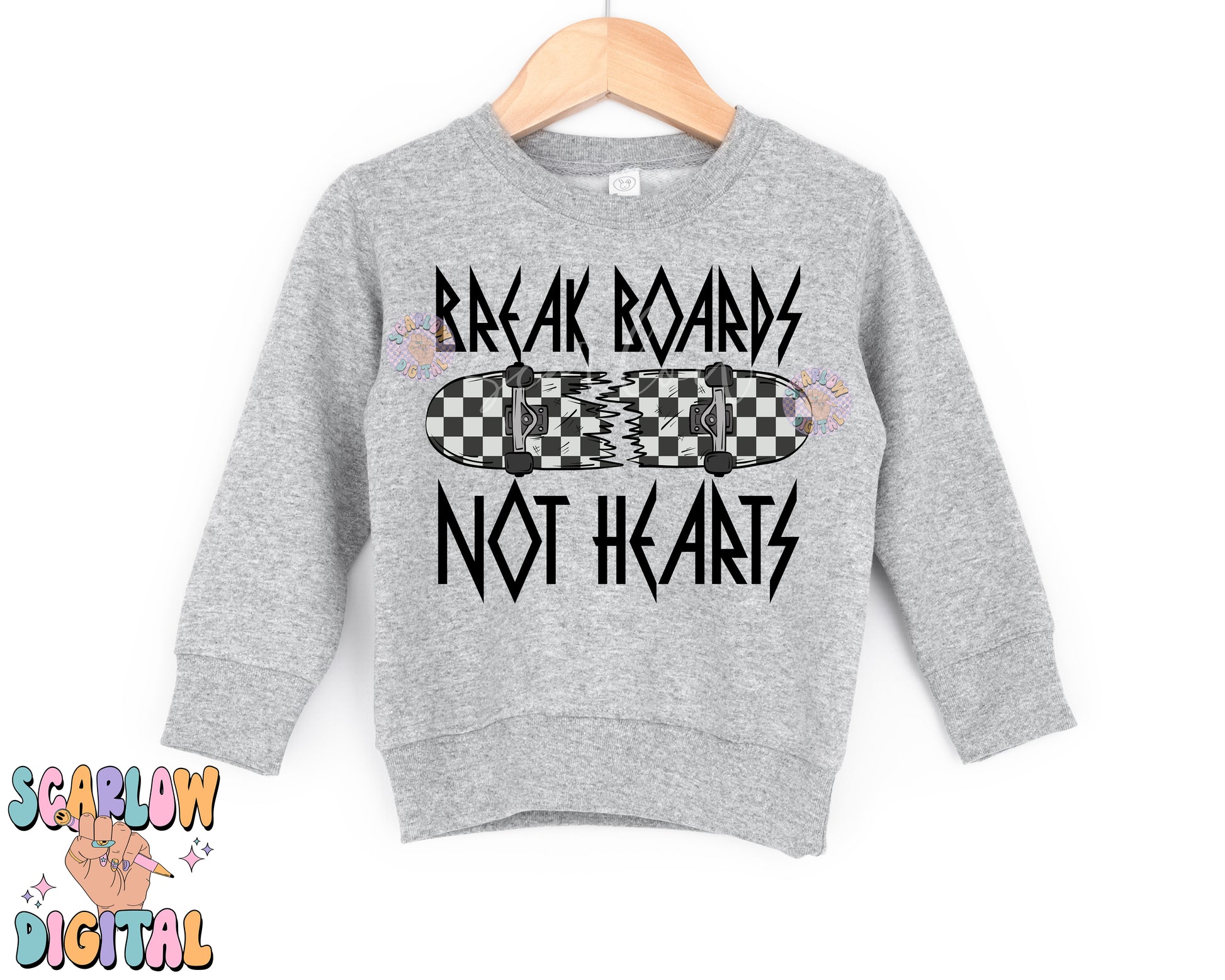 Break Boards Not Hearts PNG-Valentine's Day Sublimation Digital Design Download-checkered png, skateboard png, valentines boy png design