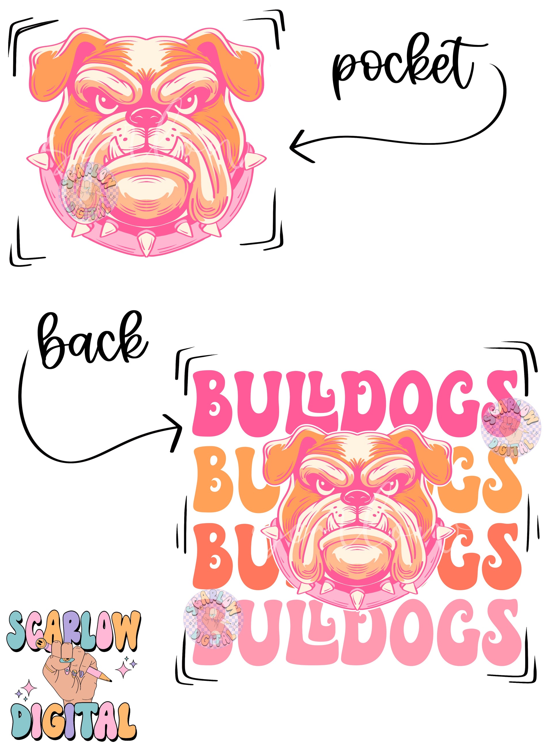 Bulldogs Front and Back PNG Digital Design Download, sports mascot png, football png, baseball png, retro png, trendy png, sports tshirt design, school png