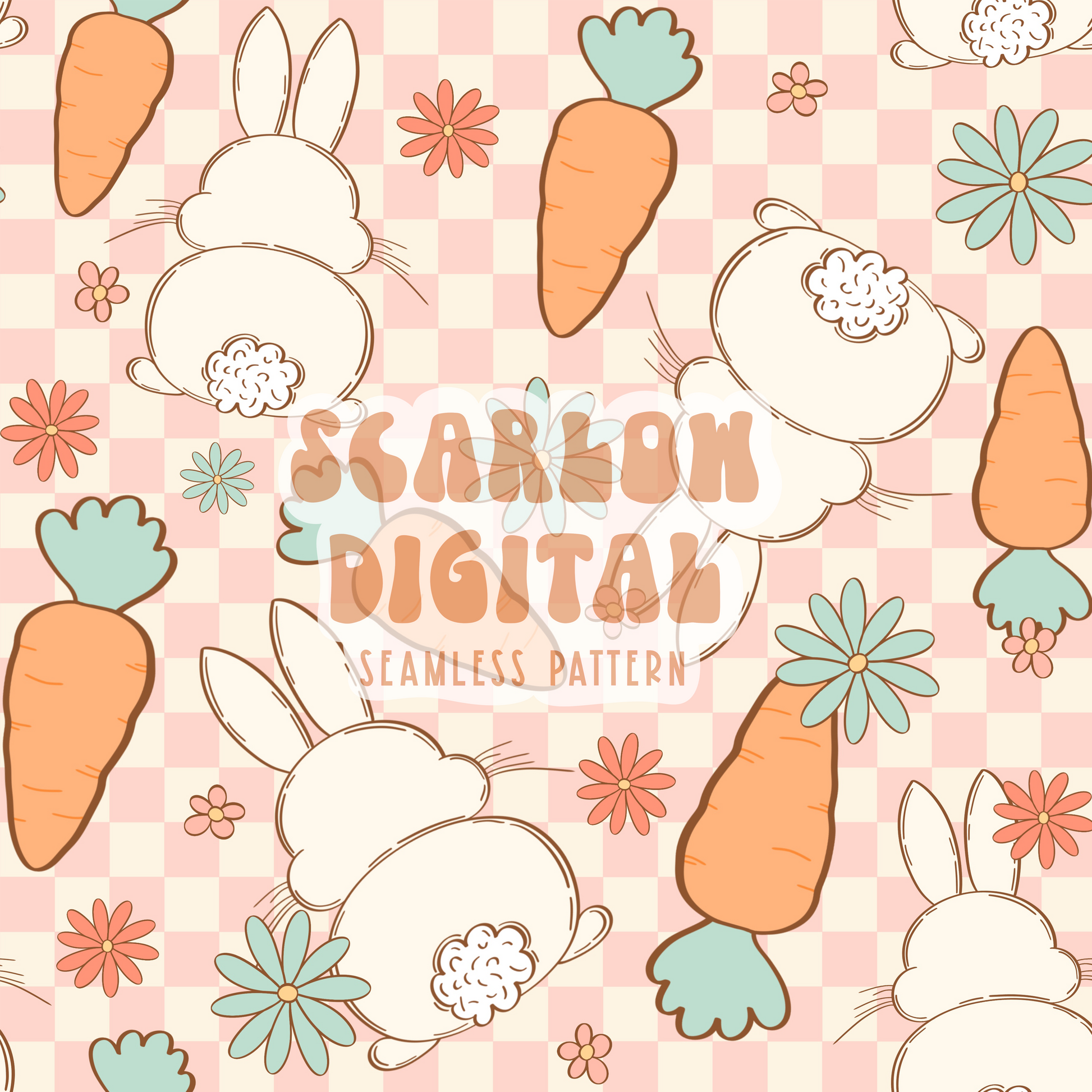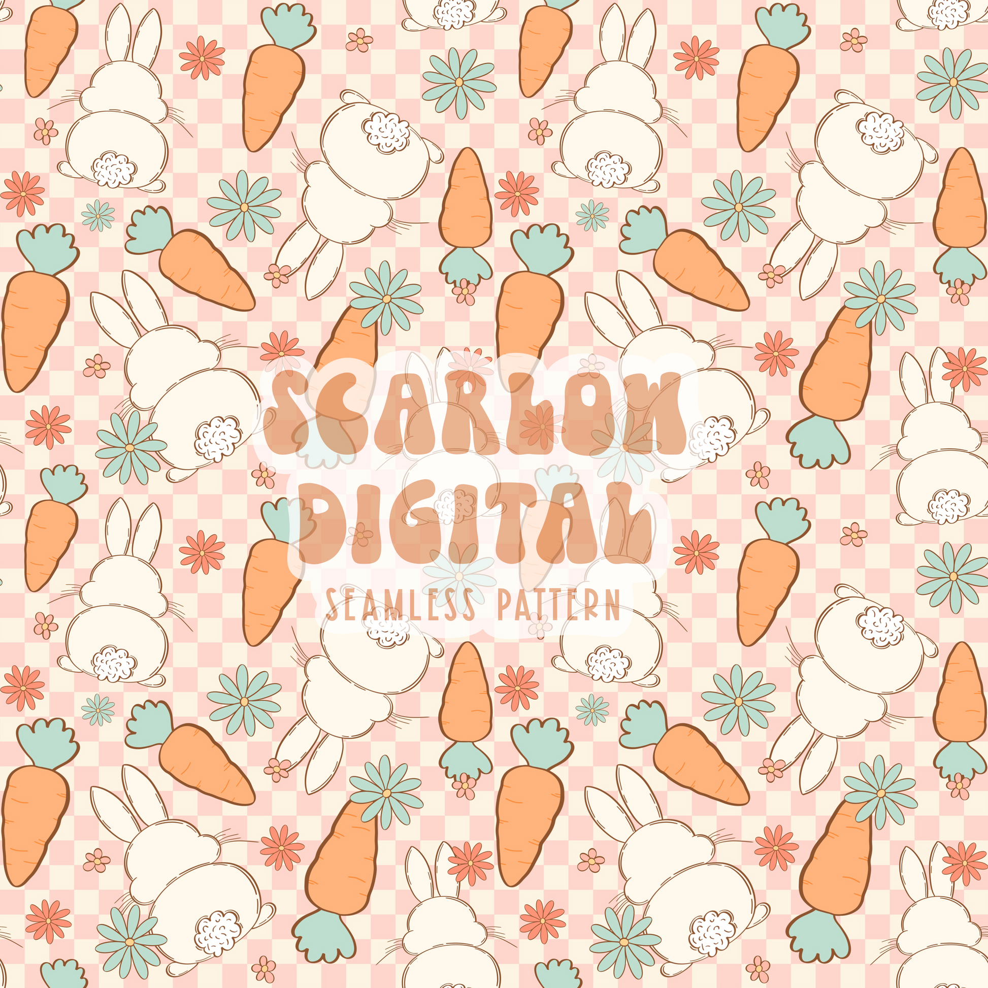 Bunny and Carrots Seamless Pattern-Easter Sublimation Digital Design Download-girl easter seamless file, floral sublimation, bunny babe jpg