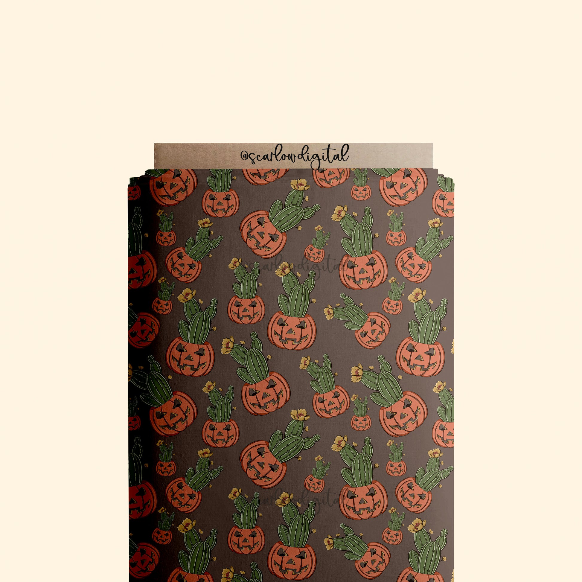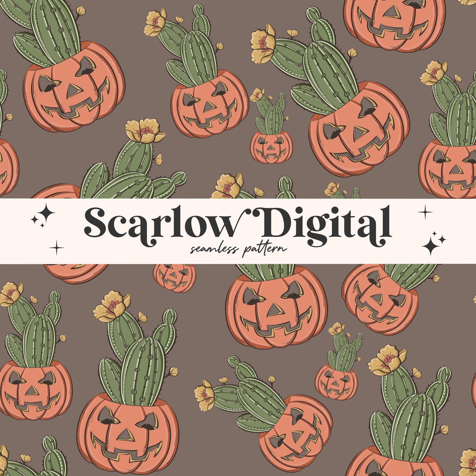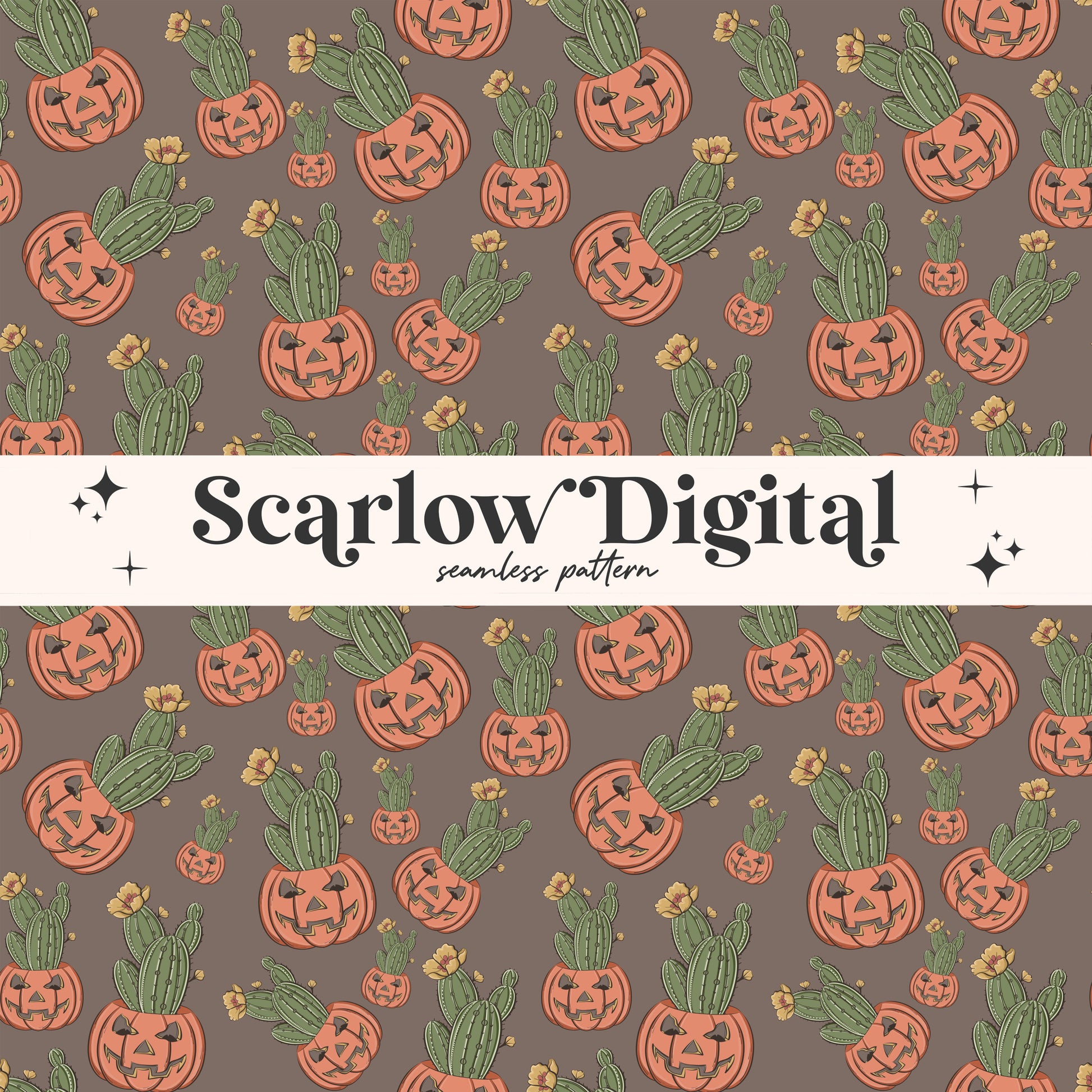 Cactus Pumpkin Seamless Pattern-Fall Sublimation Digital Design Download-halloween seamless file, western seamless pattern, fall seamless