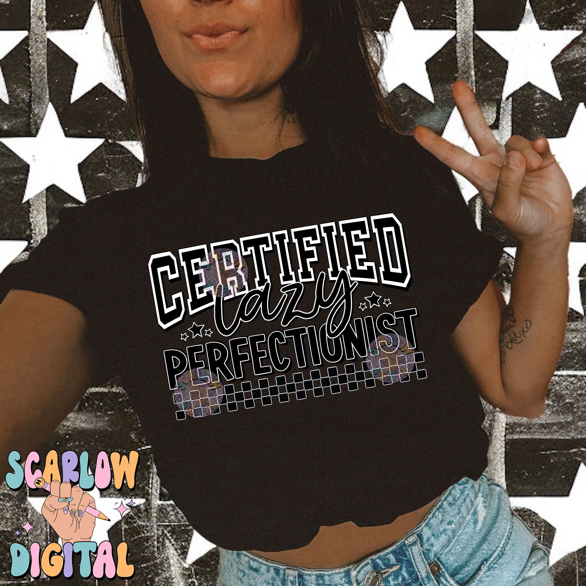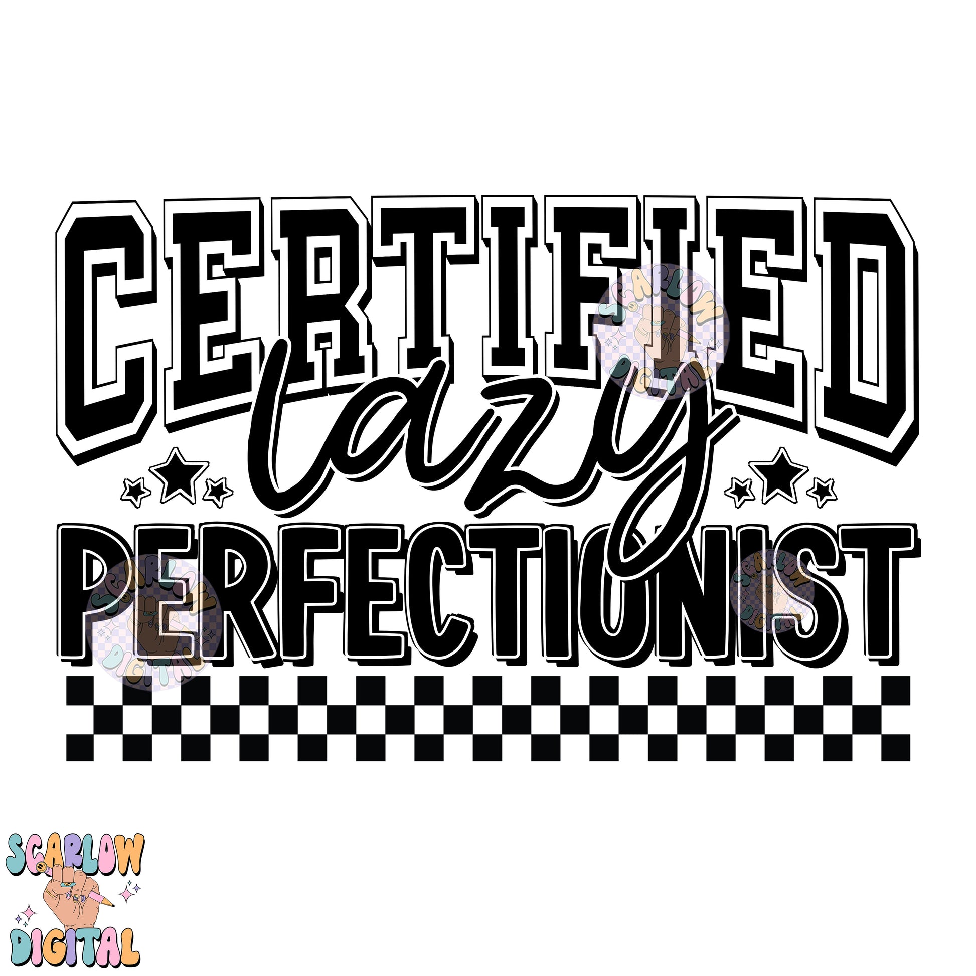 Certified Lazy Perfectionist PNG Digital Design Download, retro png, funny png, adult humor png, sarcasm png, checkers png, grunge png