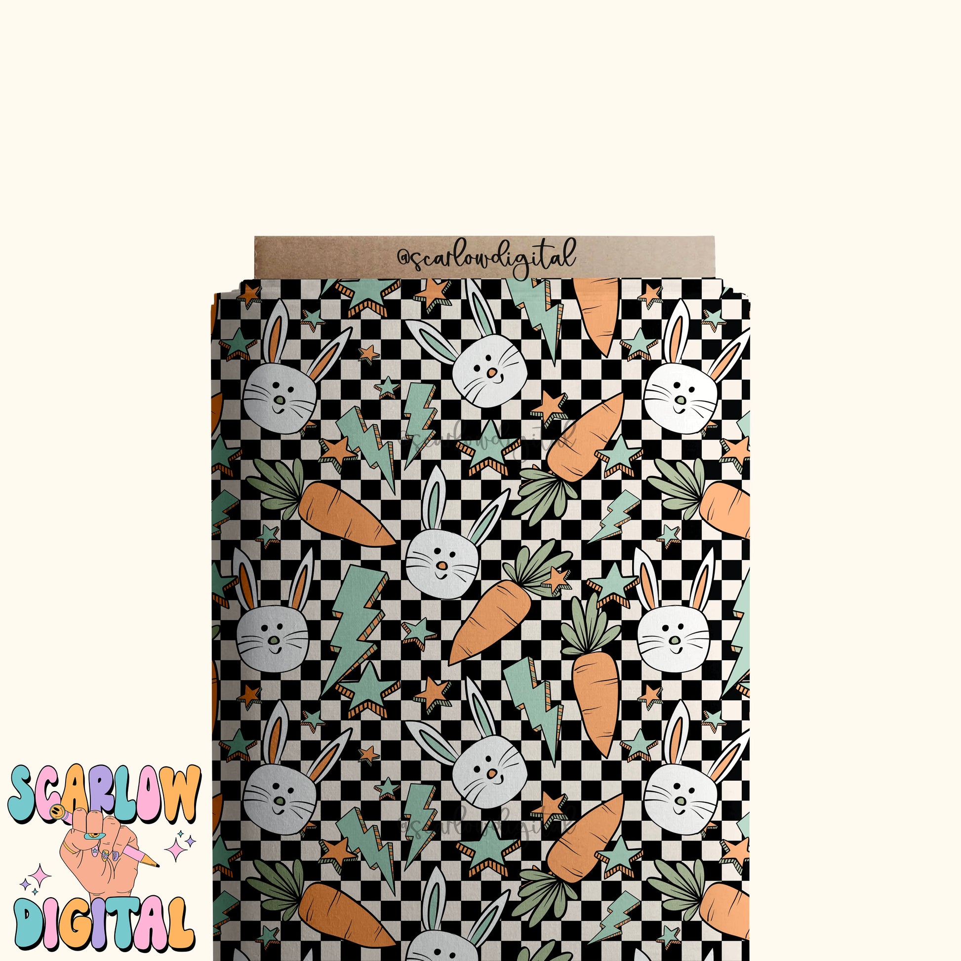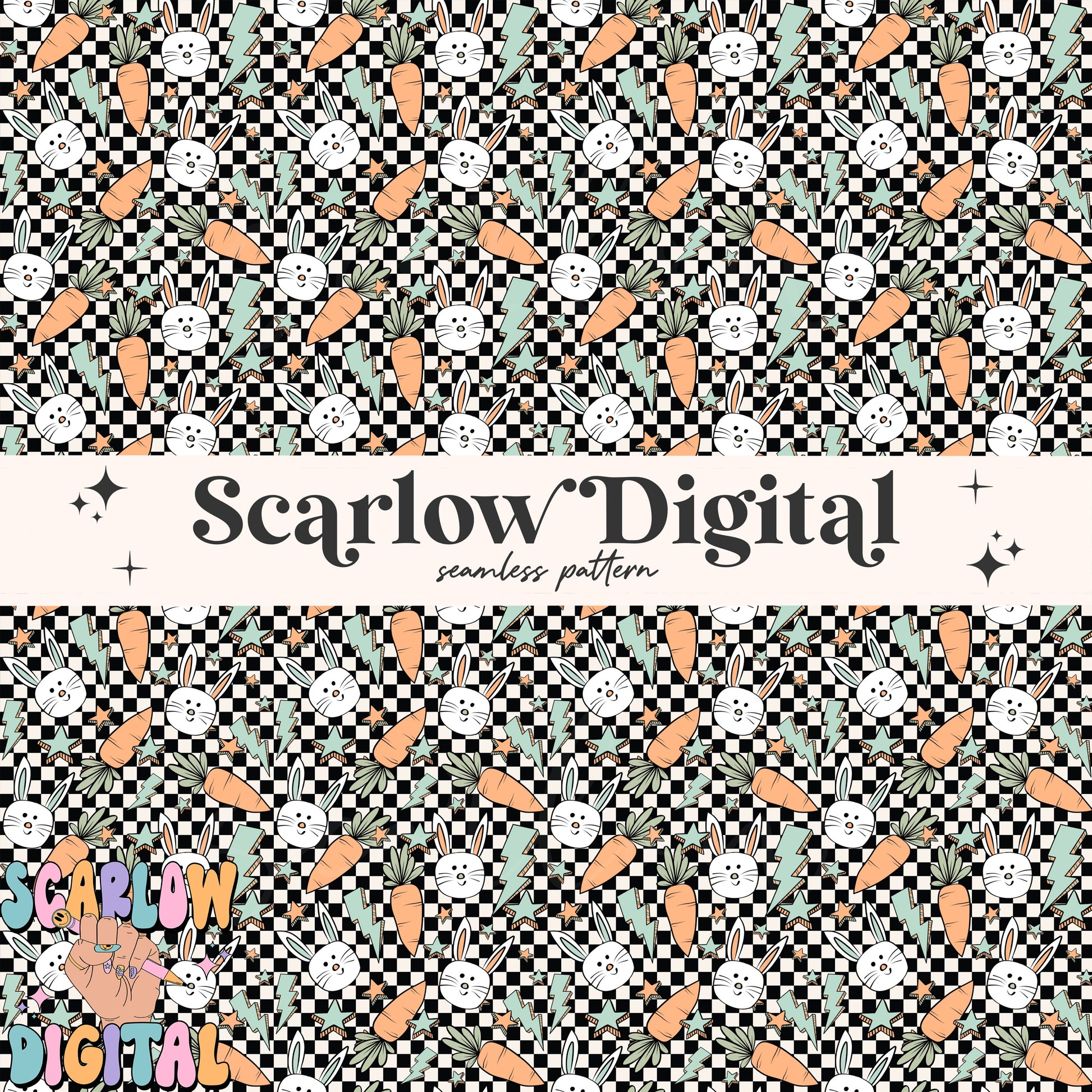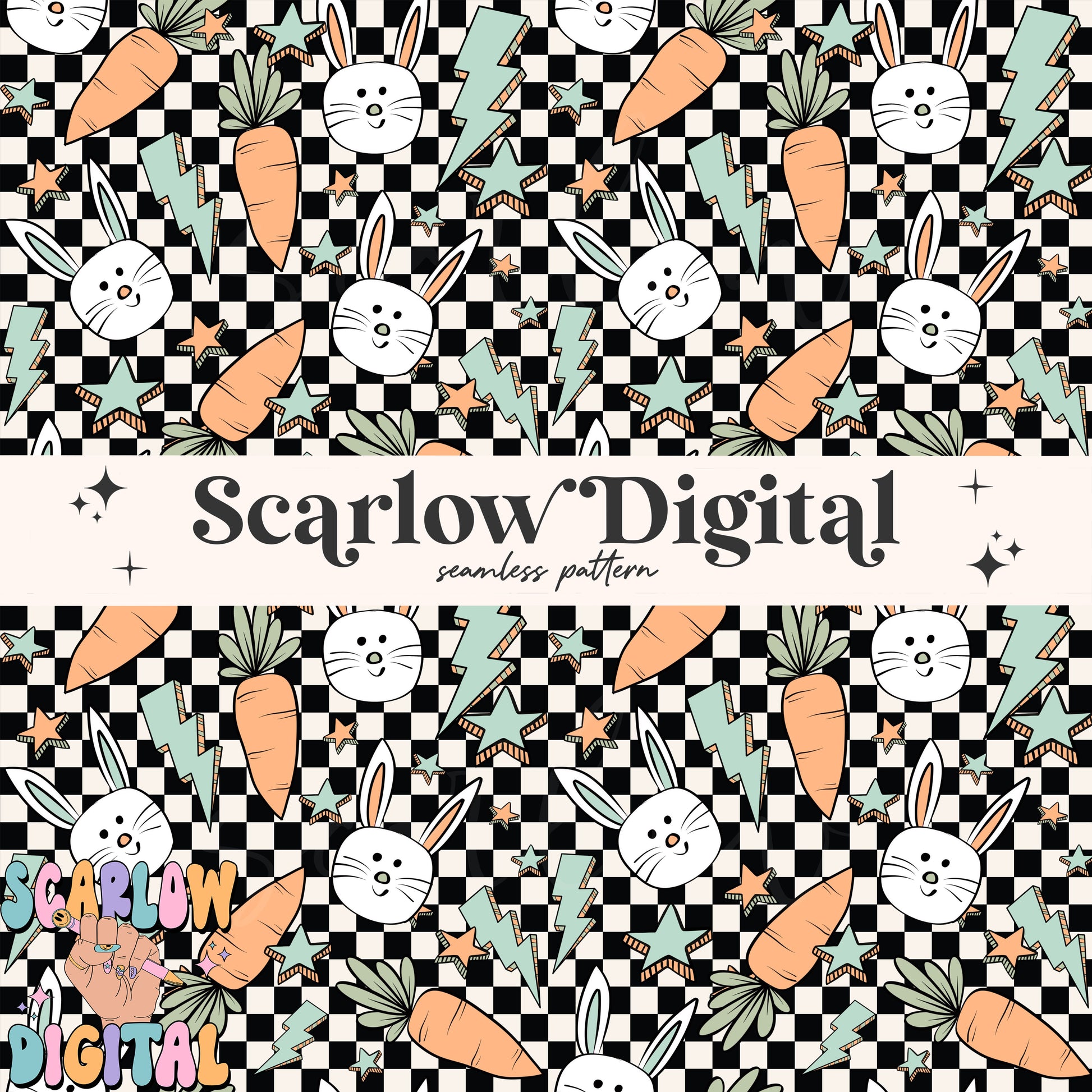 Checkered Easter Doodles Seamless Pattern-boy seamless pattern, retro easter seamless pattern, easter bunny seamless, kids seamless pattern