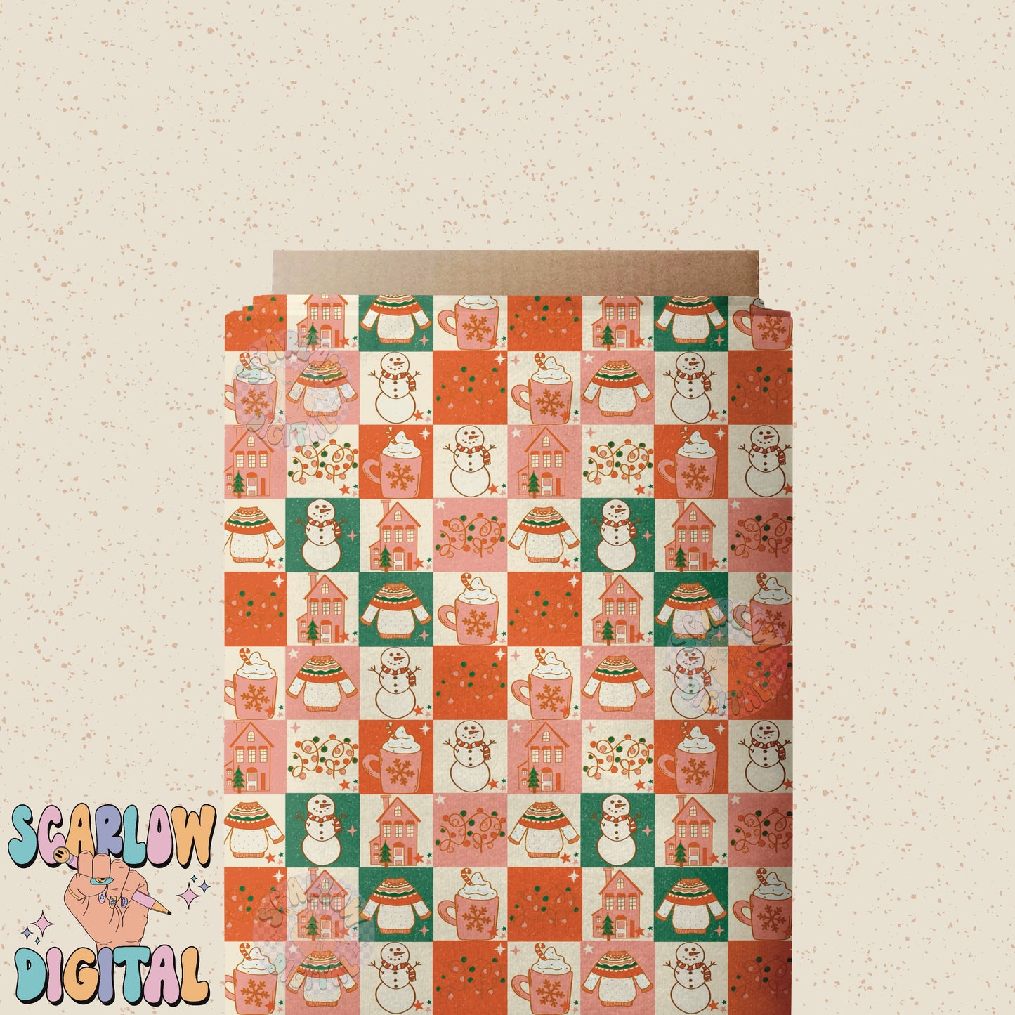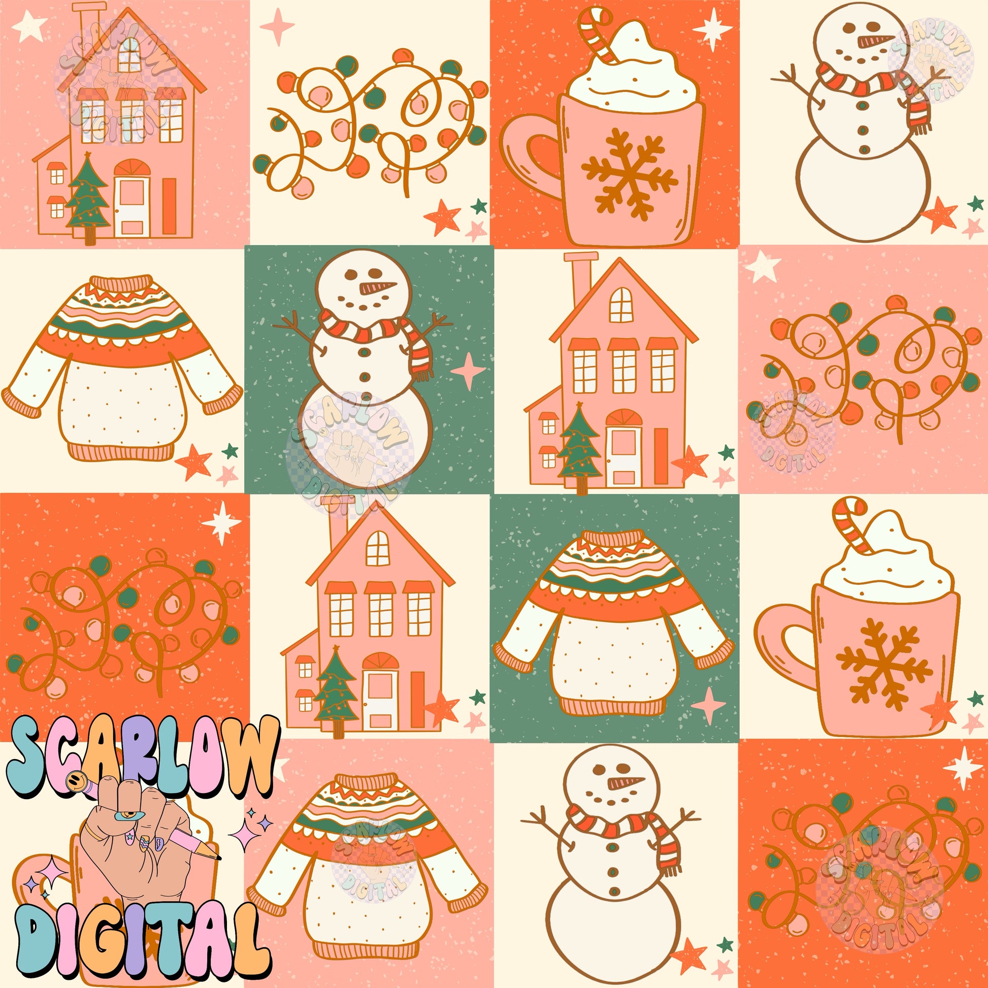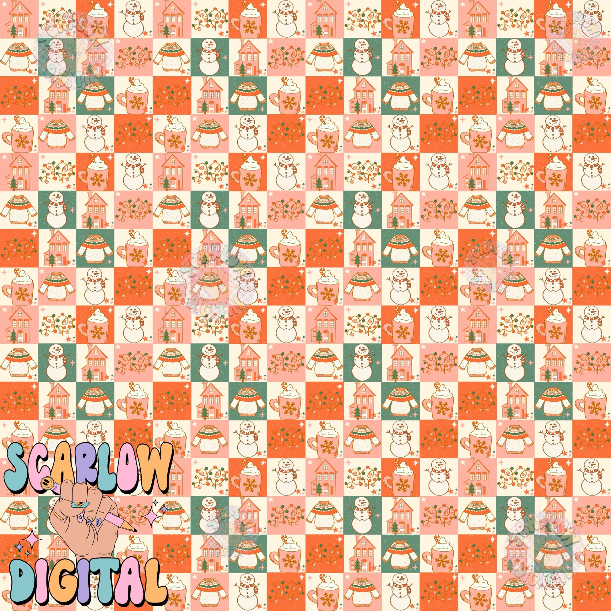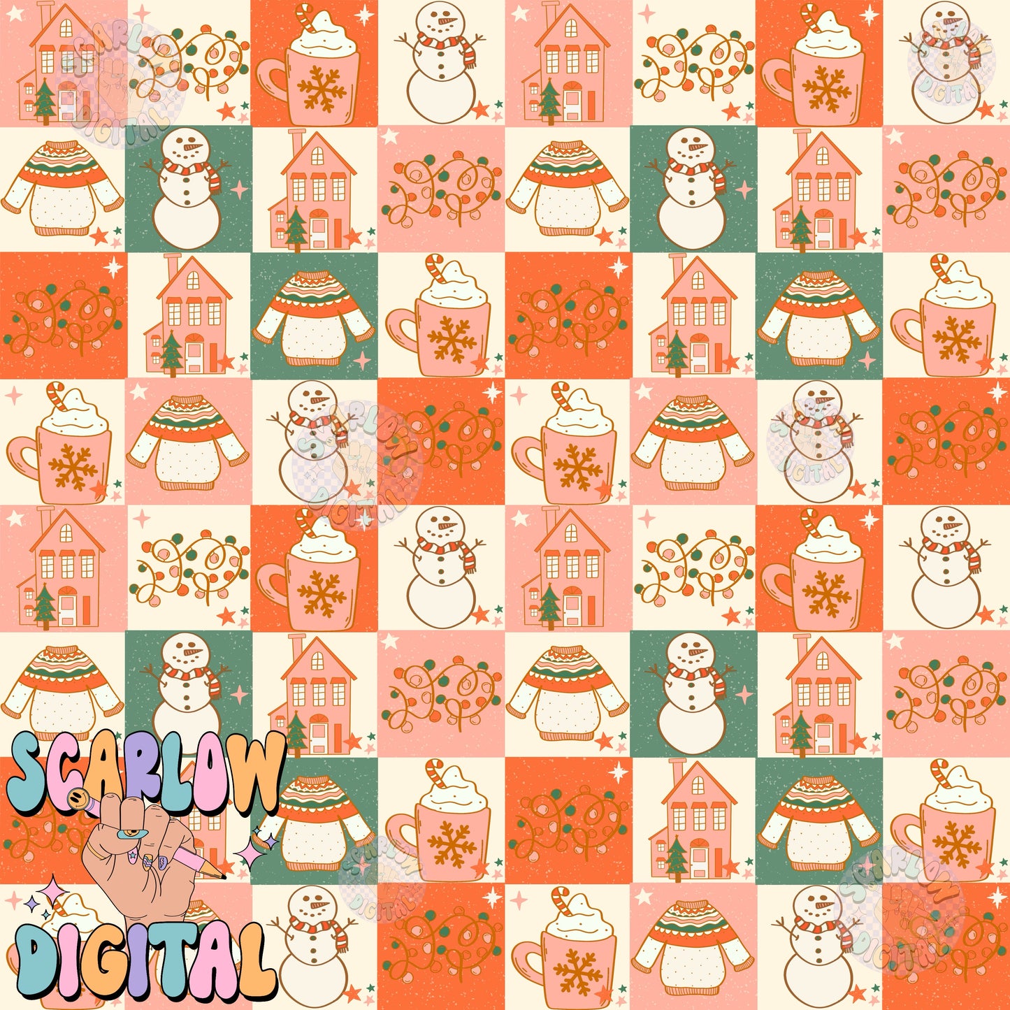Christmas Checkers Seamless Pattern Digital Design, snowmen patterns, christmas patterns, christmas digital paper, winter seamless patterns