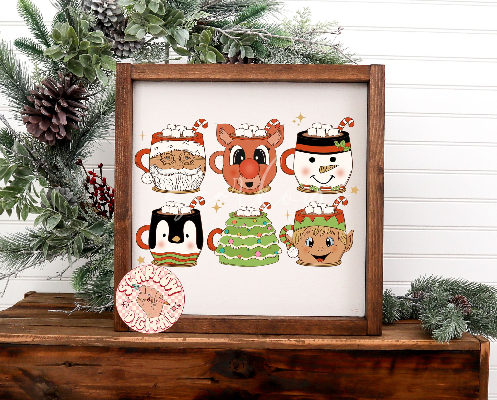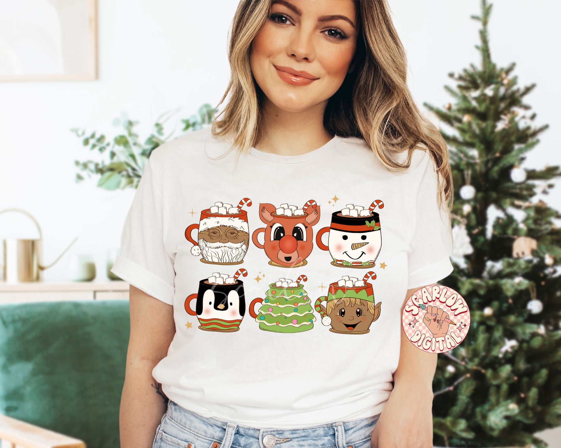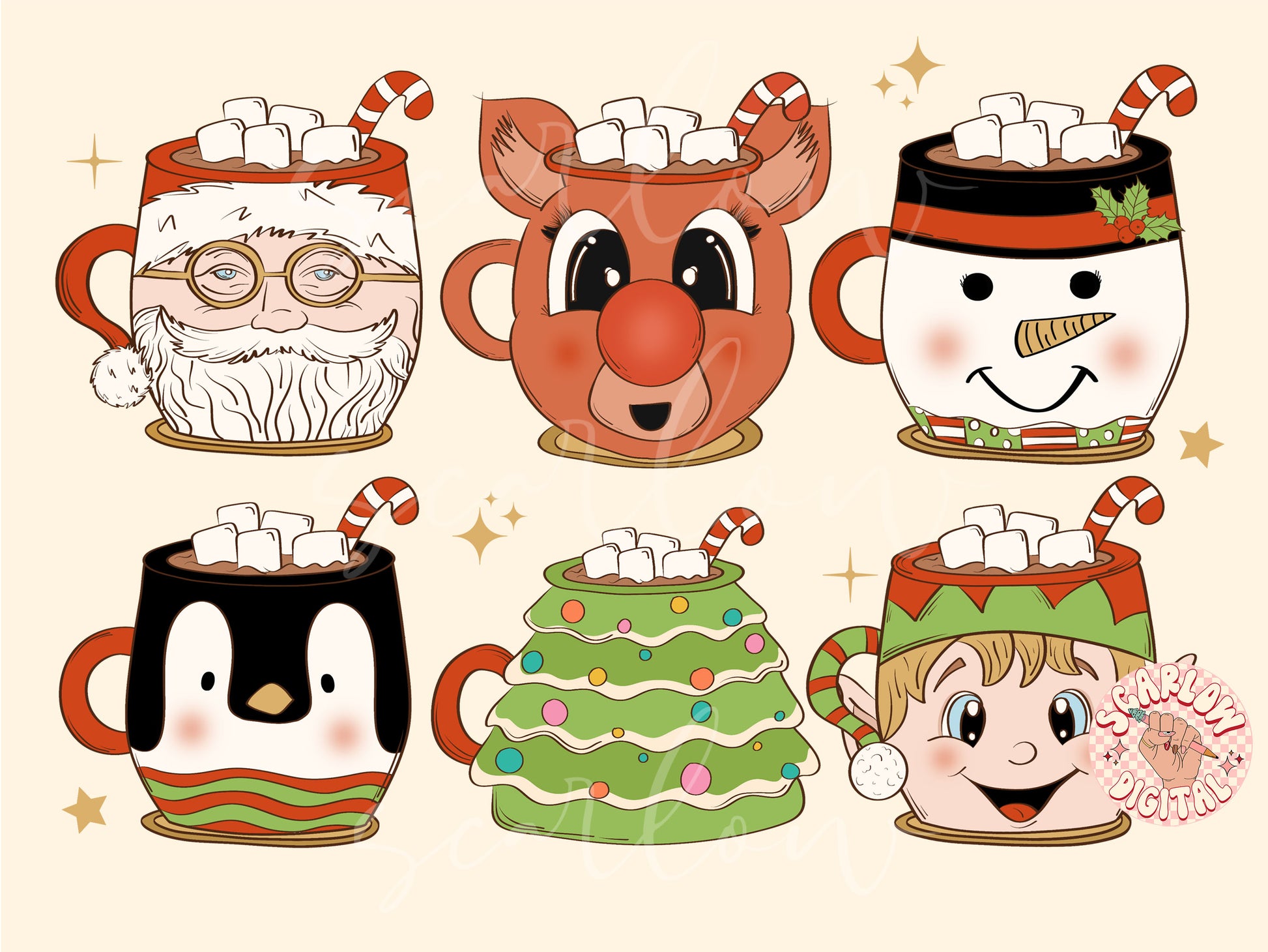Christmas Coffee Cups PNG Sublimation Digital Design Download-santa claus png, reindeer png, snowman png, penguin png, christmas tree png