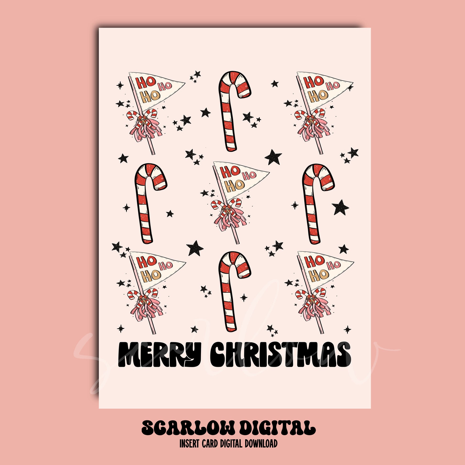 Christmas Flag and Candy Canes Insert Card Digital Design Download