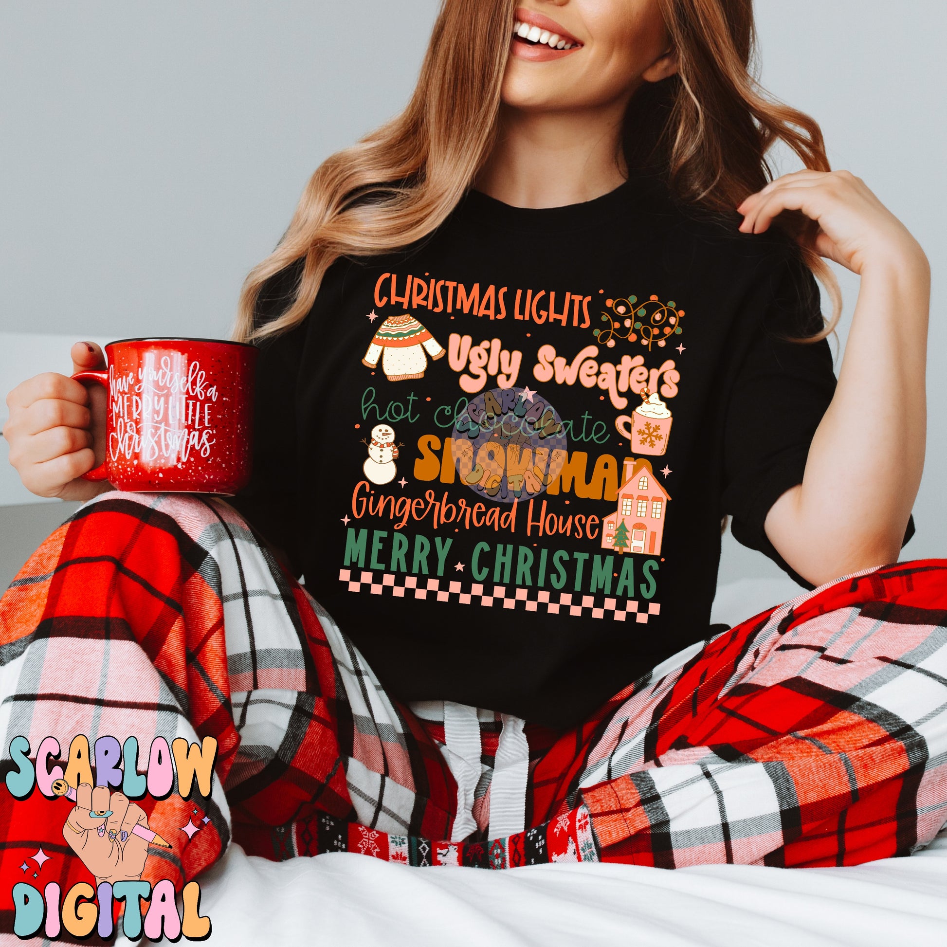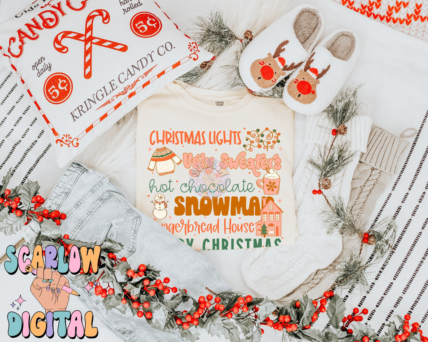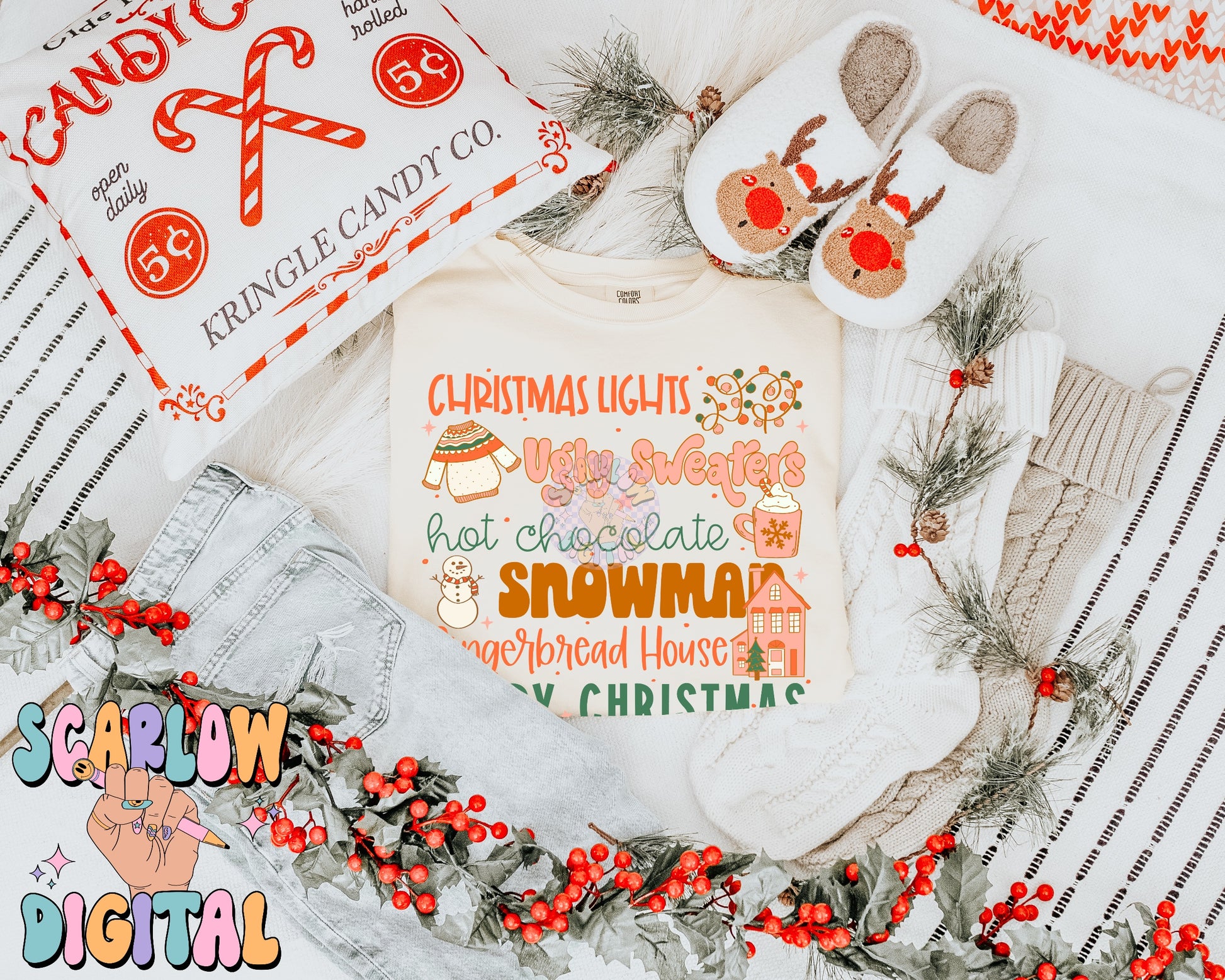 Christmas Things PNG Digital Design, christmas lights, snowman, merry christmas, trendy designs, gingerbread christmas, hot cocoa png design