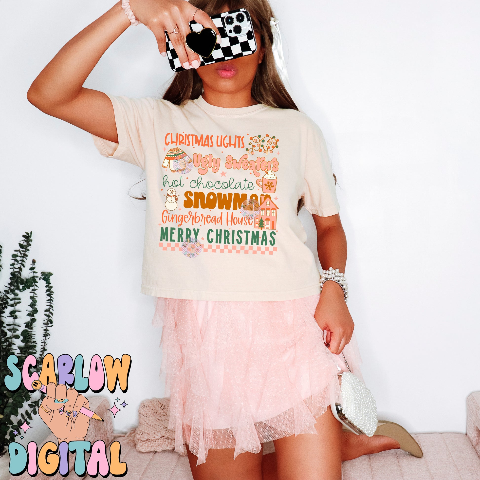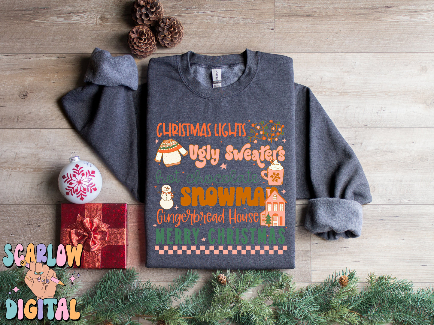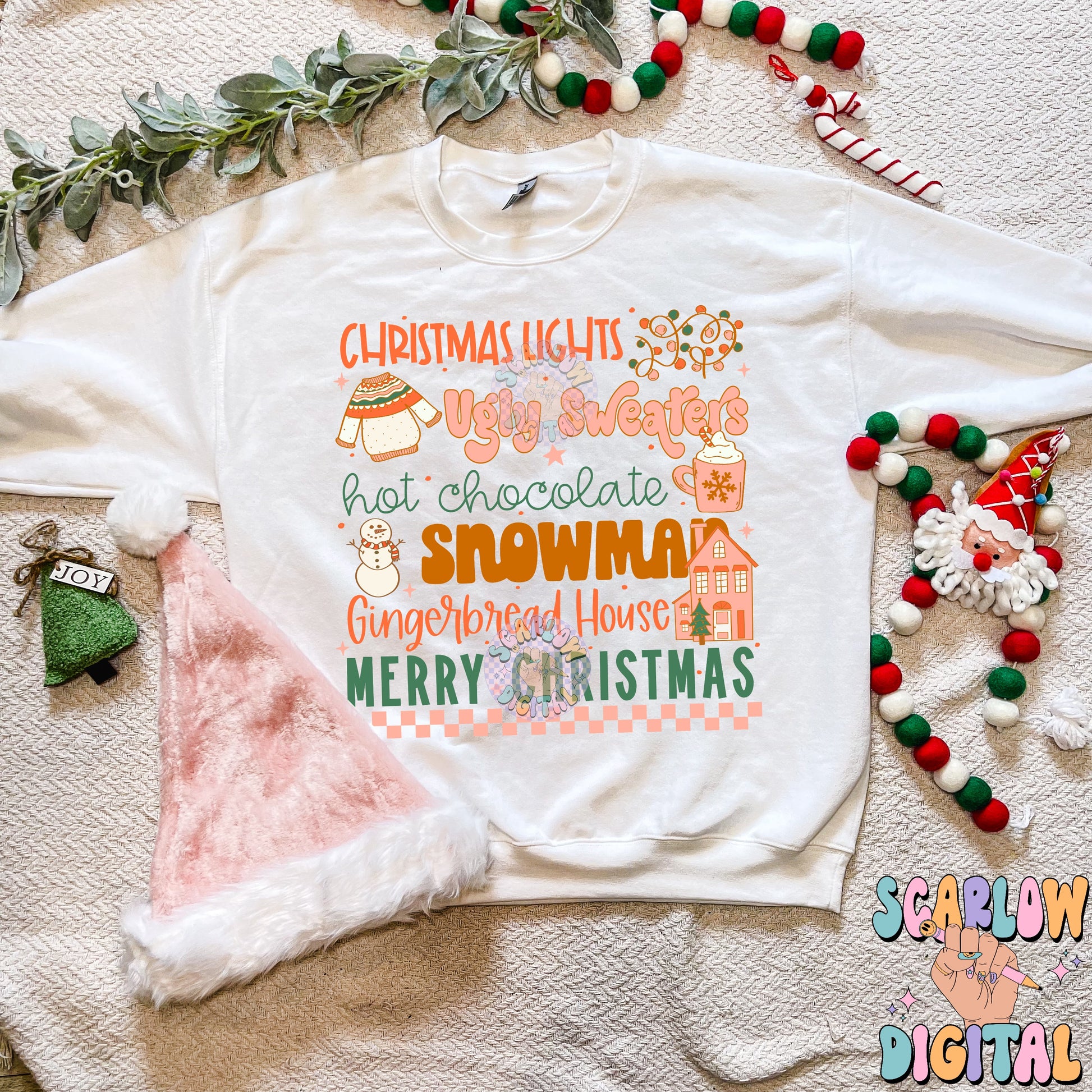 Christmas Things PNG Digital Design, christmas lights, snowman, merry christmas, trendy designs, gingerbread christmas, hot cocoa png design