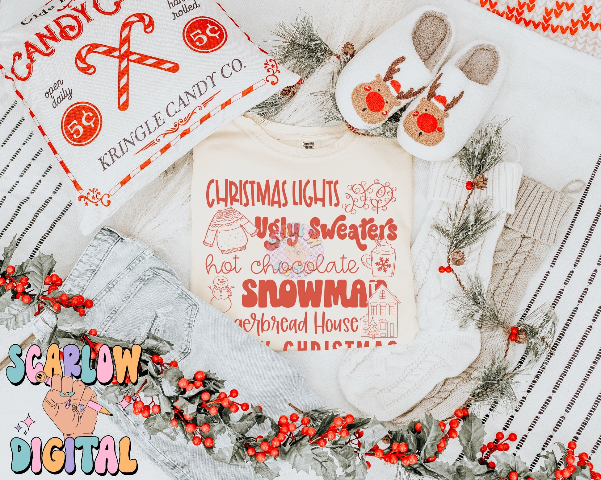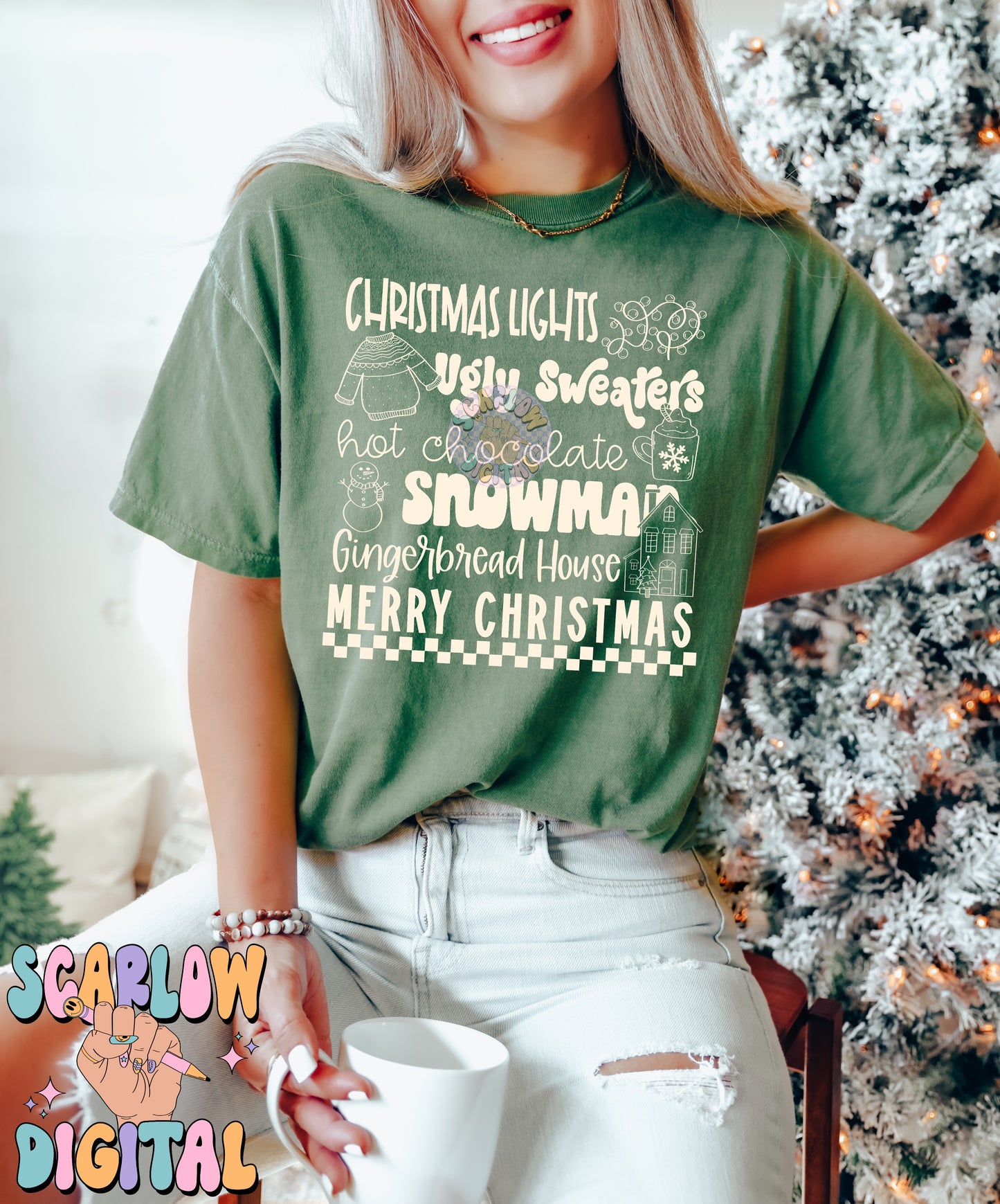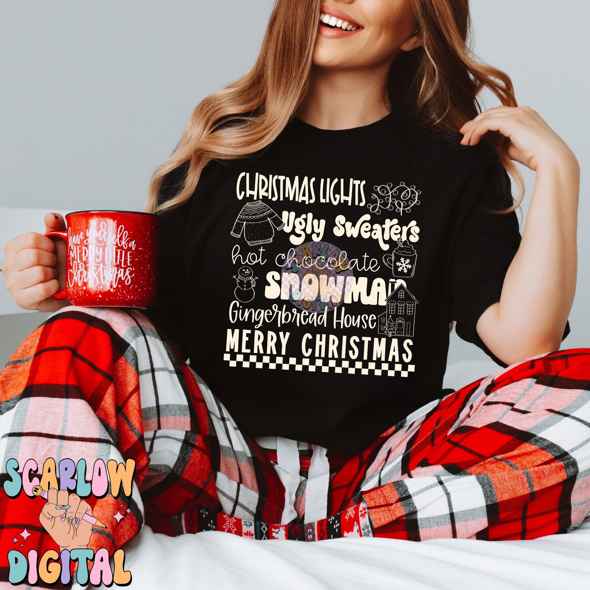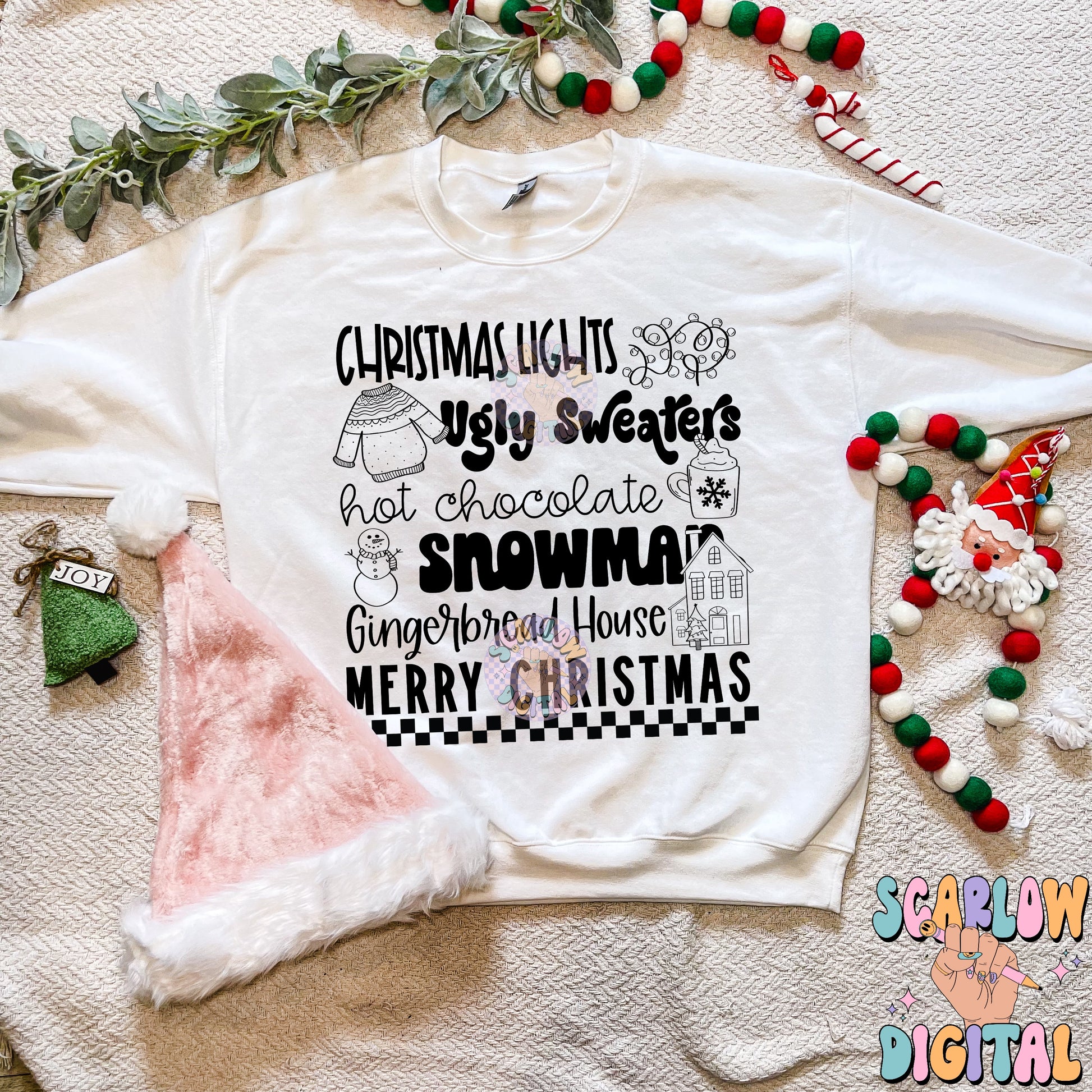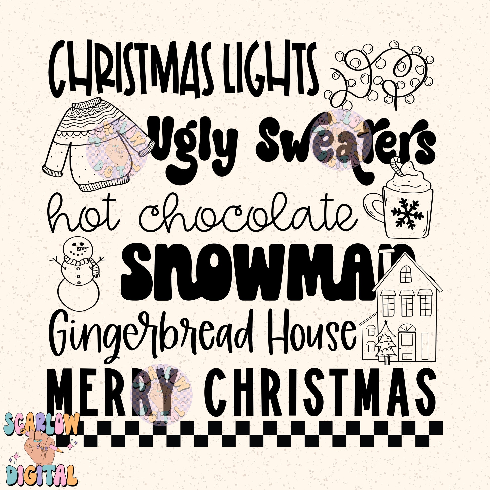 Christmas Things PNG Digital Design, christmas lights, snowman, merry christmas, trendy designs, single color christmas, hot cocoa png design