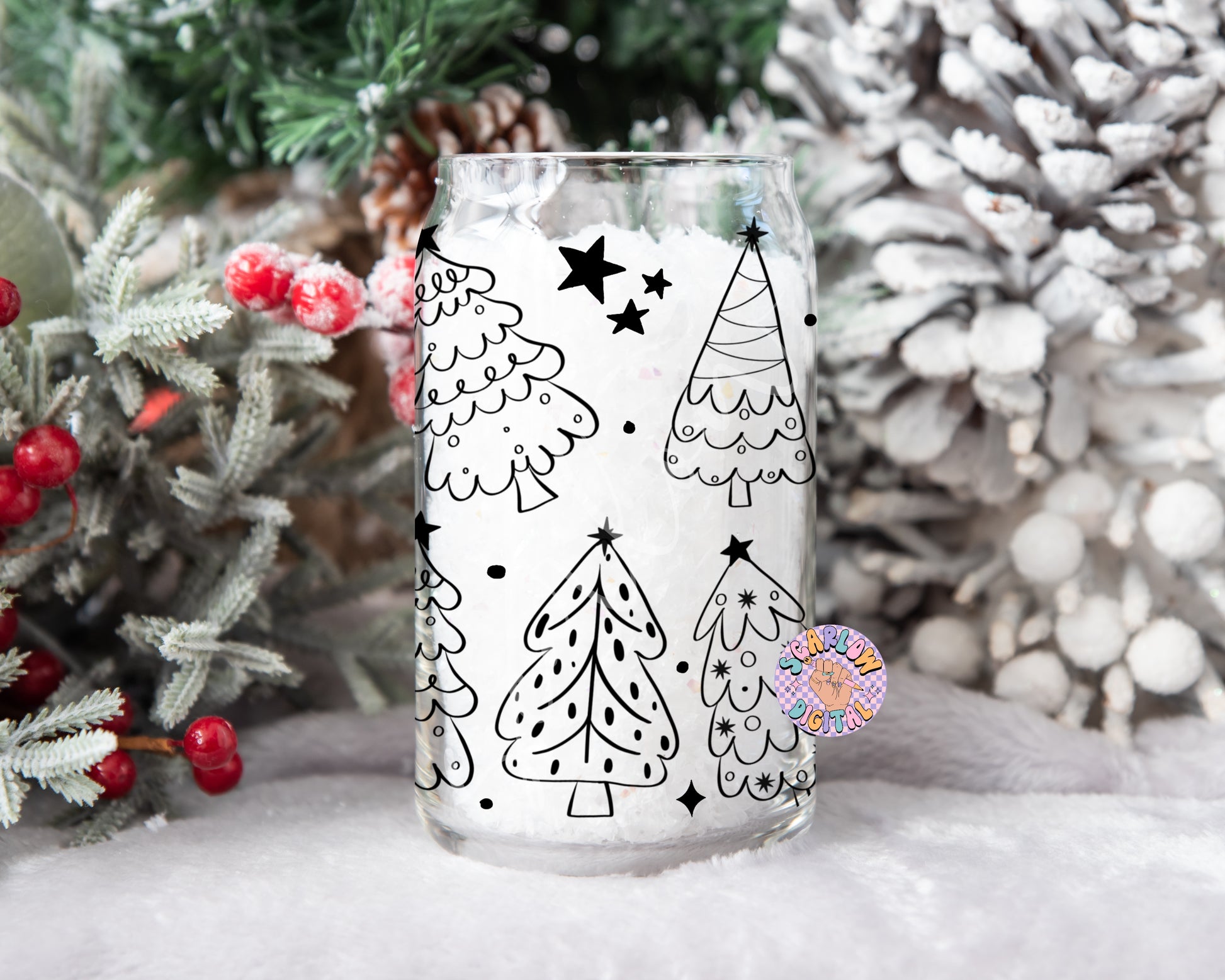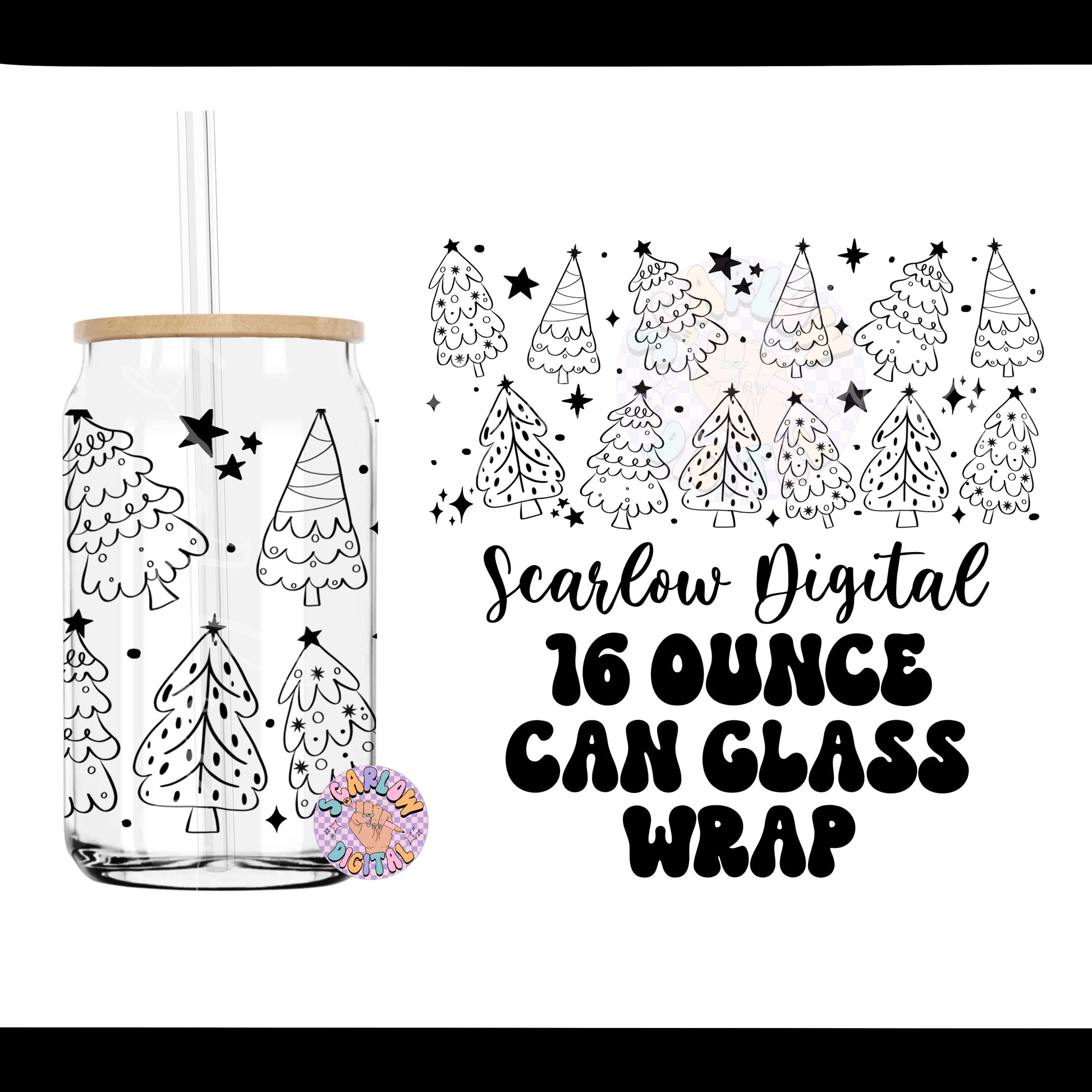 Christmas Trees Can Glass Wrap SVG Digital Design Download, funky christmas can glass wrap, 16 ounce can glass wrap, christmas svg designs