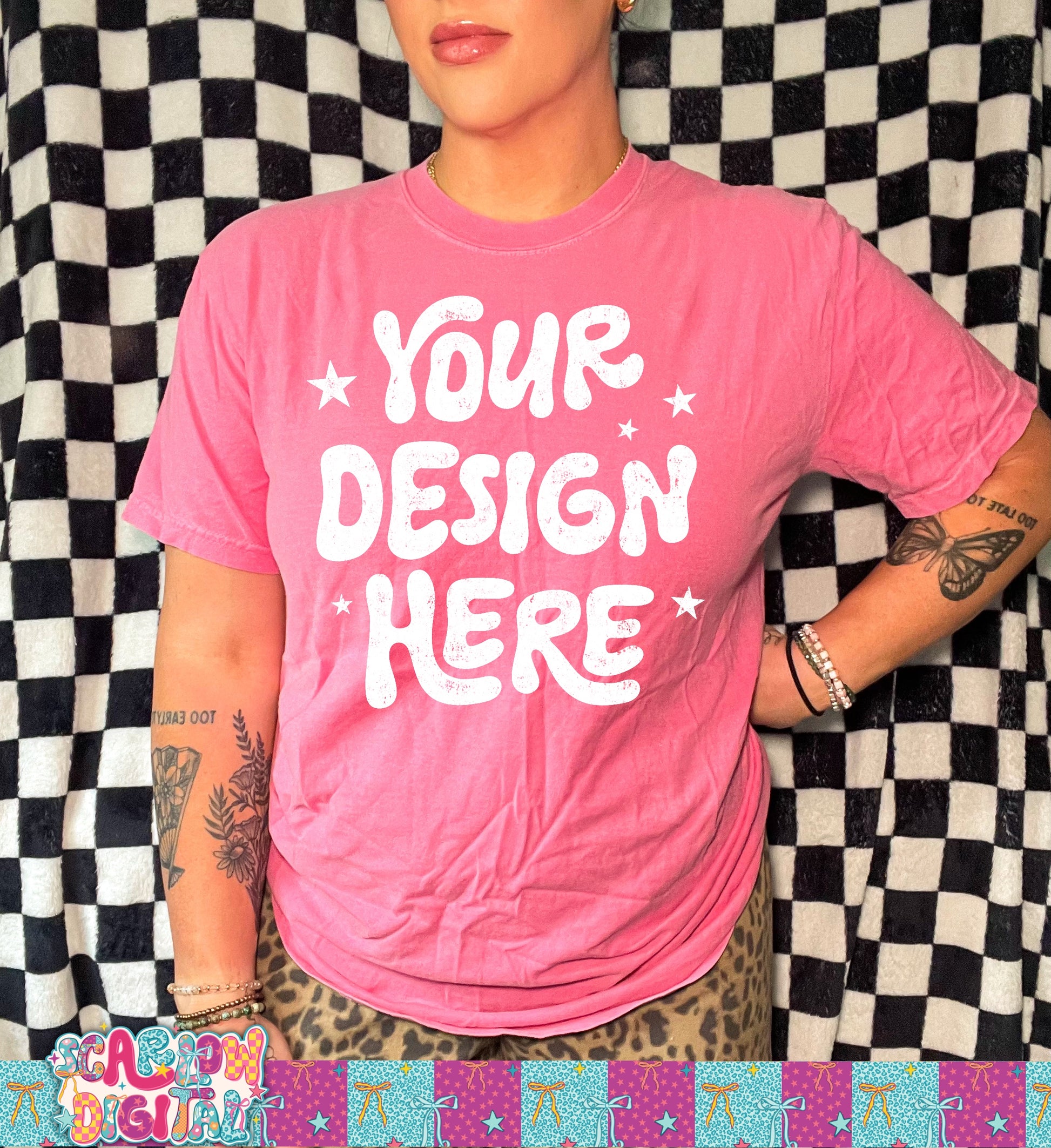 You will need an image-editing app to add a design to the mock-up such as Procreate, Photoshop, or Canva. We kindly ask that you do your research before buying a mock-up from us because we do not offer advice, help, or tutorials on how to put a design on a mock-up. We recommend watching some tutorials on Youtube if you need help adding a design to our mock-ups.