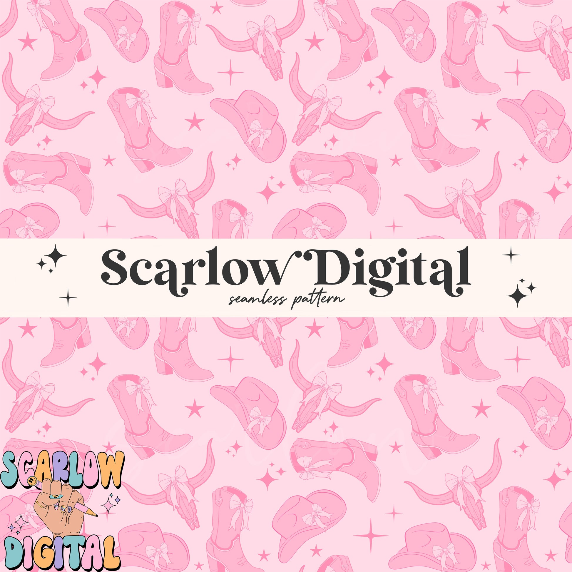 Coquette Cowgirl Seamless Pattern-Western Sublimation Digital Design Download-bows seamless pattern, frilly seamless pattern, girl seamless