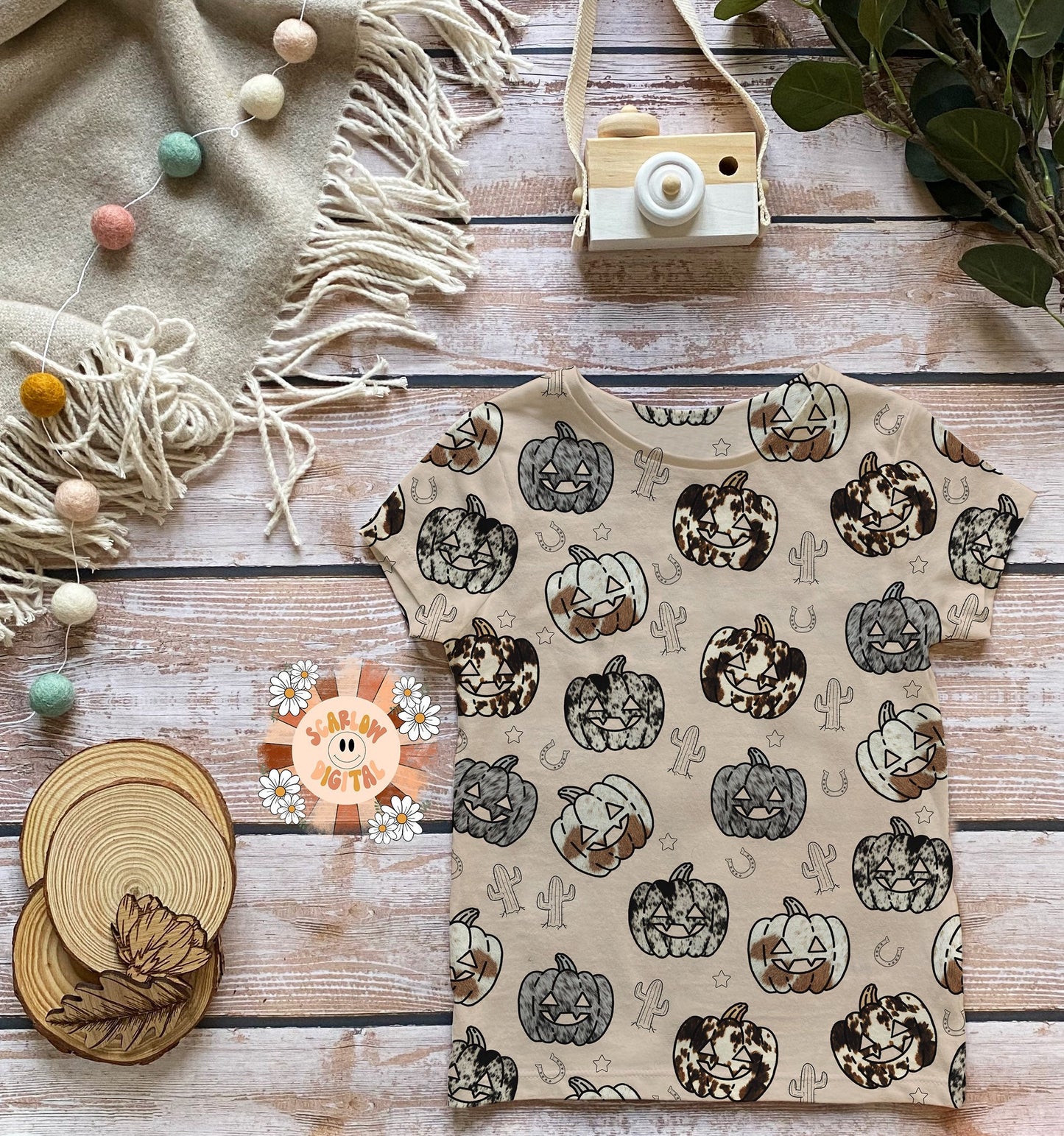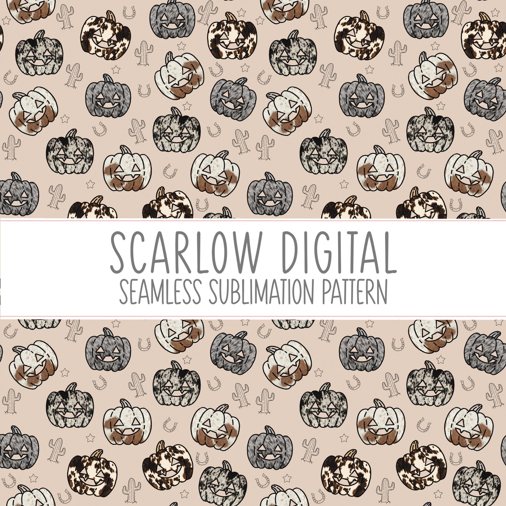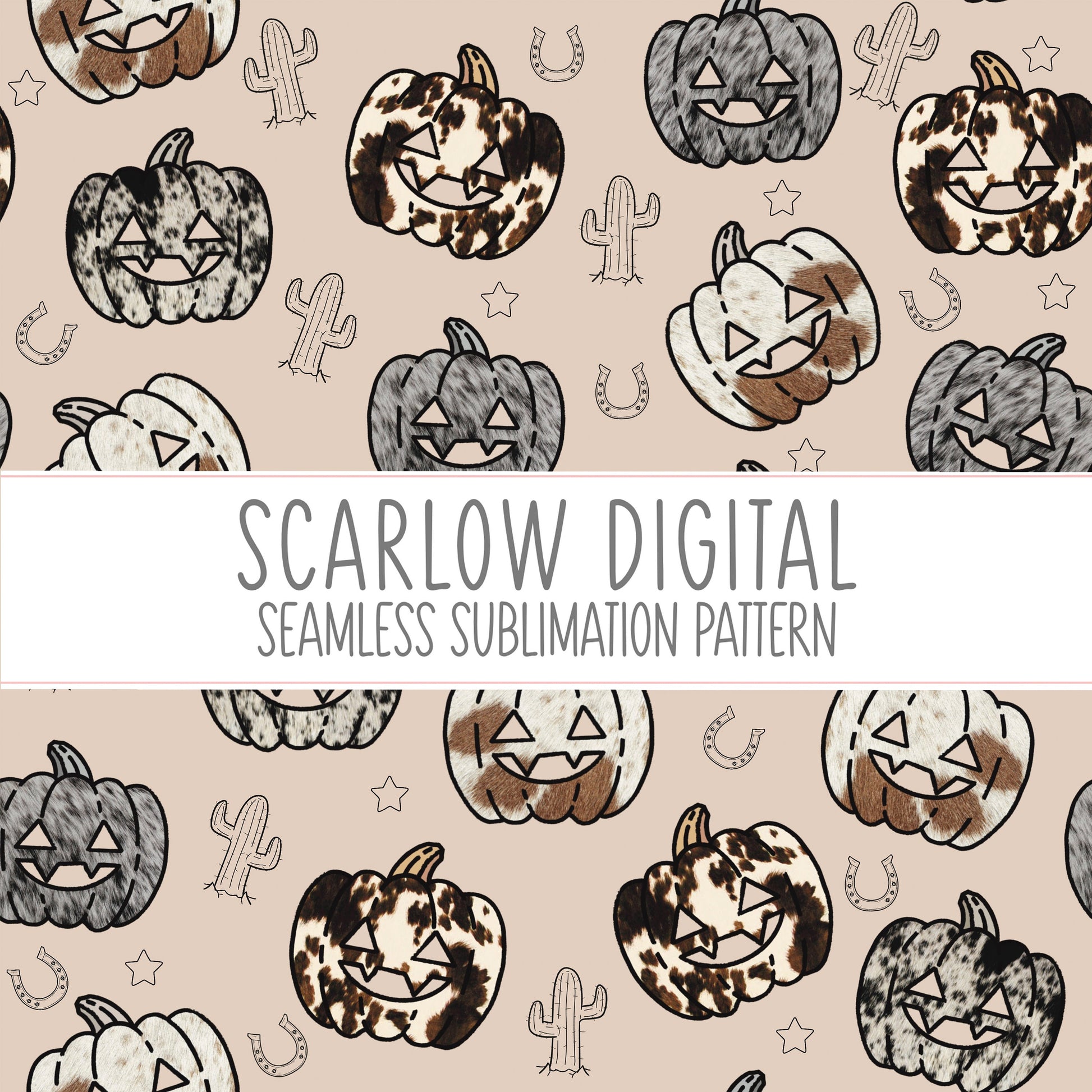 Country Pumpkin Seamless Pattern-Western Fall Sublimation Digital Design Download-cowhide seamless sublimation, western Halloween seamless