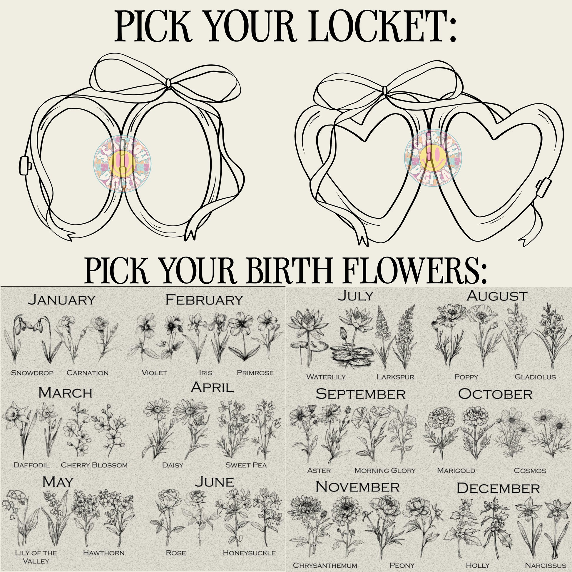 Custom Locket + Birth Flower Designs