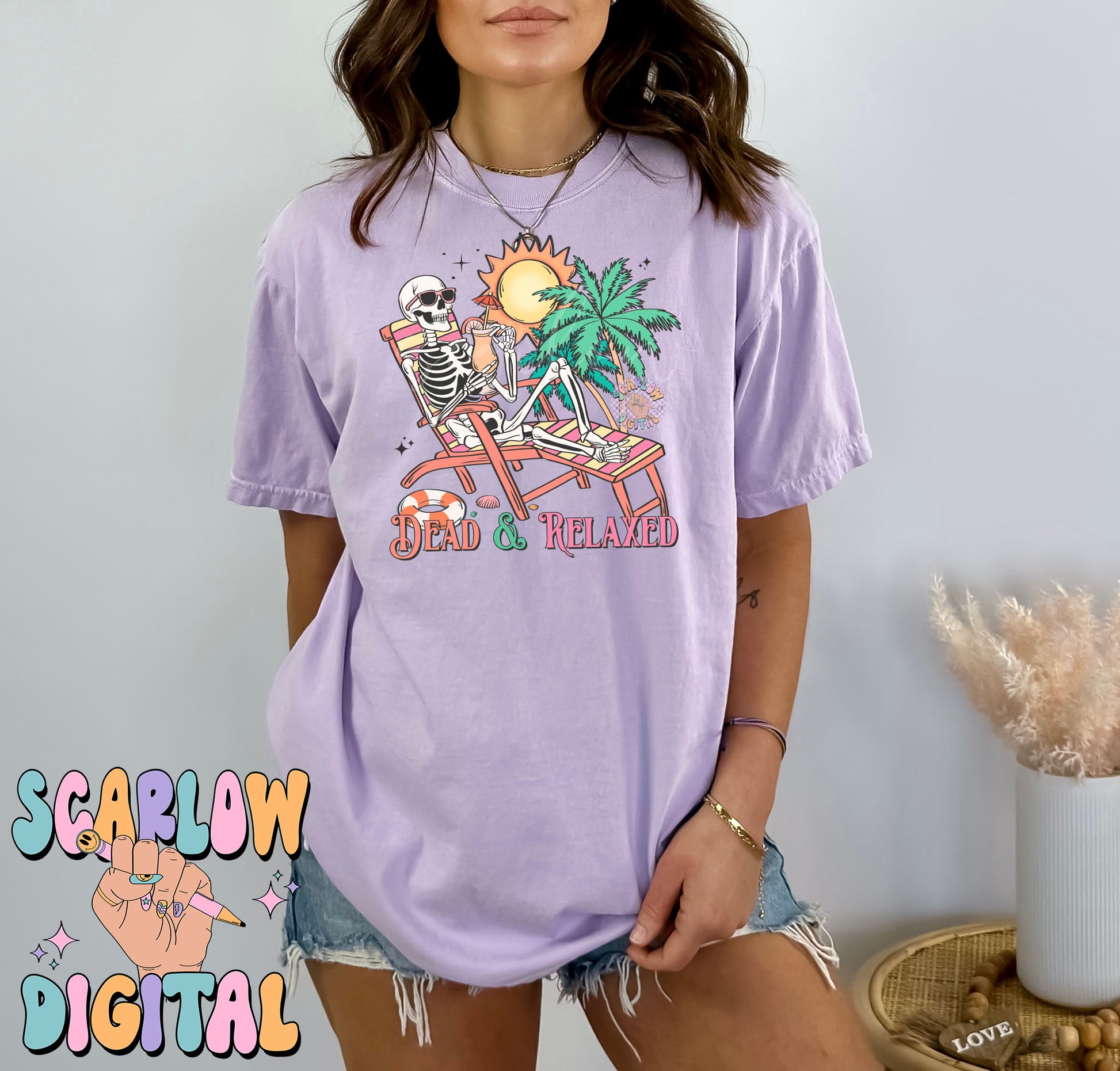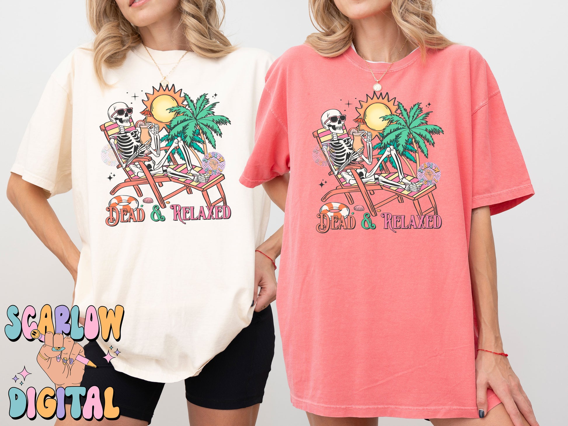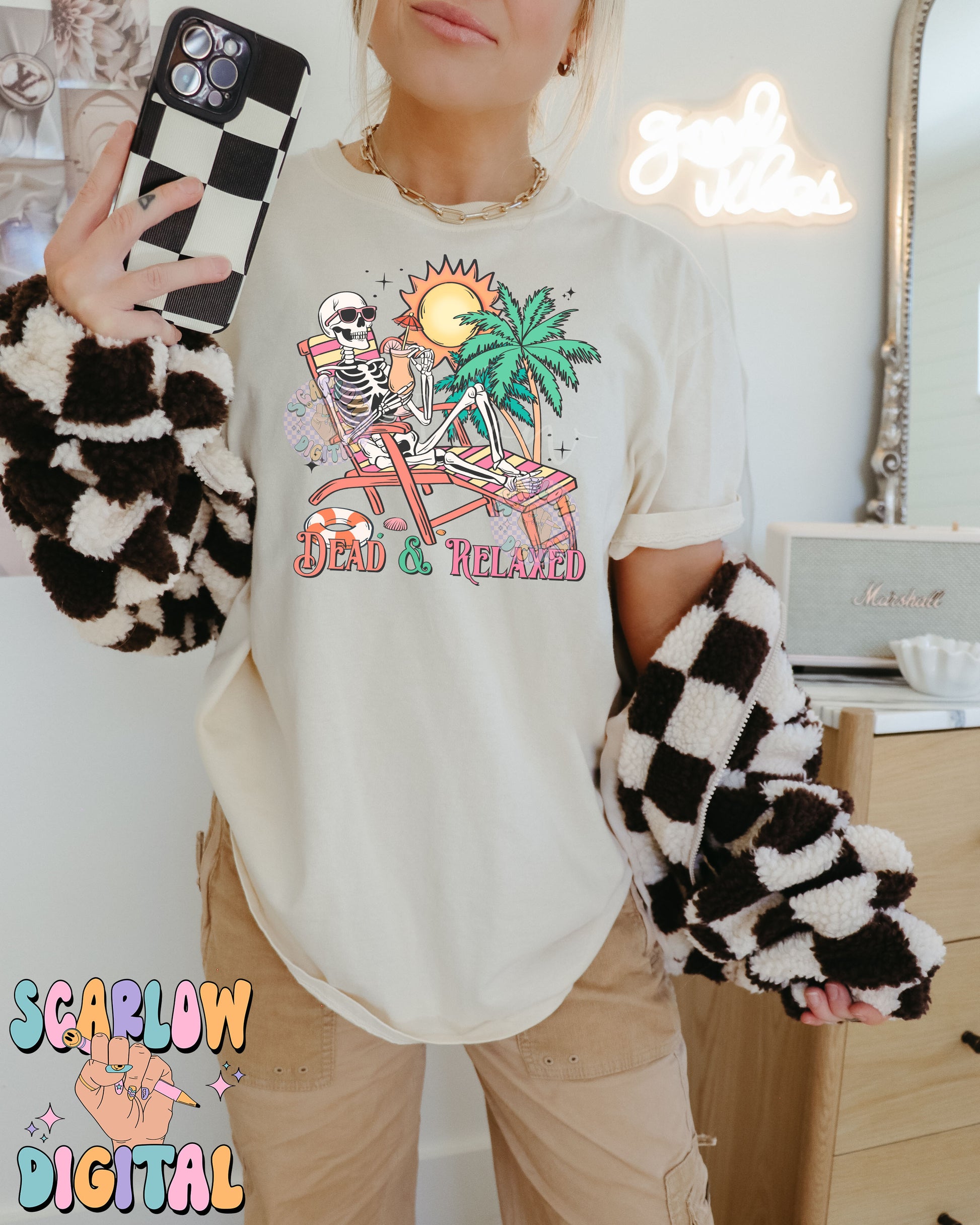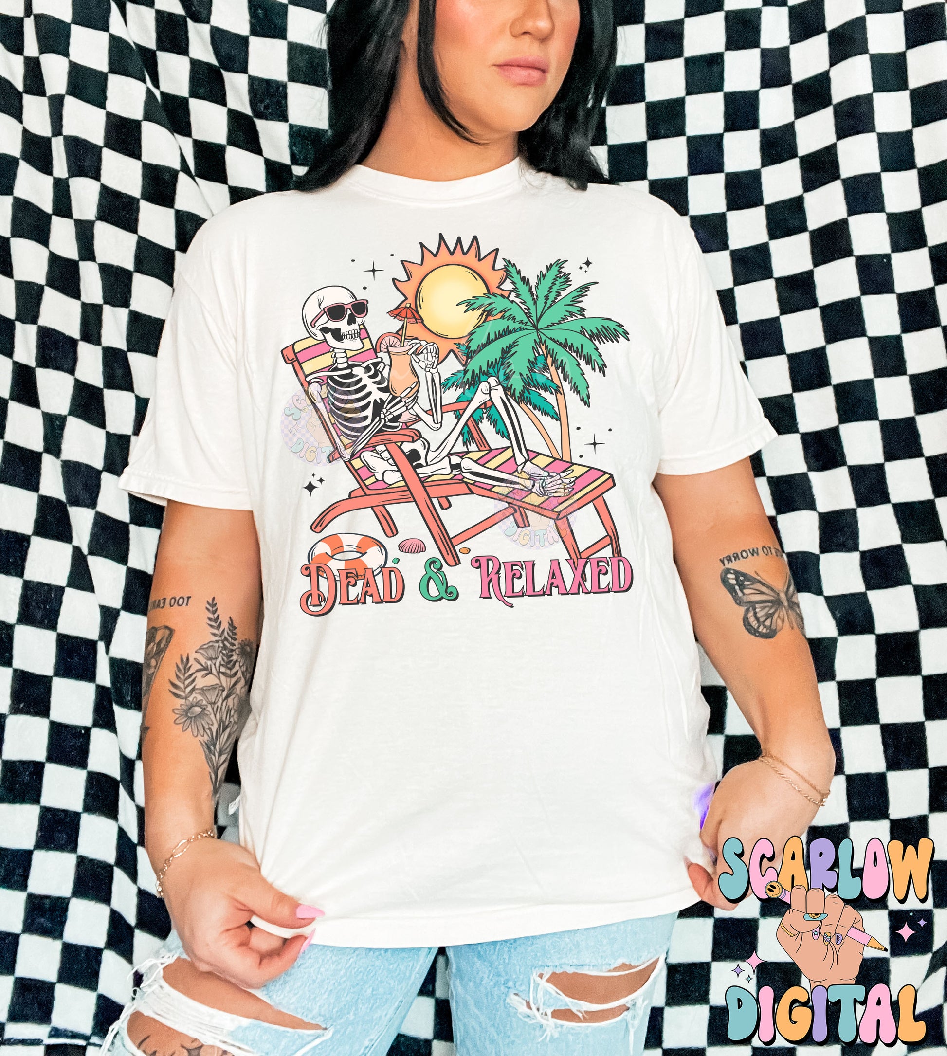 Dead and Relaxed PNG Digital Design Download, skeleton png, funny png designs, halloween png, spooky summer png, beach png, palm trees png