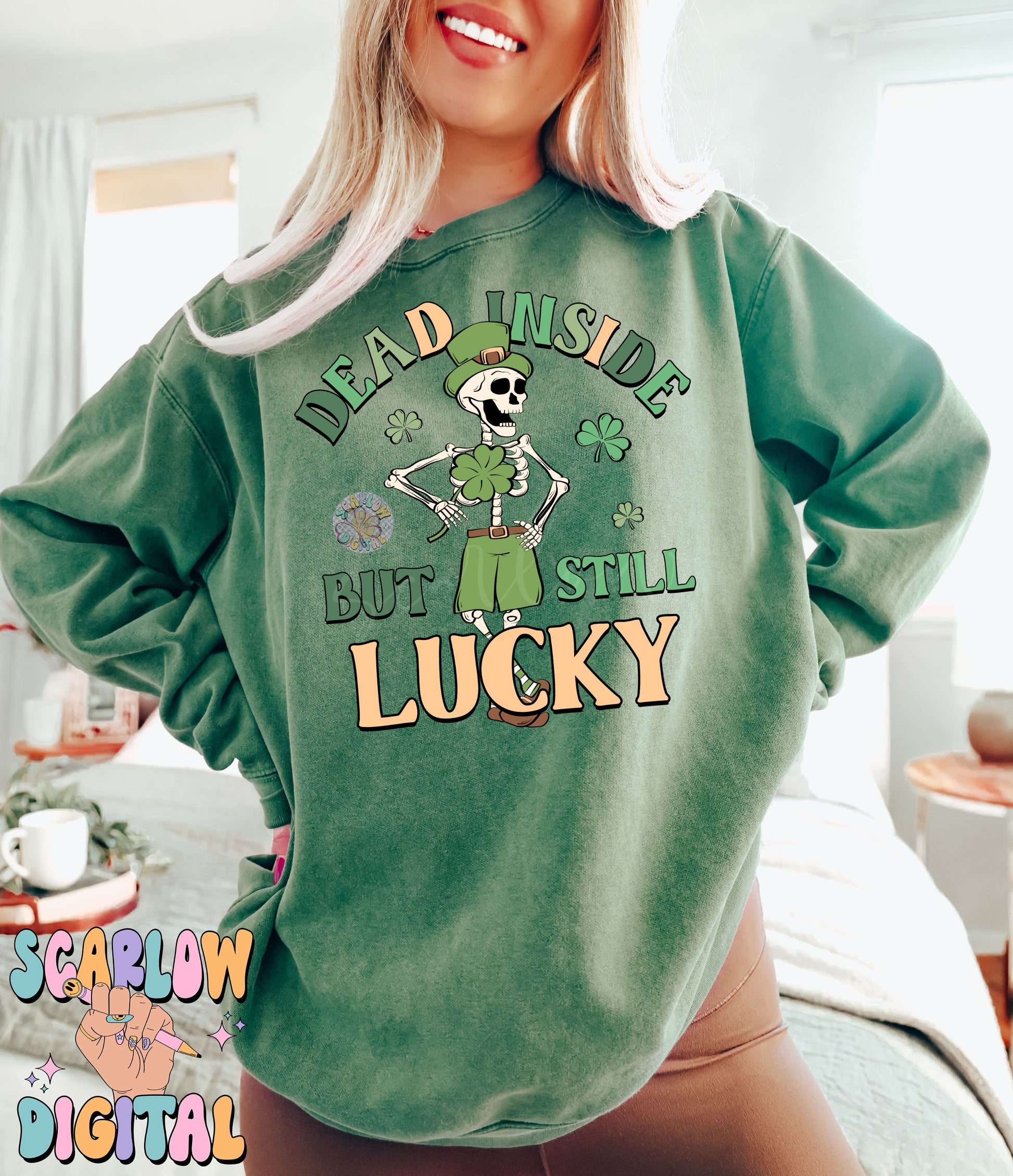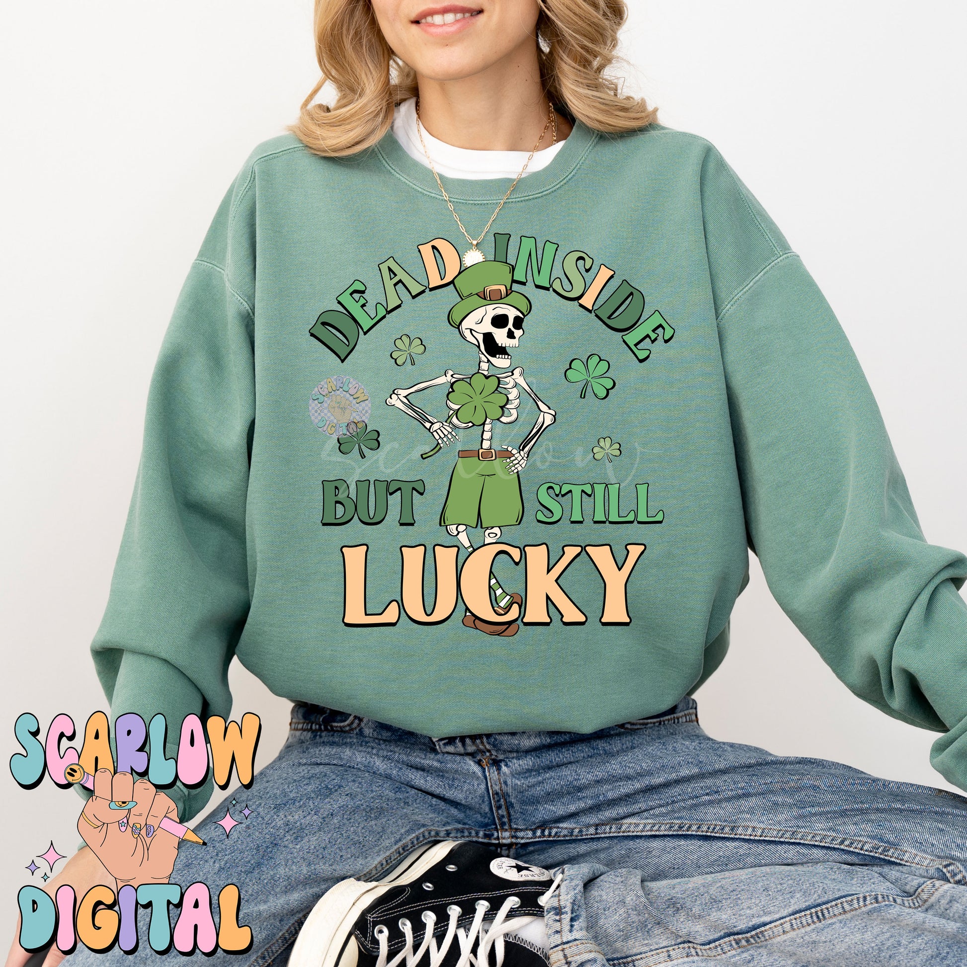 Dead Inside But Still Lucky PNG-St Patrick's Day Sublimation Digital Design Download-shamrock png, skeleton png, adult humor png designs