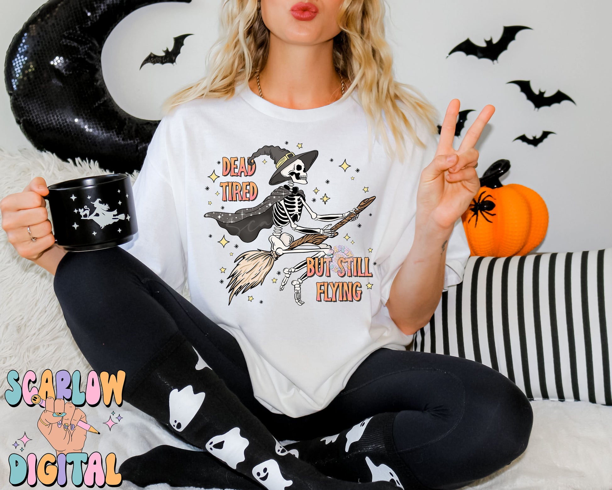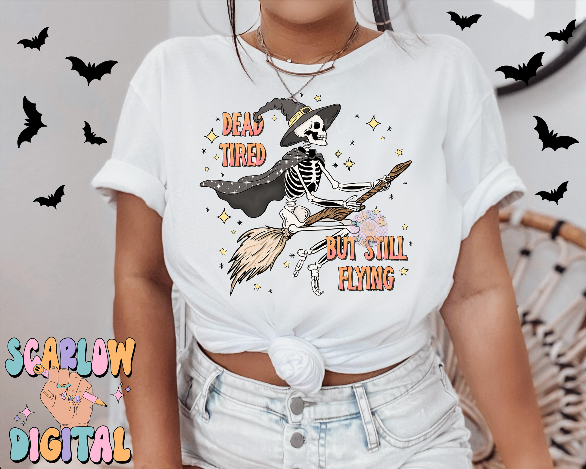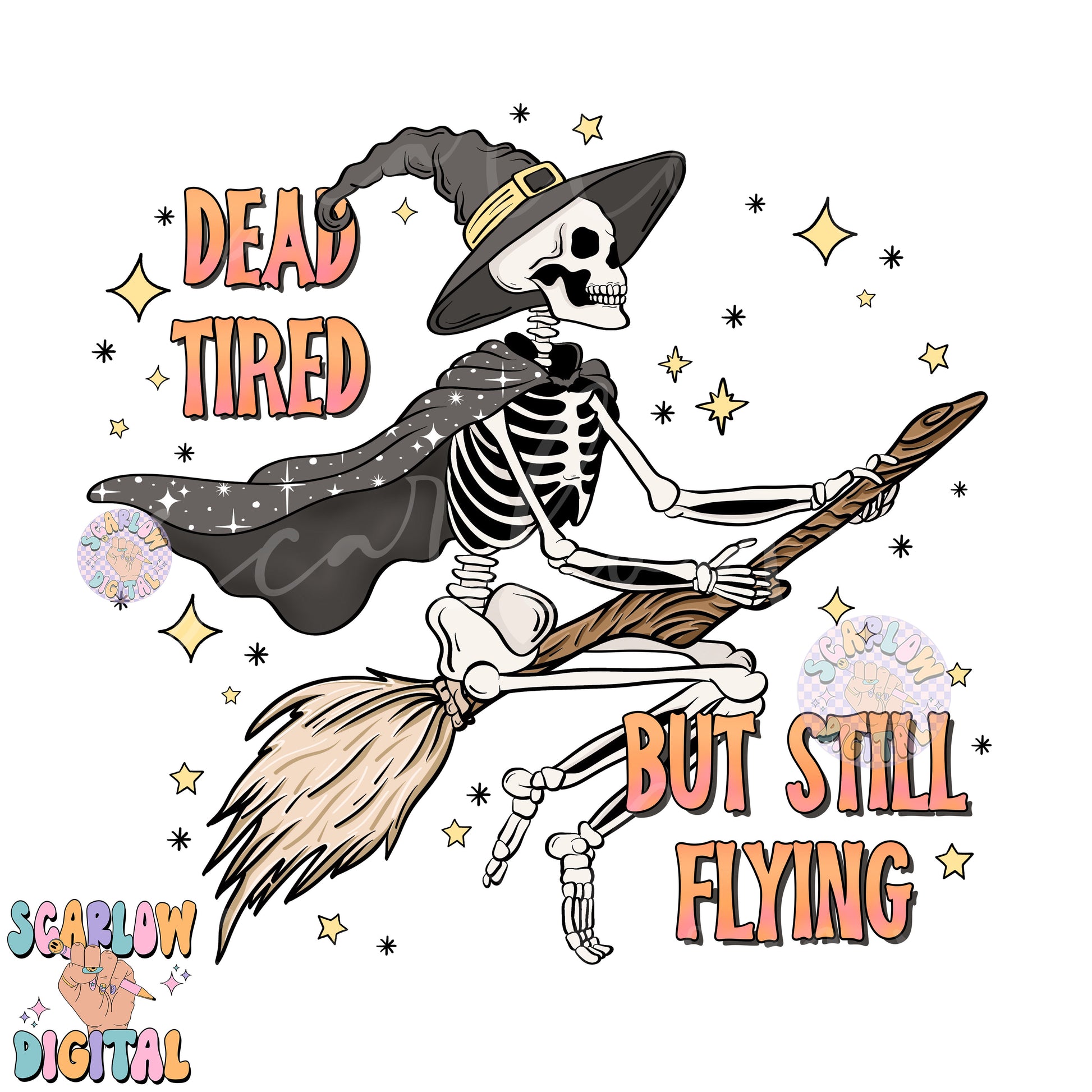 Dead Tired But Still Flying PNG Digital Design Download, Halloween png, skeleton png, funny png designs, adulting png, witchy png designs