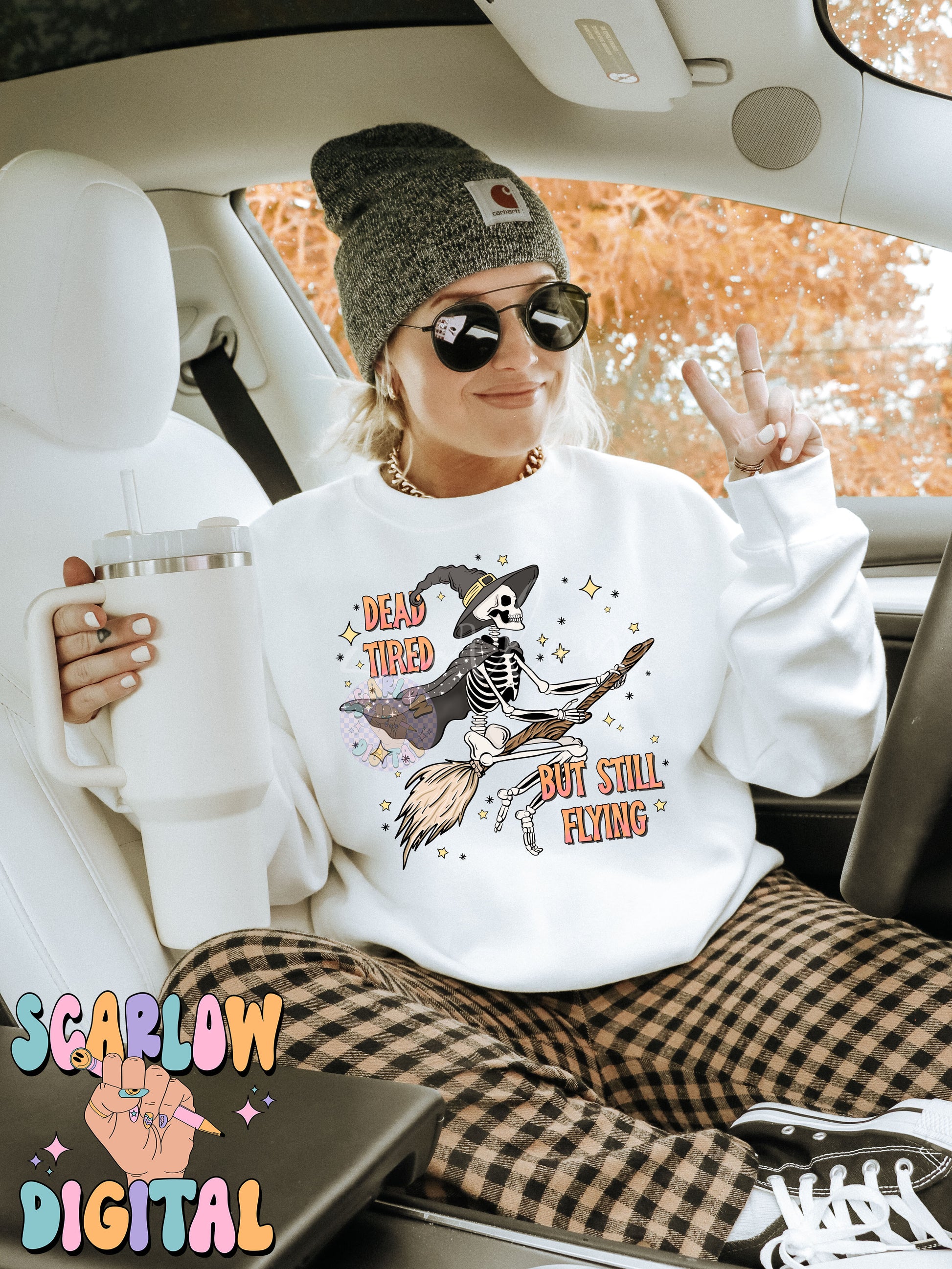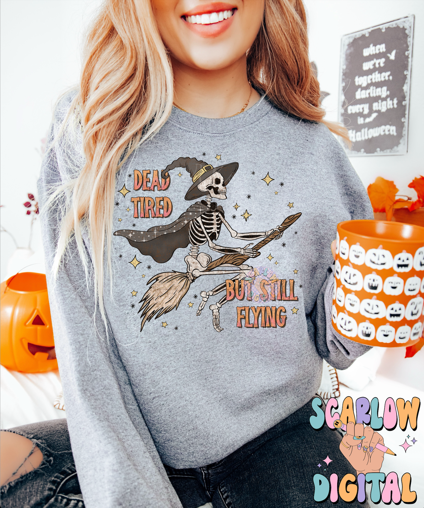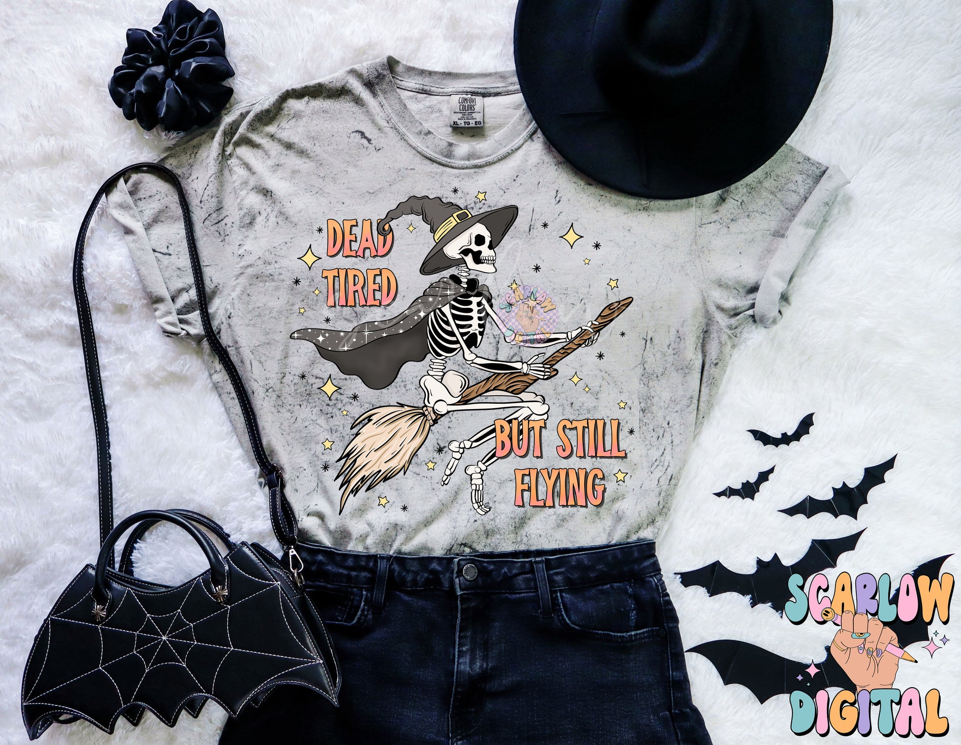 Dead Tired But Still Flying PNG Digital Design Download, Halloween png, skeleton png, funny png designs, adulting png, witchy png designs