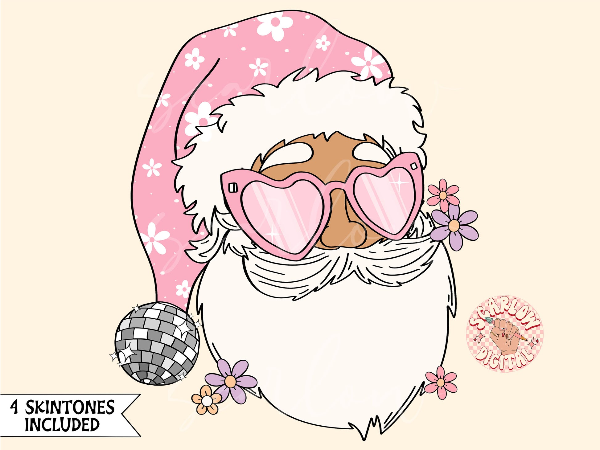 Disco Santa Claus PNG-Christmas Sublimation Digital Design Download-christmas flowers, preppy santa png, groovy christmas png, disco png