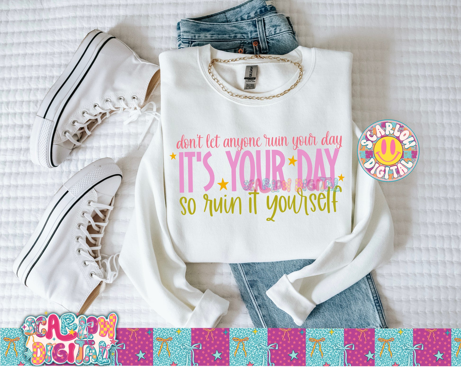 Don't Let Anyone Ruin Your Day It's Your Day Ruin It Yourself PNG Digital Design