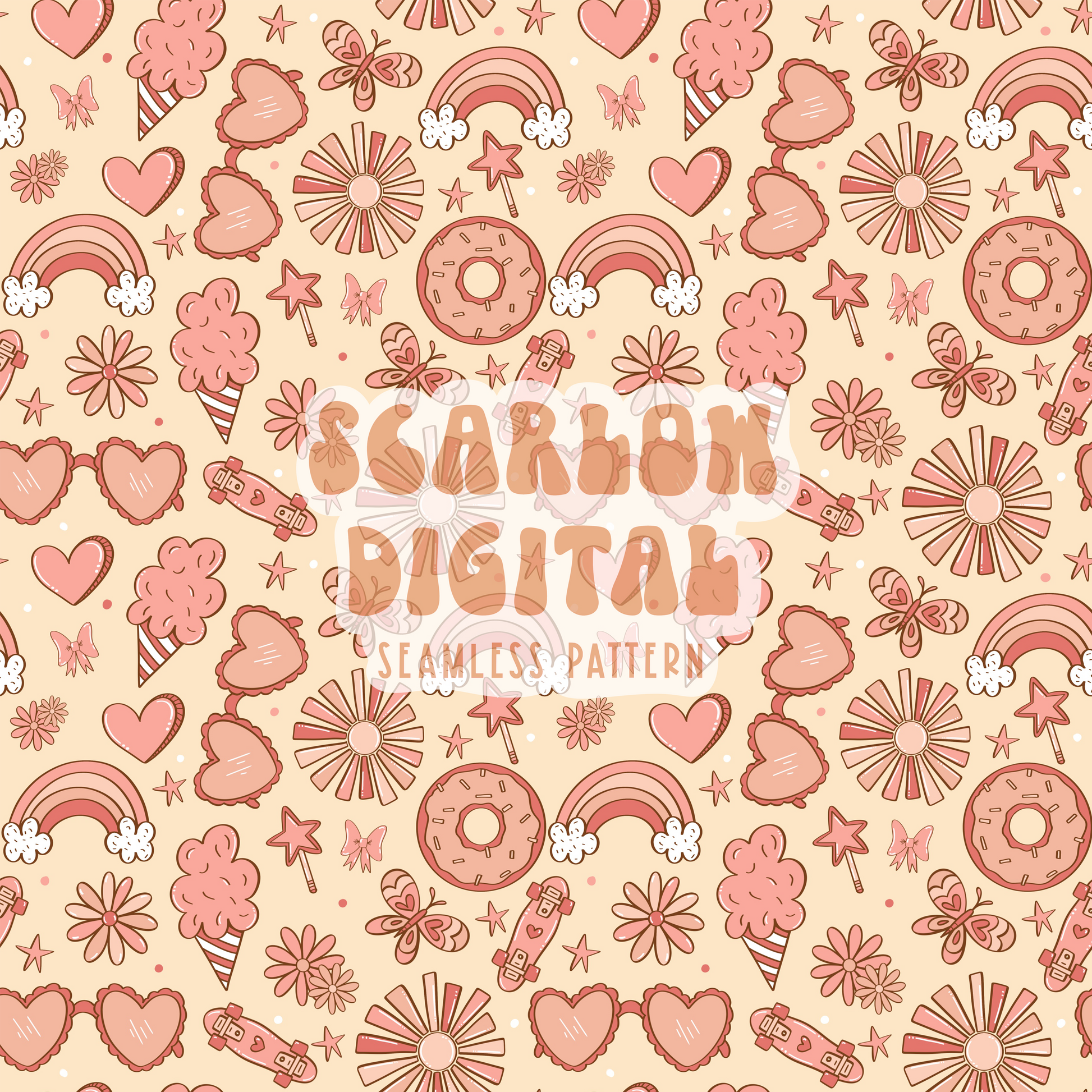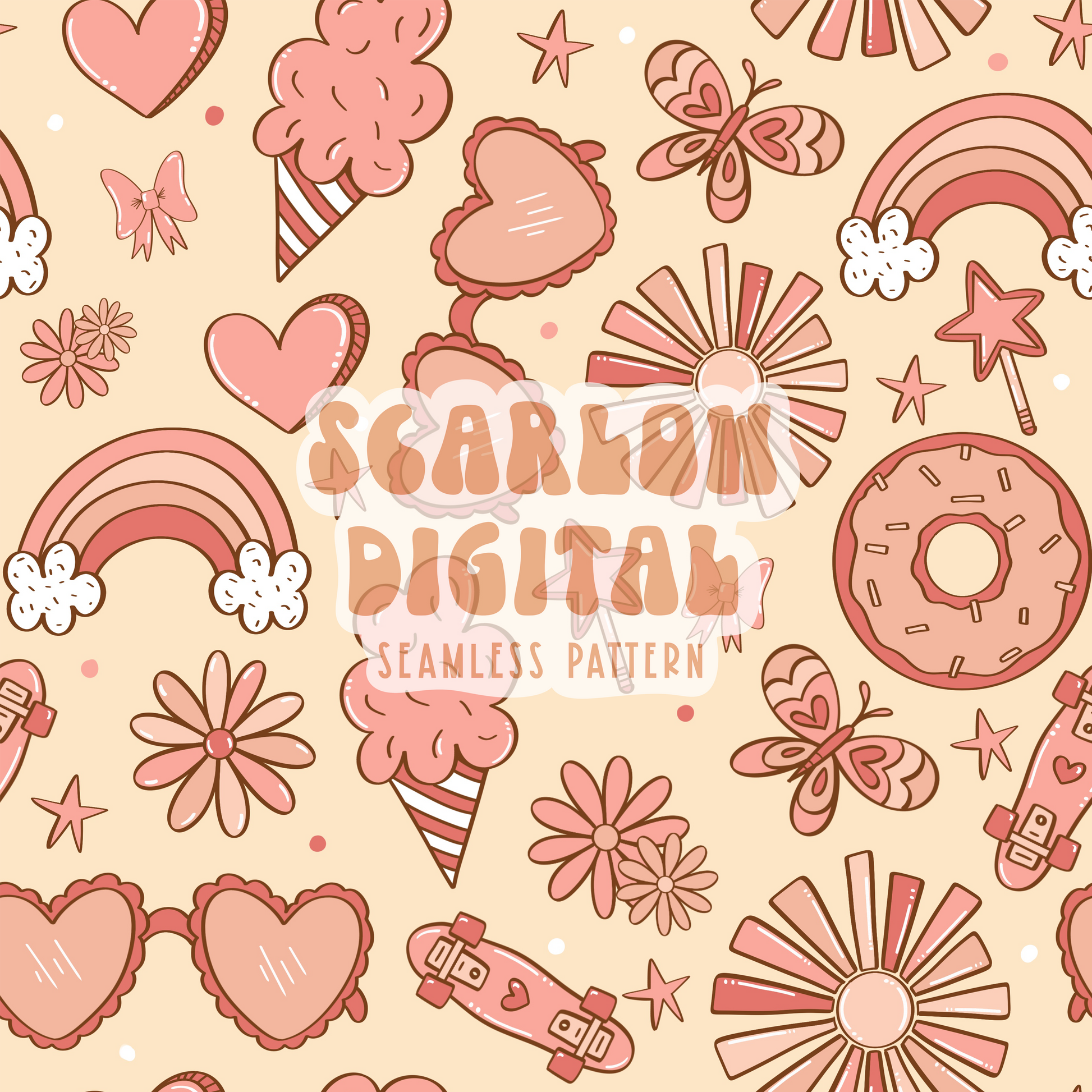 Doodles Seamless Pattern Sublimation Digital Design Download-sunglasses seamless, donut seamless, cotton candy seamless, flowers seamless