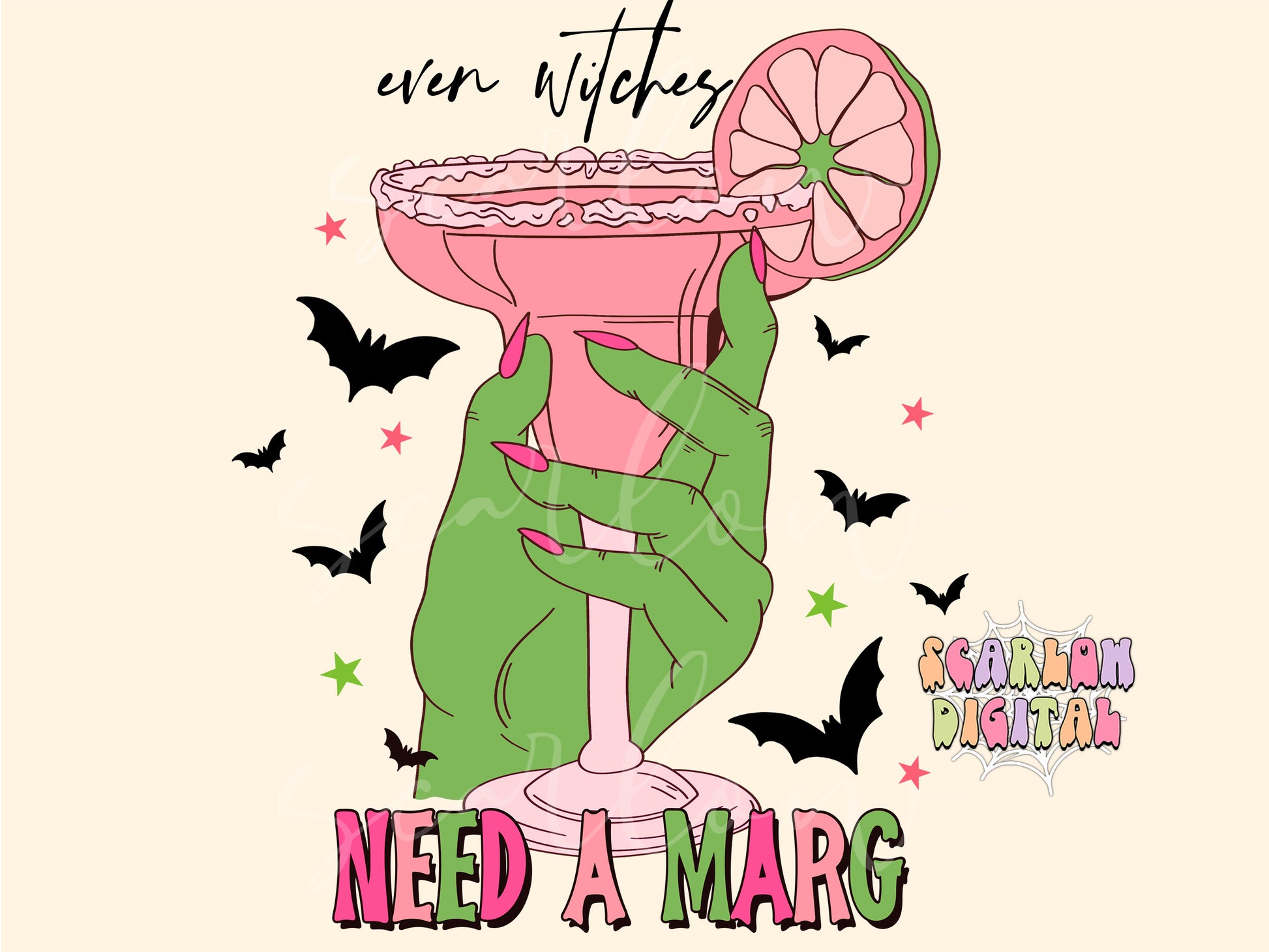 Even Witches Need a Marg PNG-Halloween Sublimation Digital Design Download-margarita png, funny png, adult humor png, witchcraft png, spooky
