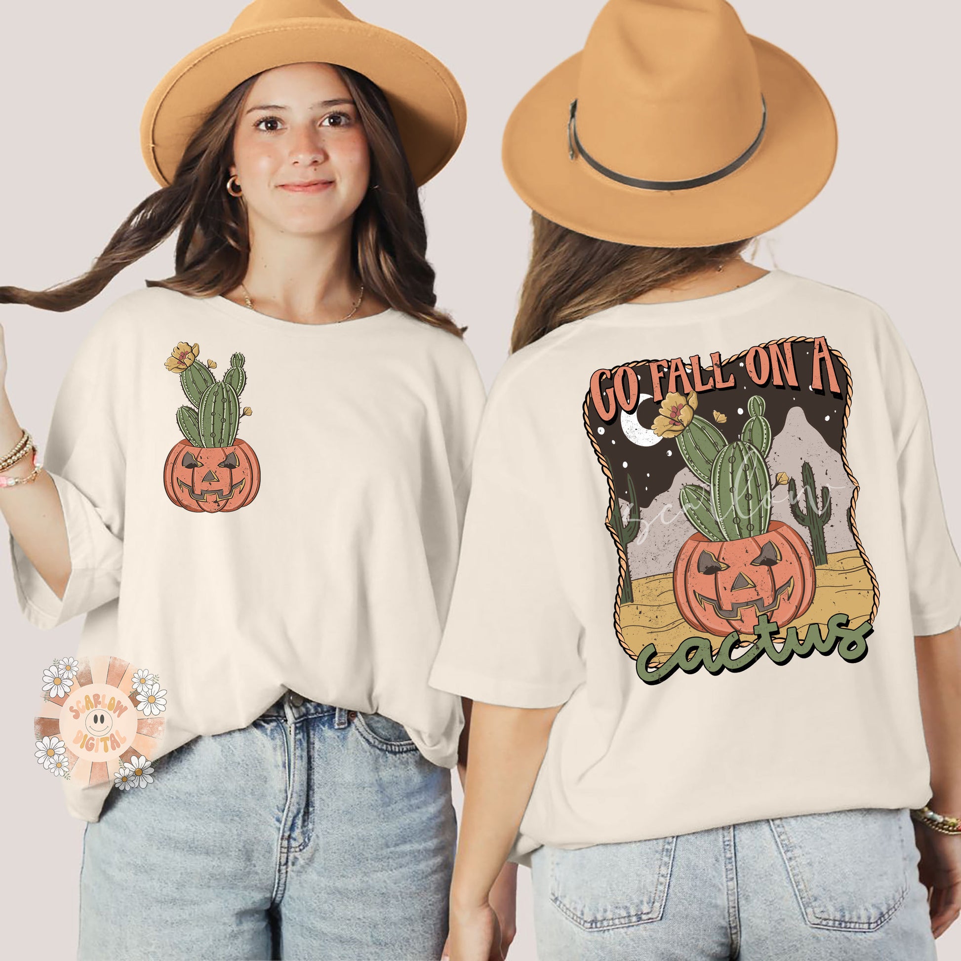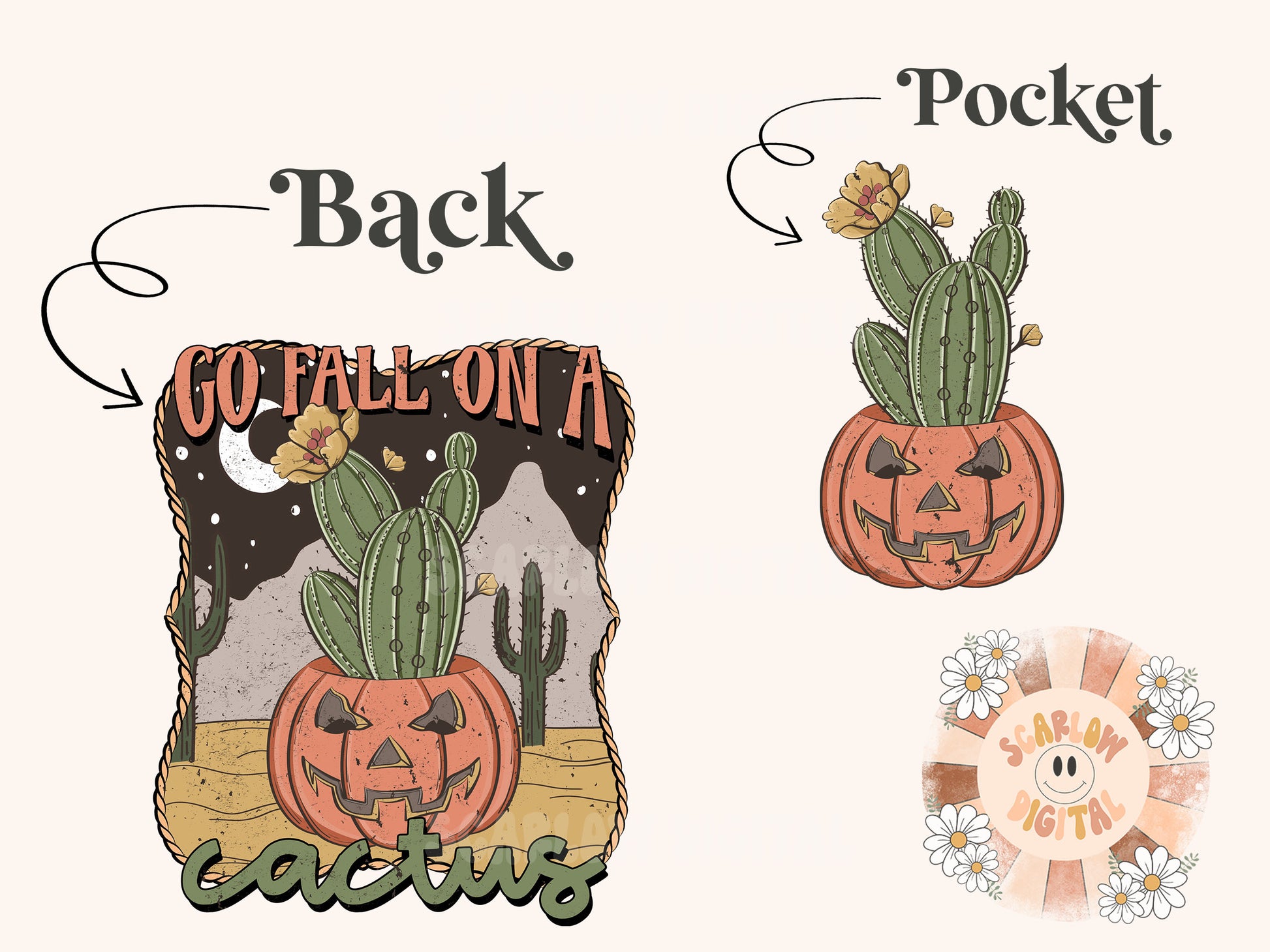 Fall on a Cactus Pocket and Back PNG Bundle-Pumpkin Sublimation Digital Design Download-front & back png, adult humor png, halloween png