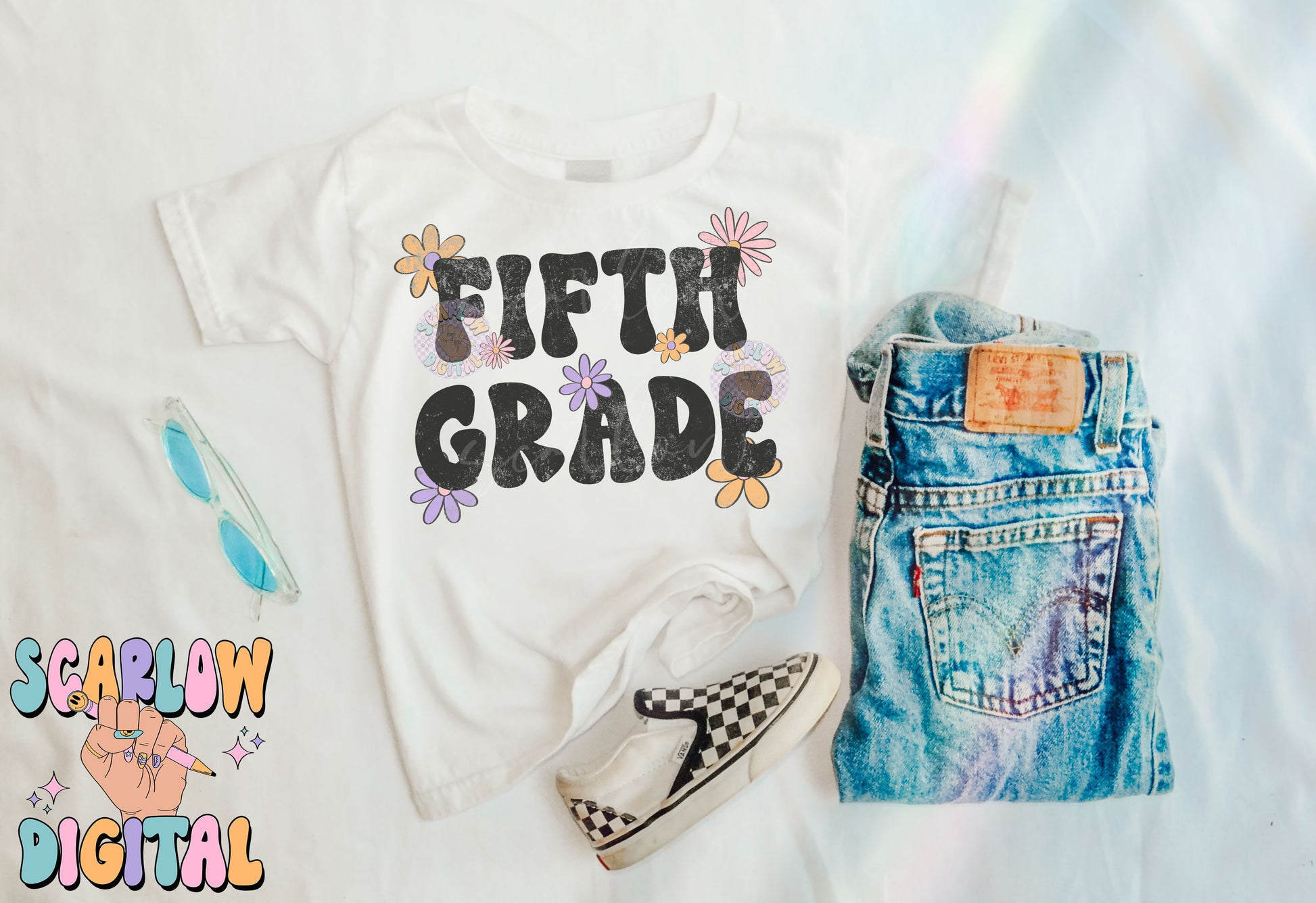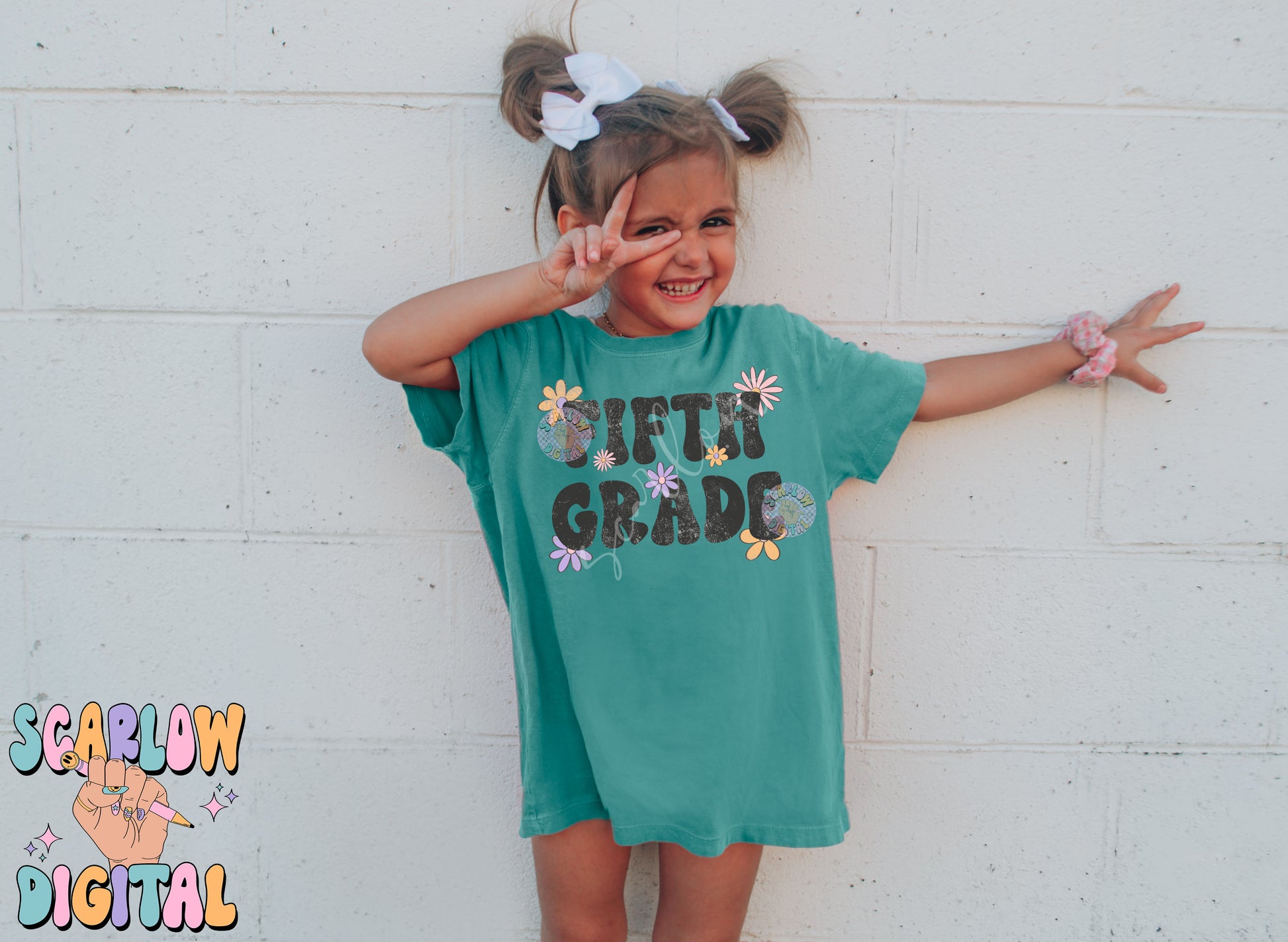 Fifth Grade PNG Digital Design Download, back to school png, little girl png, flowers png, grade school png, trendy school design, girl png