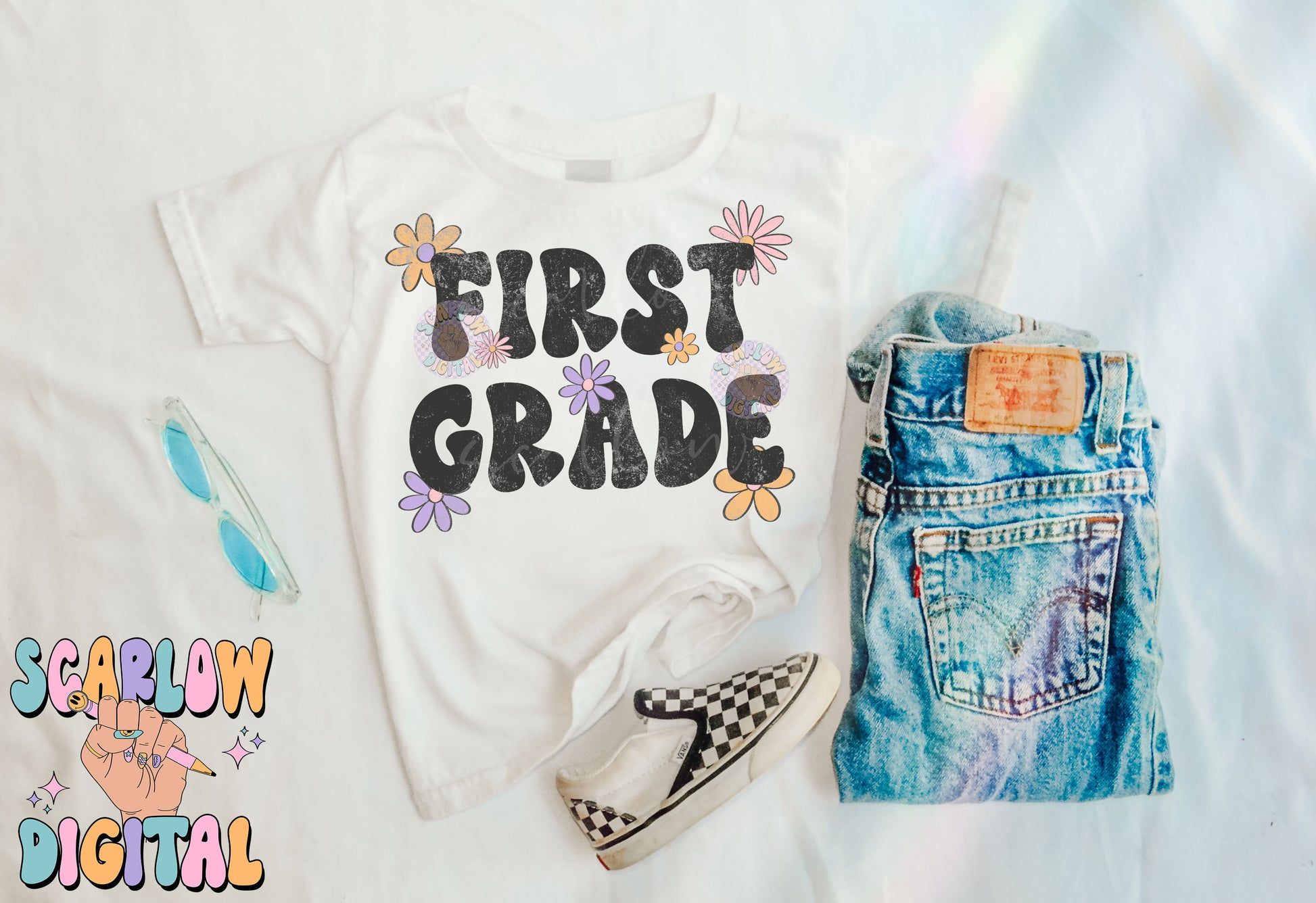 First Grade PNG Digital Design Download, back to school png, little girl png, flowers png, grade school png, trendy school design, girl png