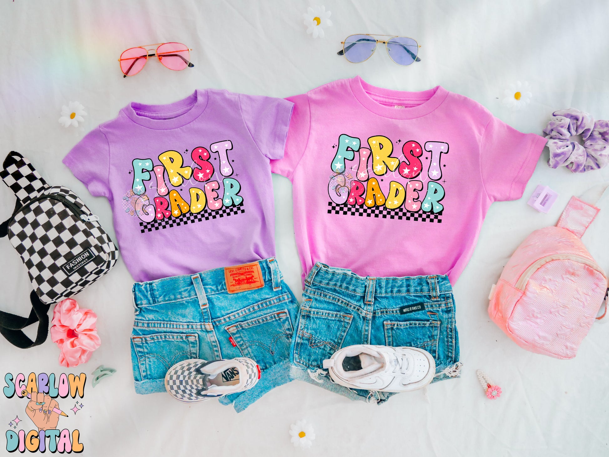 First Grader PNG Digital Design Download, back to school png, school designs, retro back to school png, colorful kids tshirt designs
