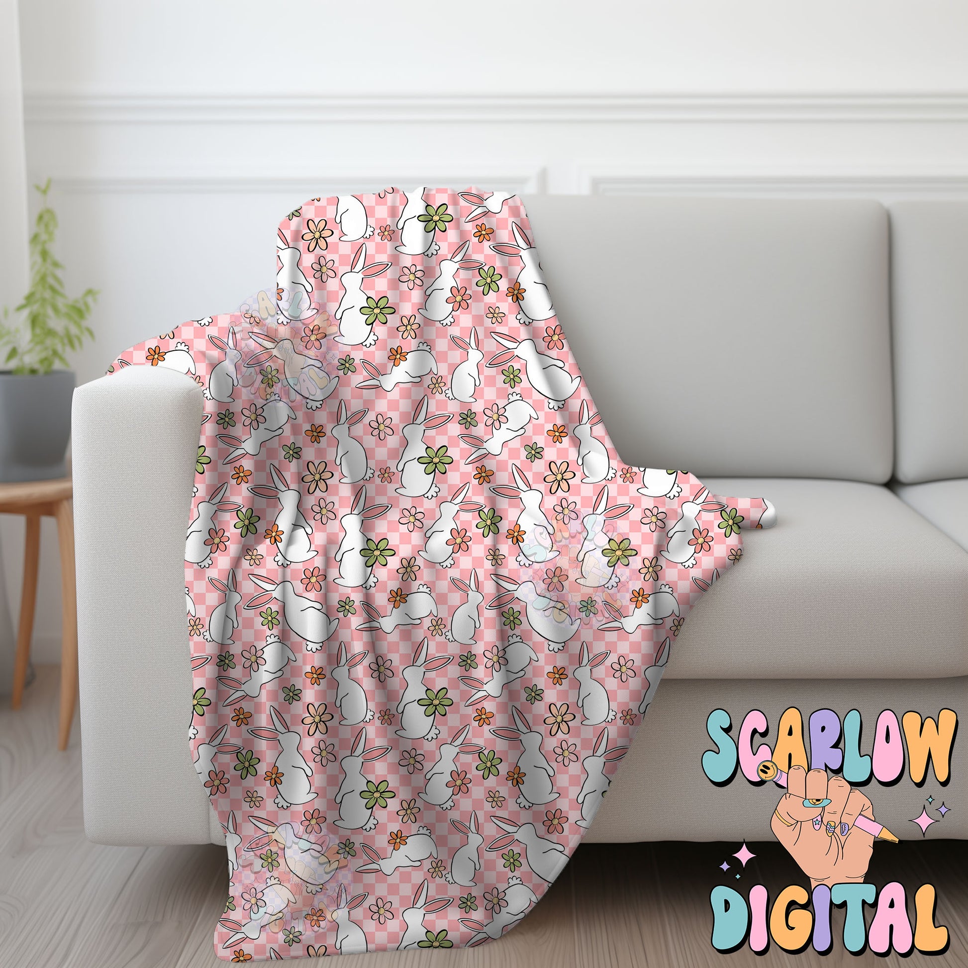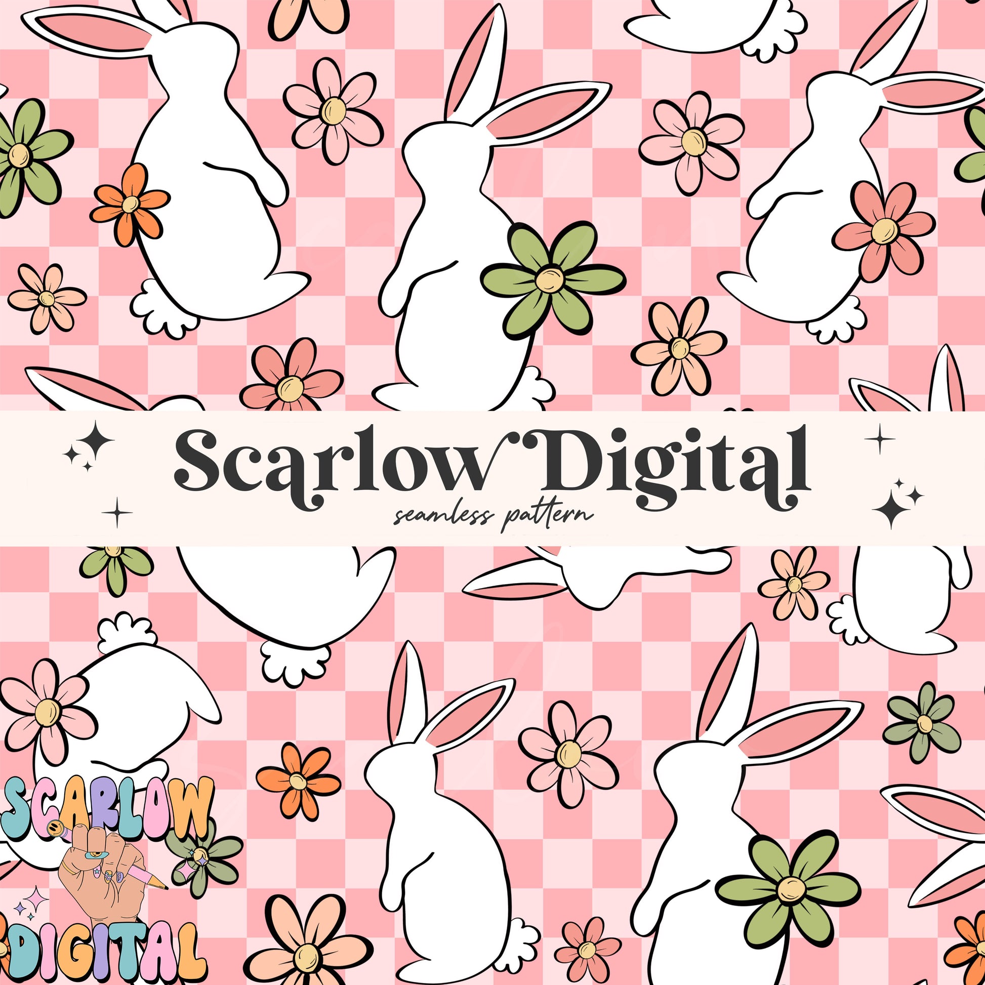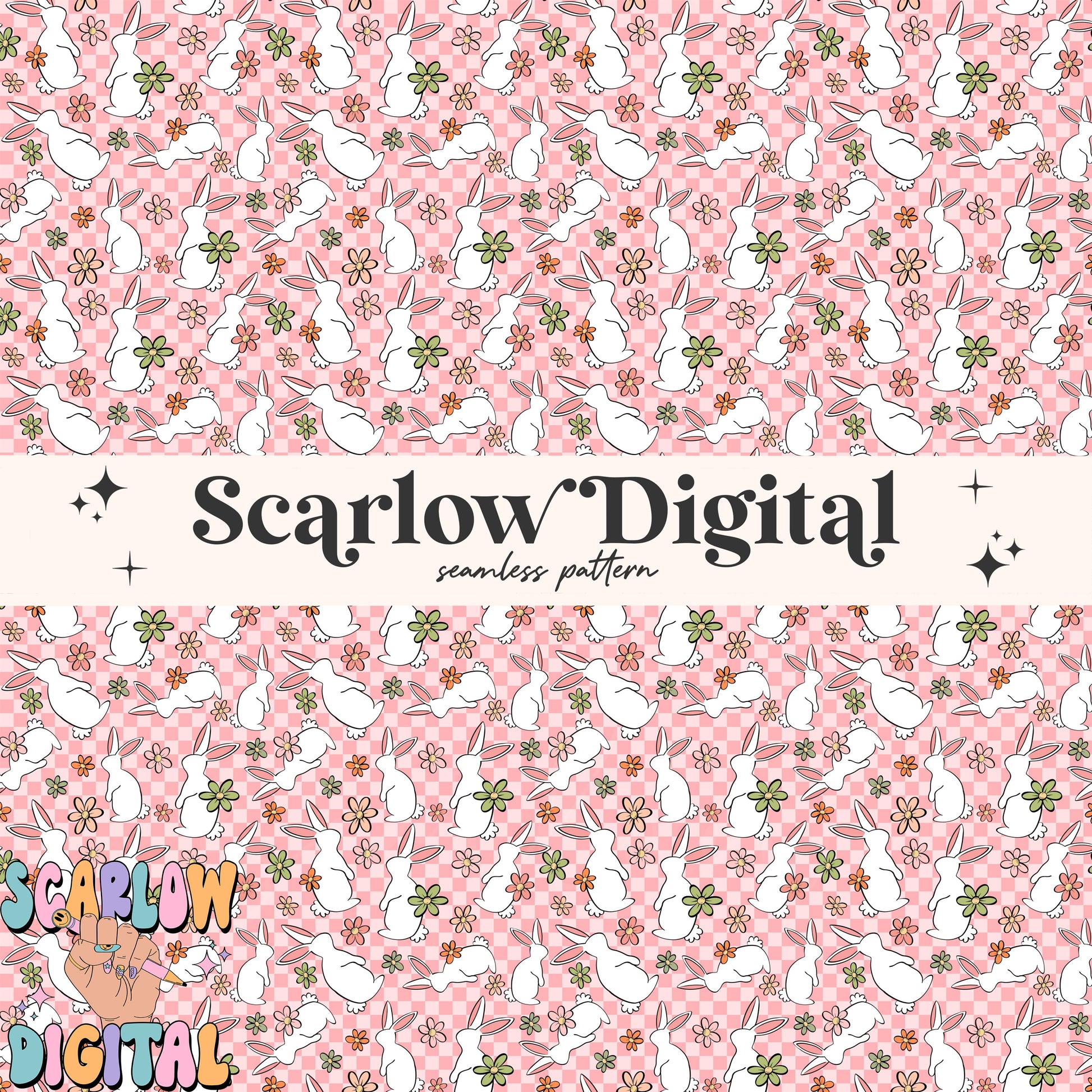Floral Easter Bunny Seamless Pattern-Easter Sublimation Digital Design Download-checkered easter seamless pattern, girly easter seamless