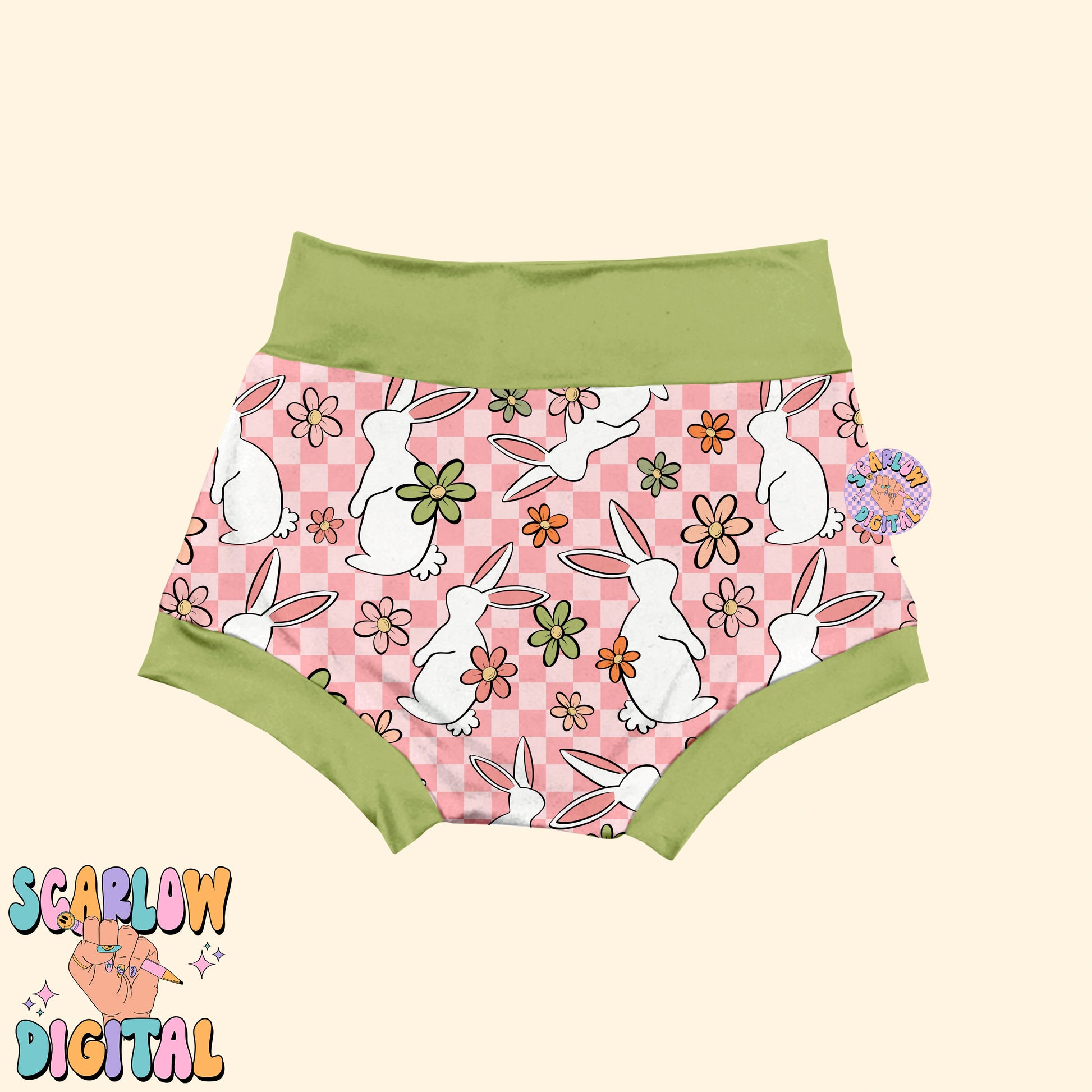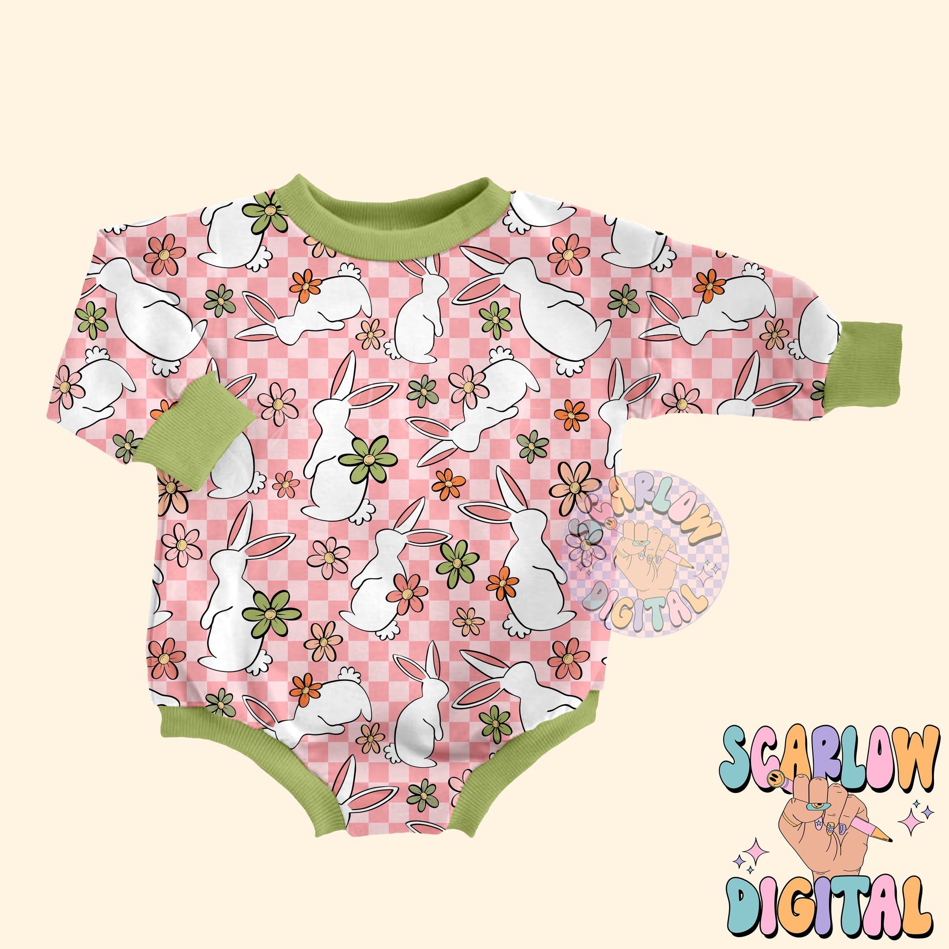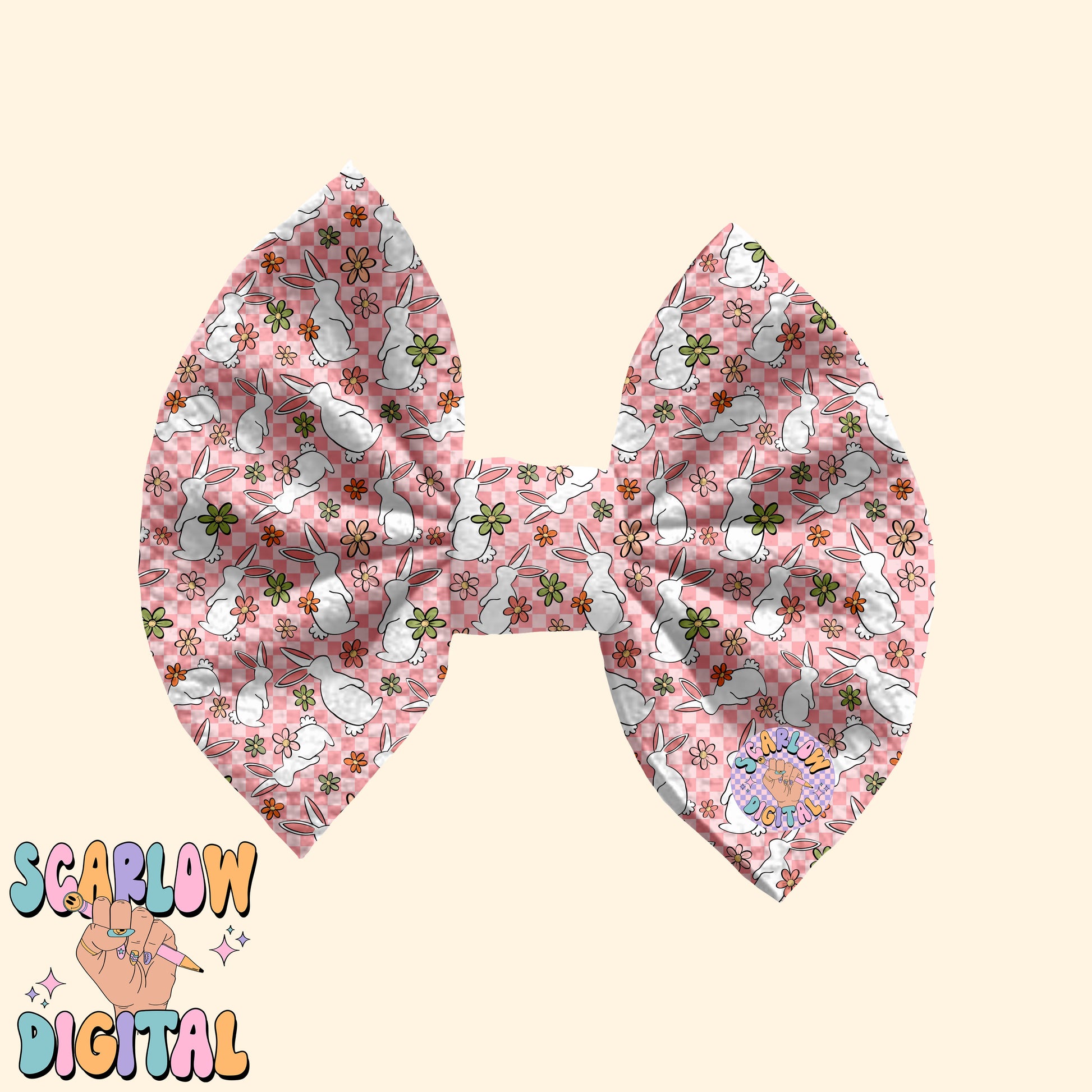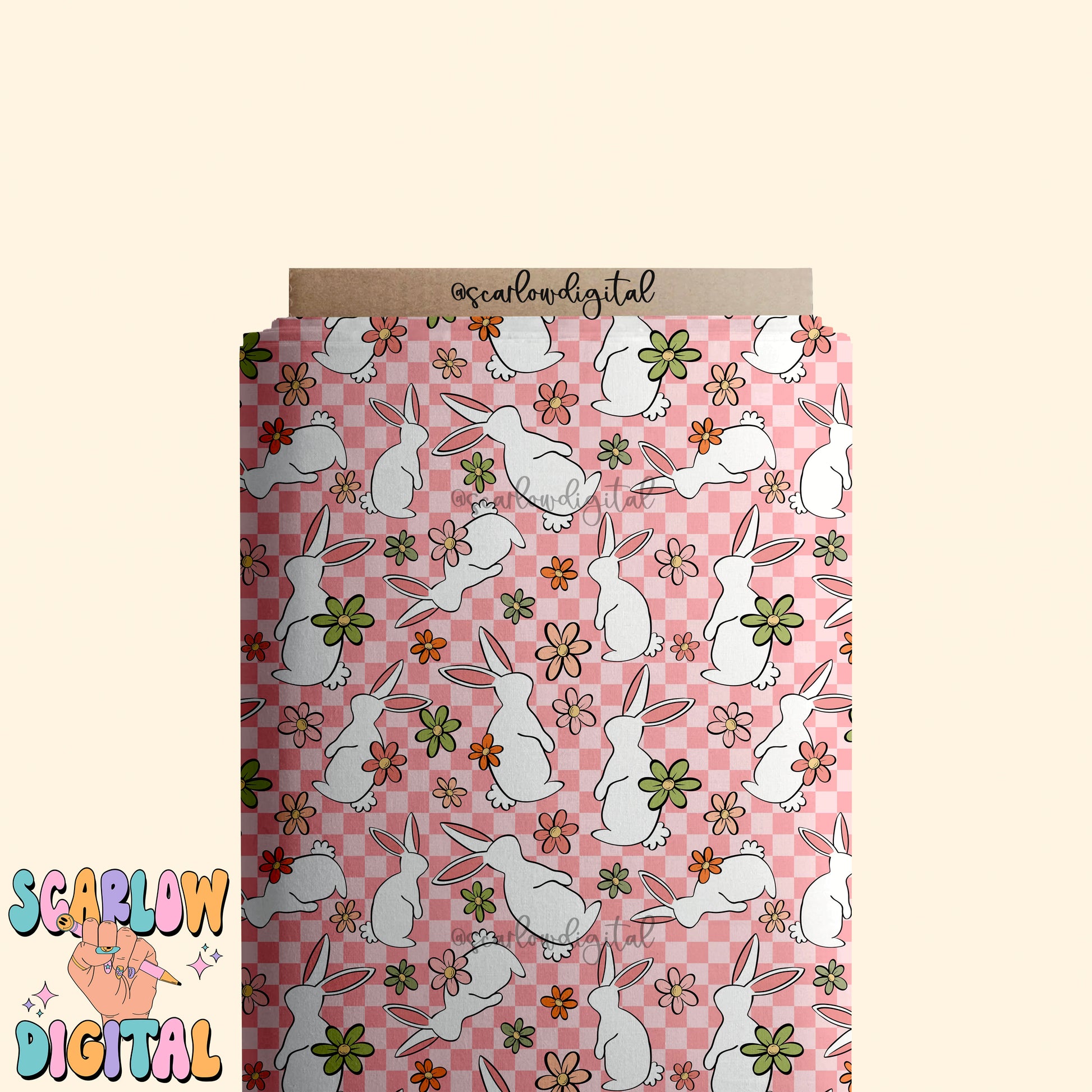 Floral Easter Bunny Seamless Pattern-Easter Sublimation Digital Design Download-checkered easter seamless pattern, girly easter seamless