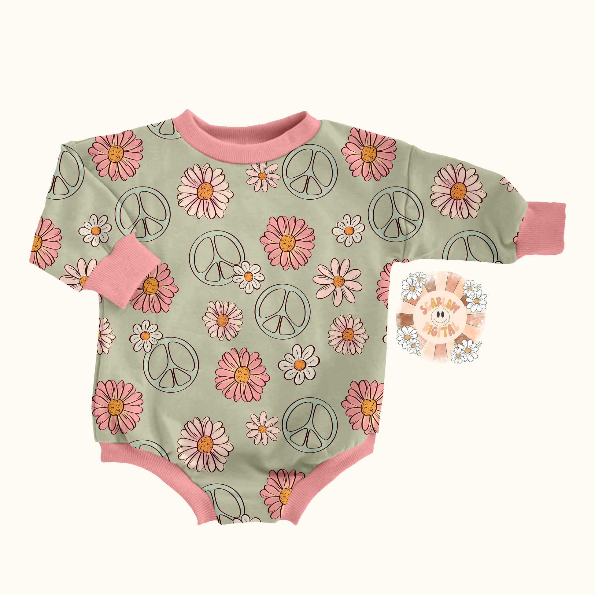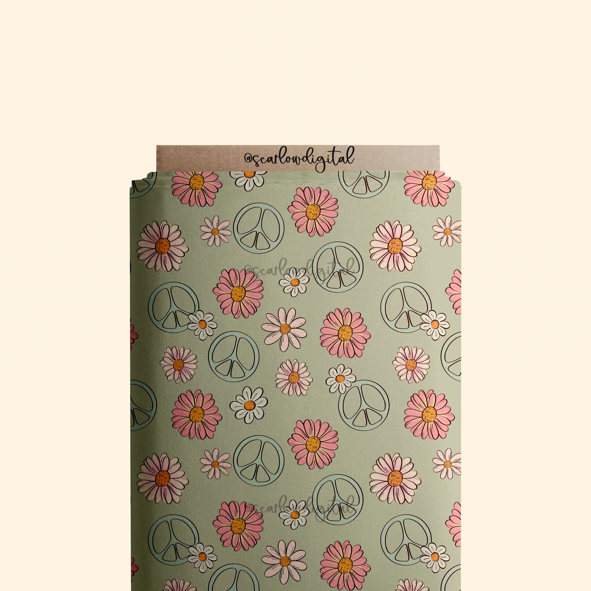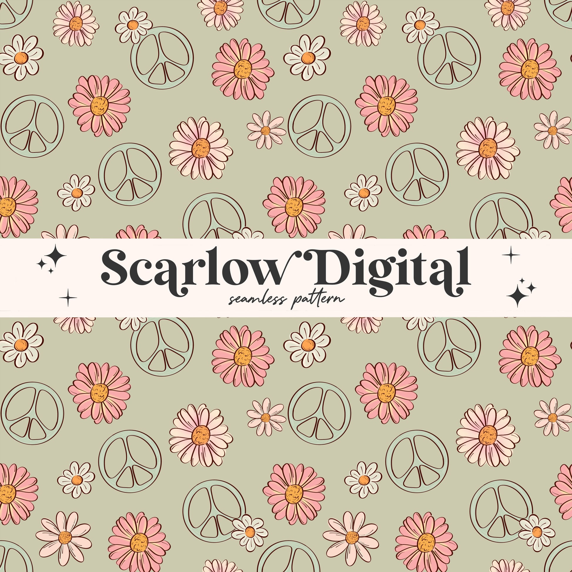 Floral Peace Sign Seamless Pattern-Hippie Sublimation Digital Design Download-groovy seamless file, flower surface pattern, boho seamless