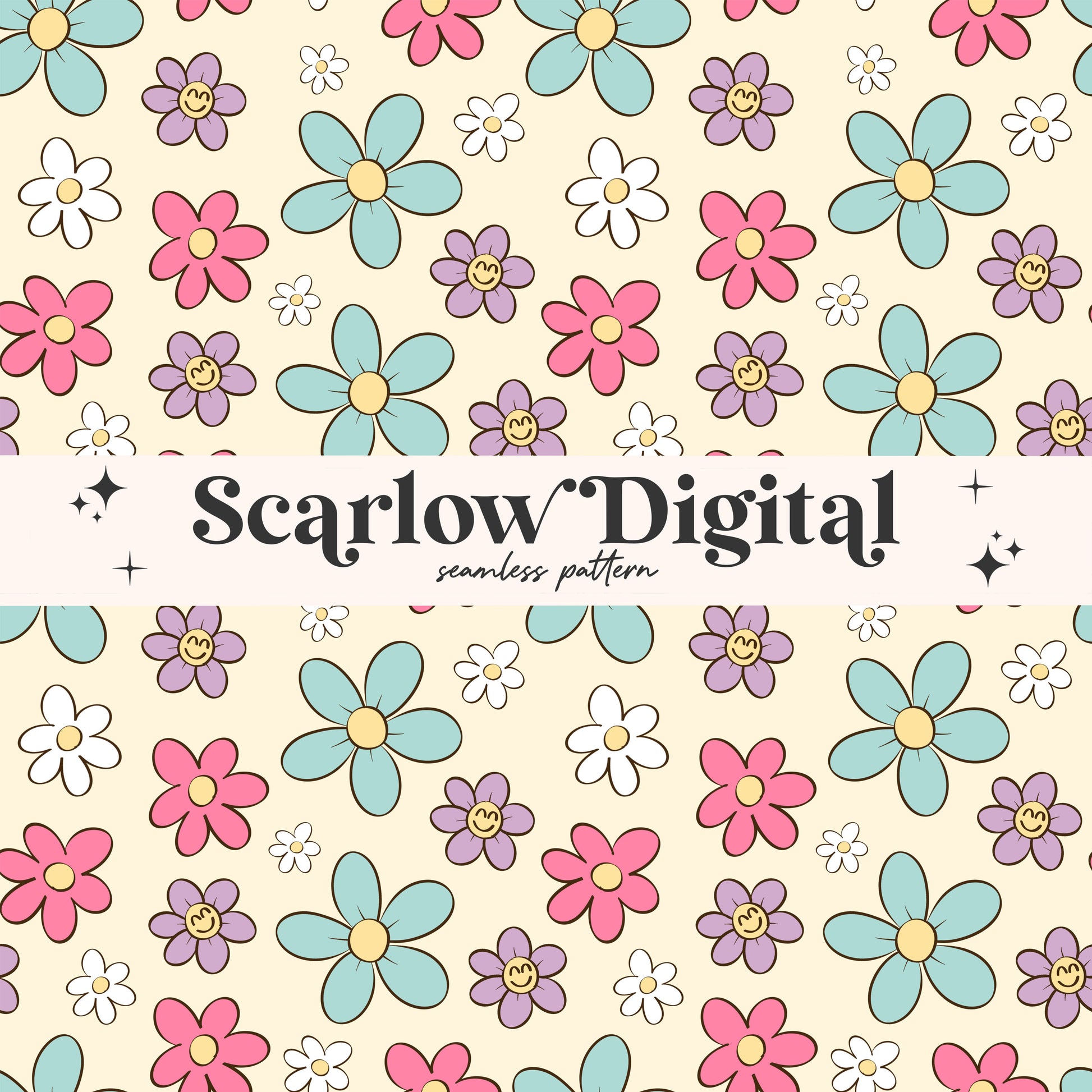 Floral Seamless Pattern-Retro Sublimation Digital Design Download-flowers seamless, groovy seamless, hippie seamless, colorful designs