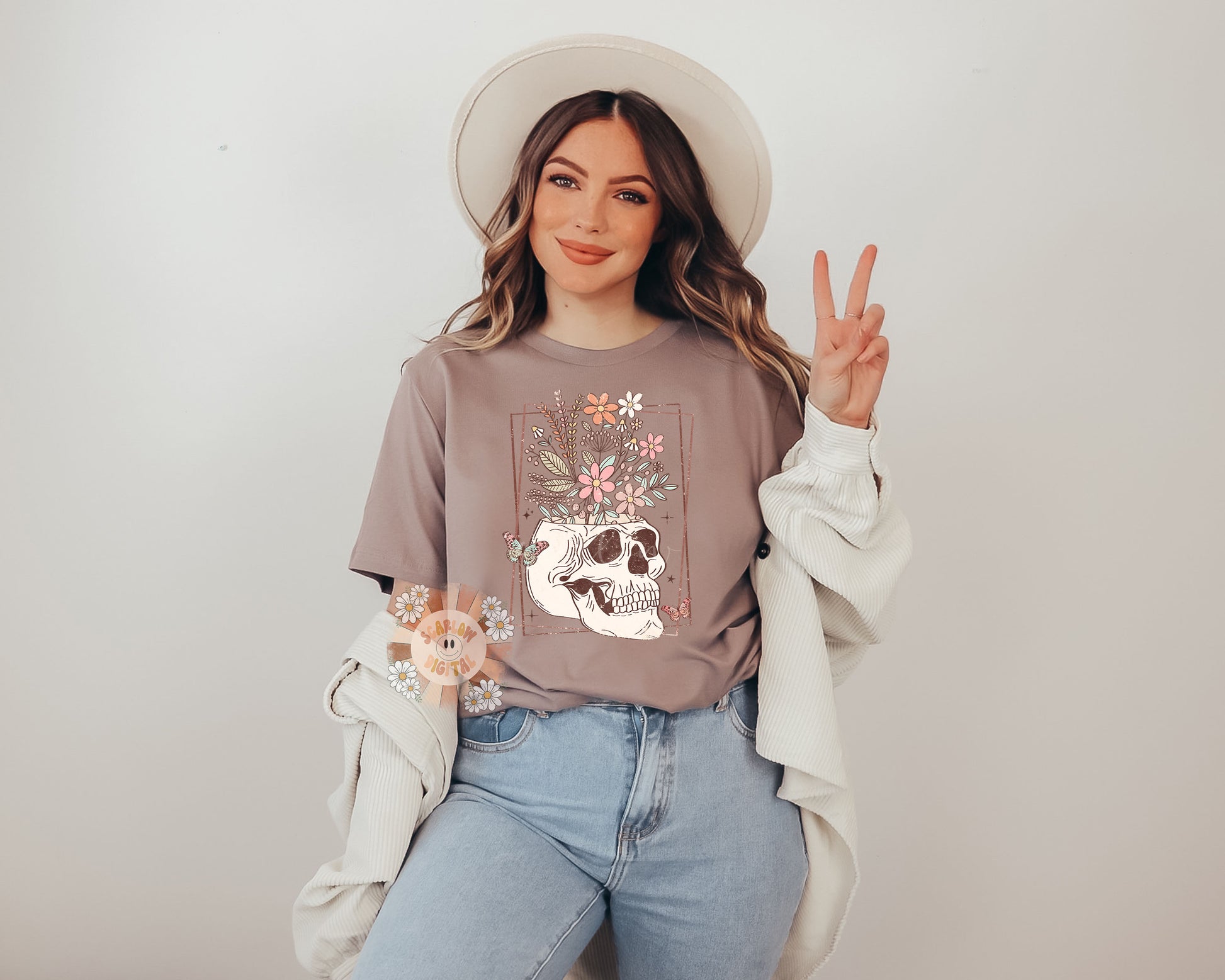 Floral Skull PNG Digital Design